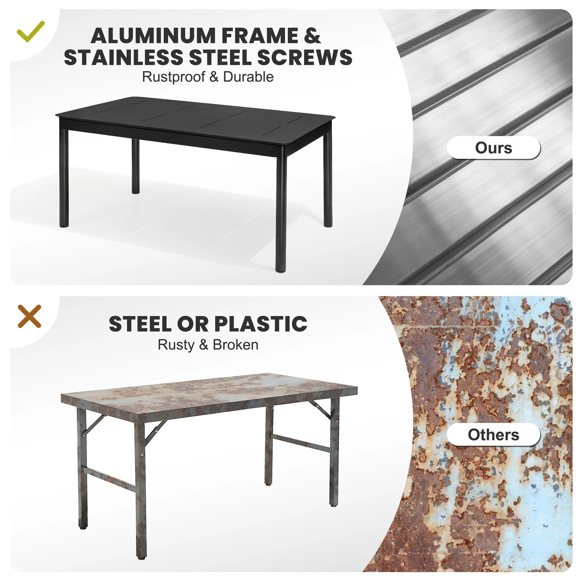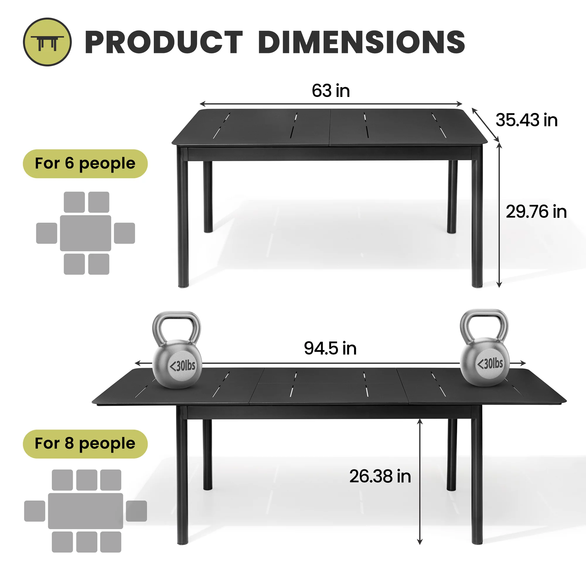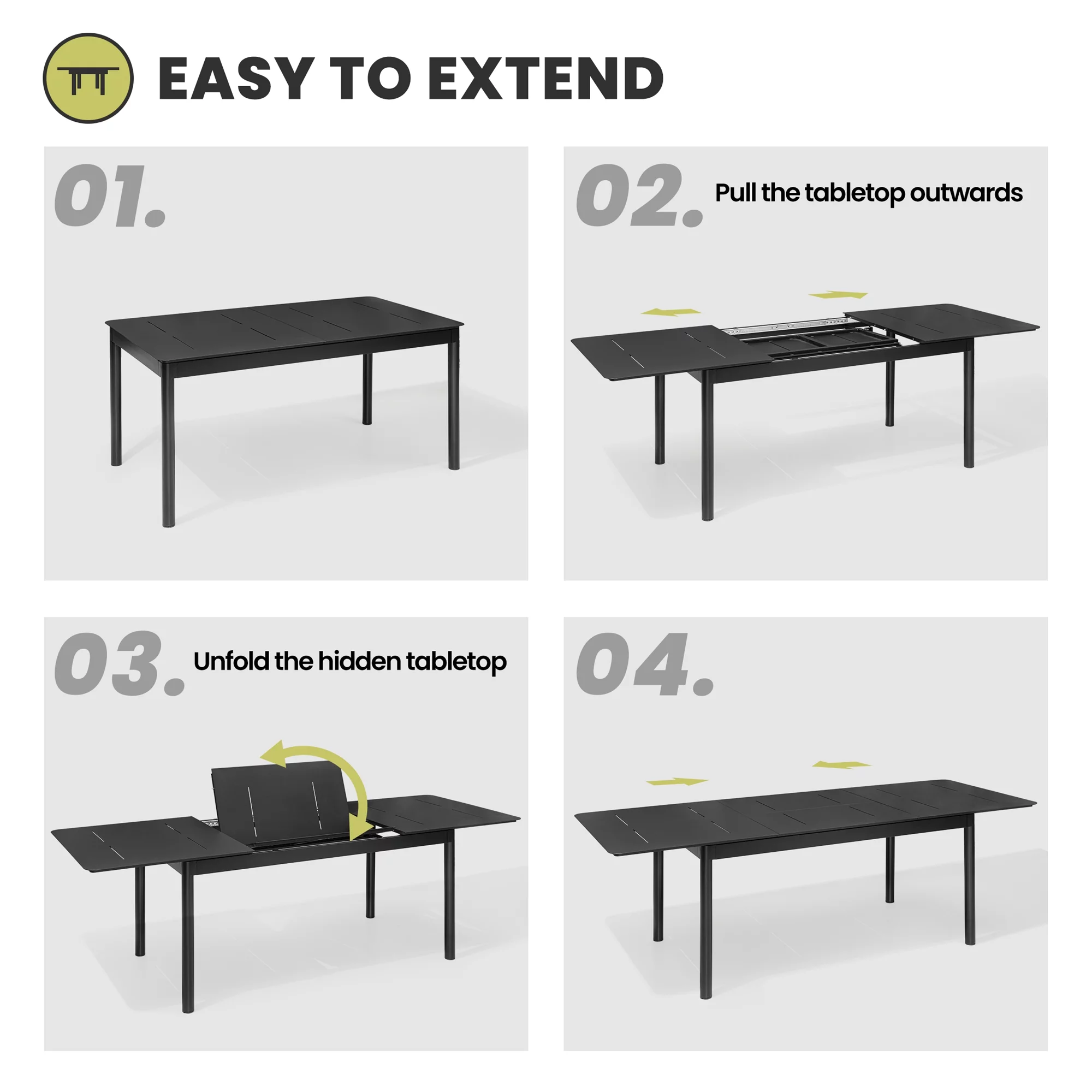 Pellebant 6-8 Person Rectangle Expandable Aluminum Outdoor Patio Dining Table Black