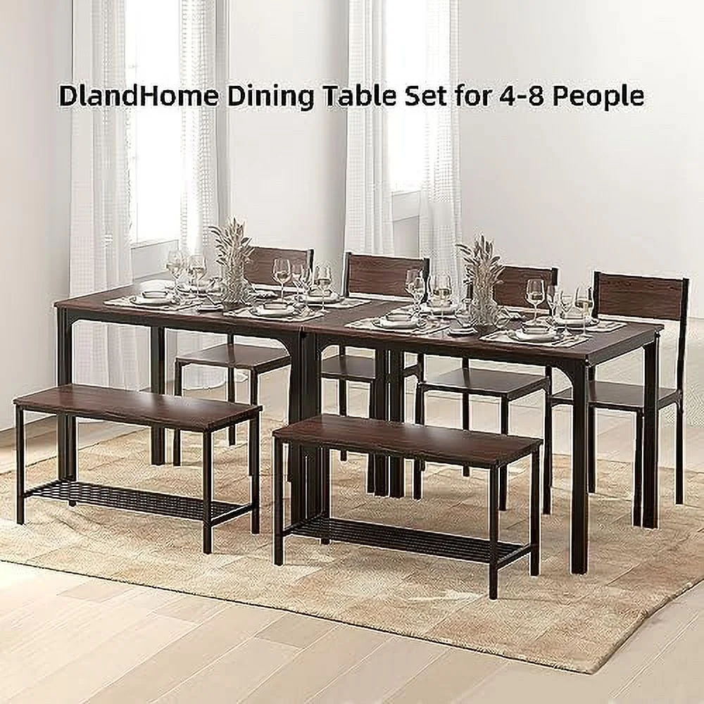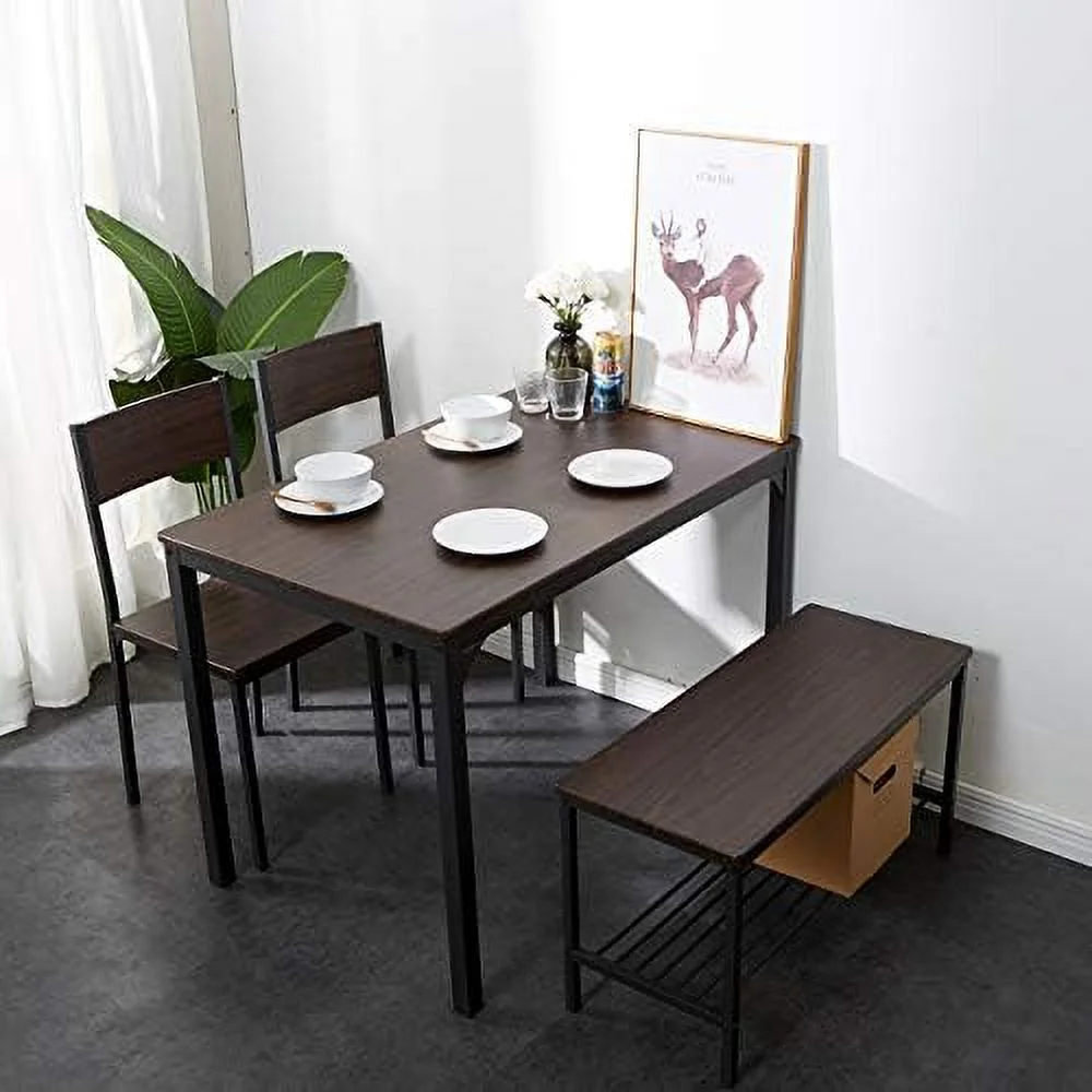 KHBIULIFE 4 Person Dining Table Set Dining Table with 2 Chairs and 1 Bench Rectangular Space-Saving Dinner Table with Two Benches for Kitchen Rustic Oak