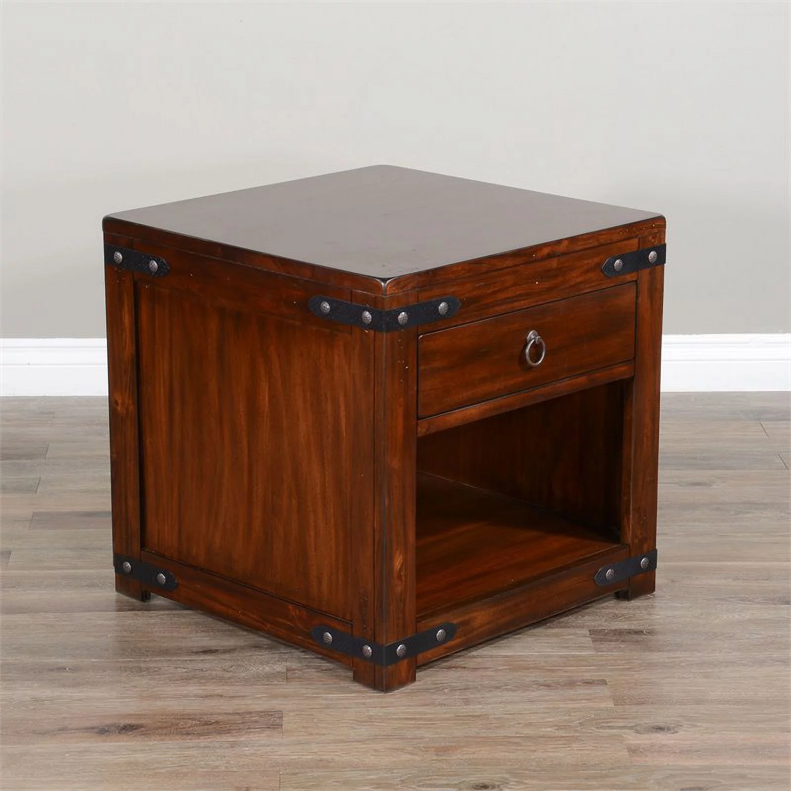 Home Square Santa Fe 24" Traditional Wood End Table in Dark Chocolate - Set of 2