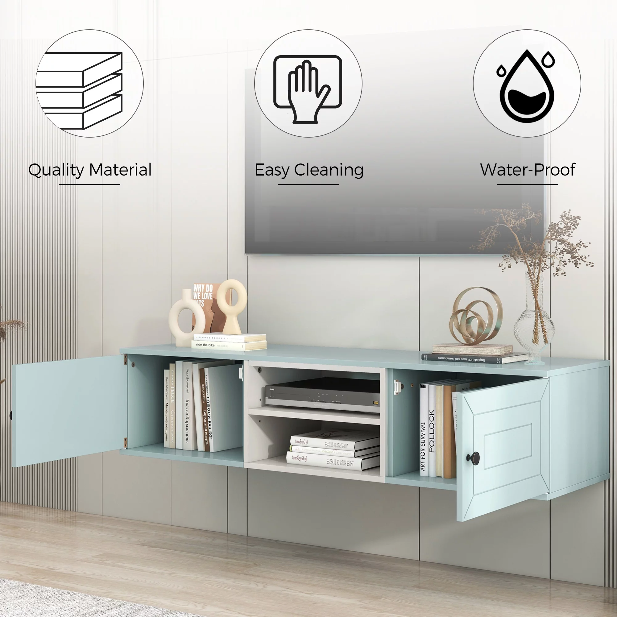Sesslife Floating TV Stand Wall Mounted, Entertainment Center with Storage Cabinets, TV Stand for 65 Inch TV, Gaming Entertainment Center Console Table, Beige