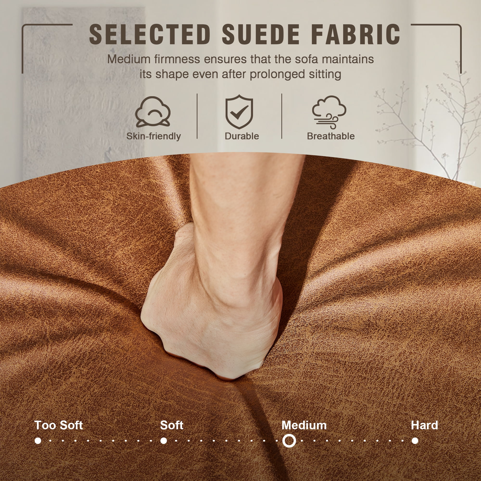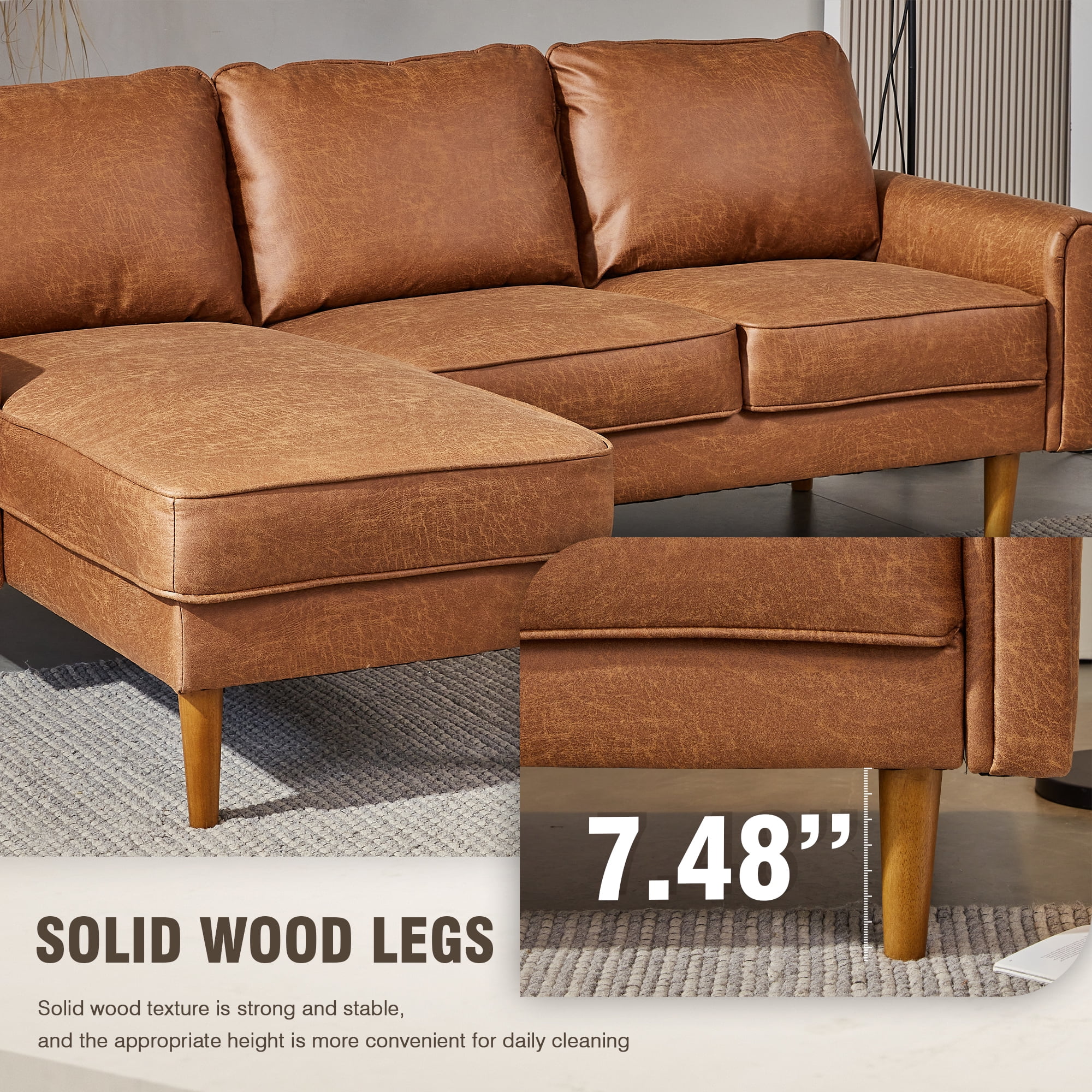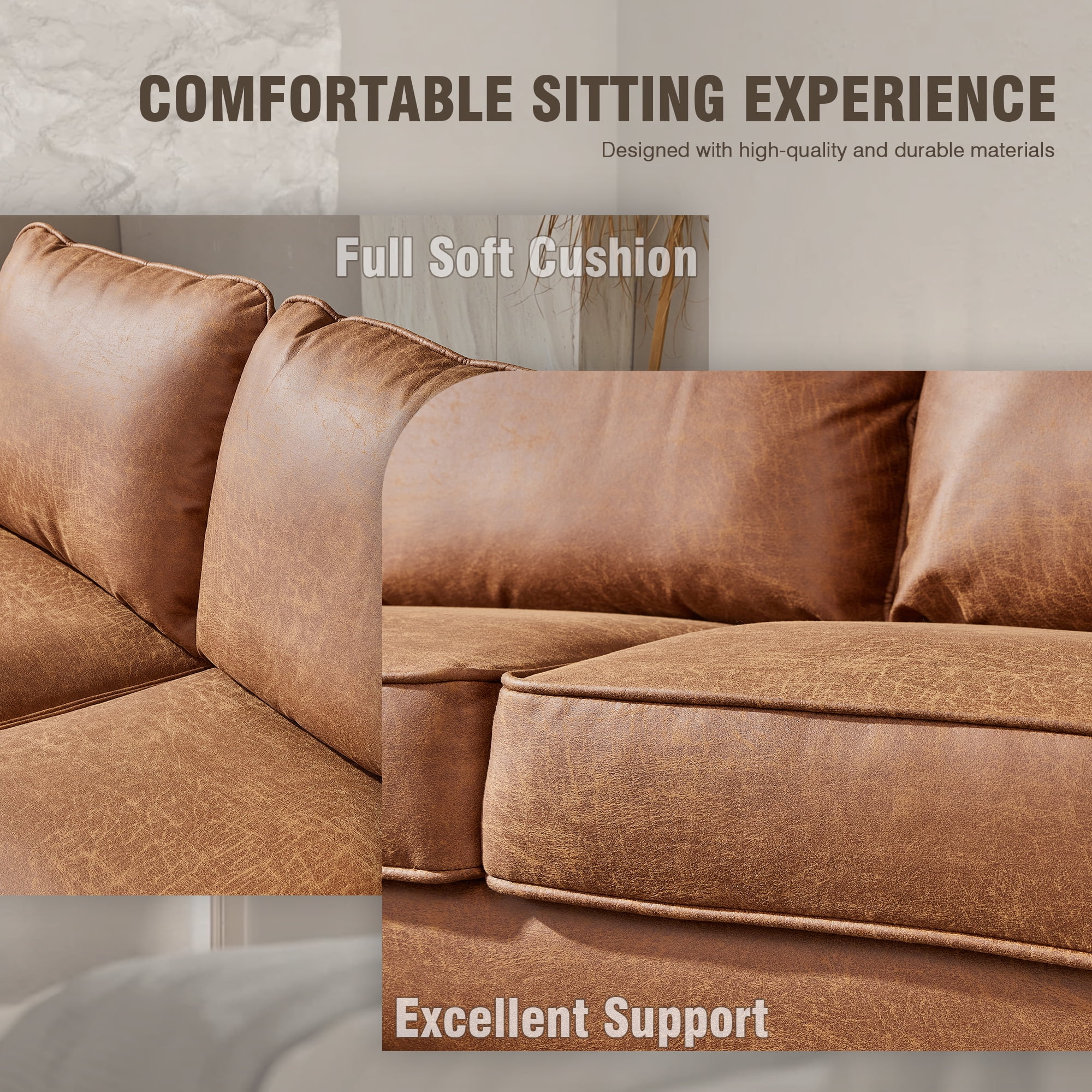 HOOOWOOO 81.50" Wide L-Shaped Indoor Sofas and Couches,3 Seats Sectional Convertible Comfortable Sofa for Living Room(Suede Fabric,Left Chaise,Light Brown)
