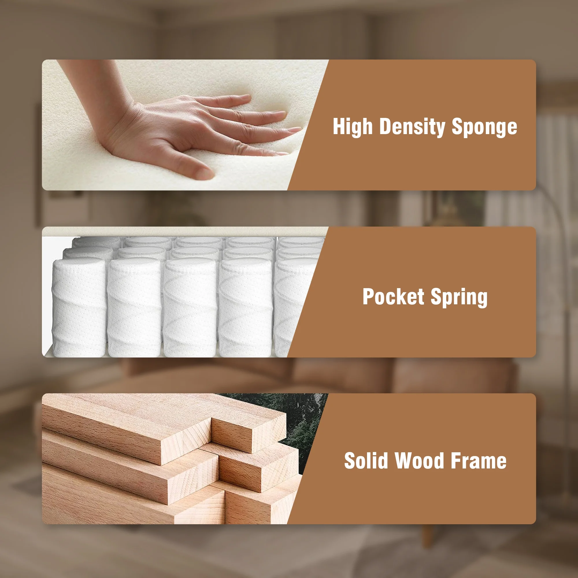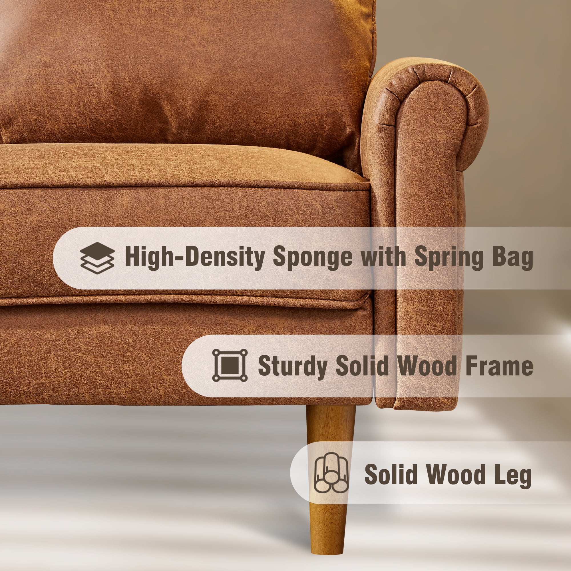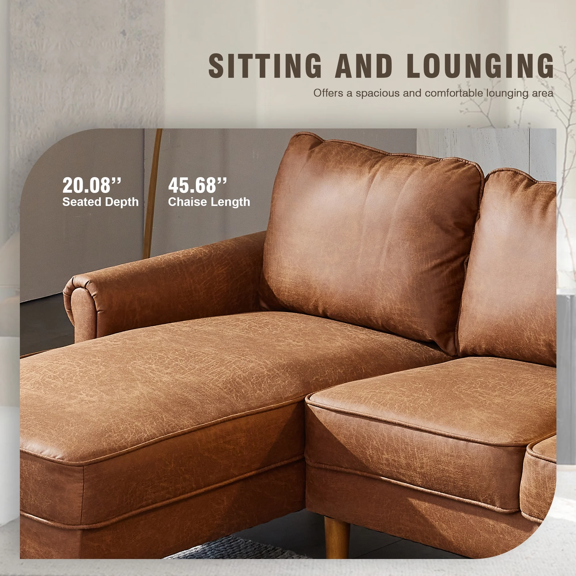 HOOOWOOO 81.50" Wide L-Shaped Indoor Sofas and Couches,3 Seats Sectional Convertible Comfortable Sofa for Living Room(Suede Fabric,Left Chaise,Light Brown)