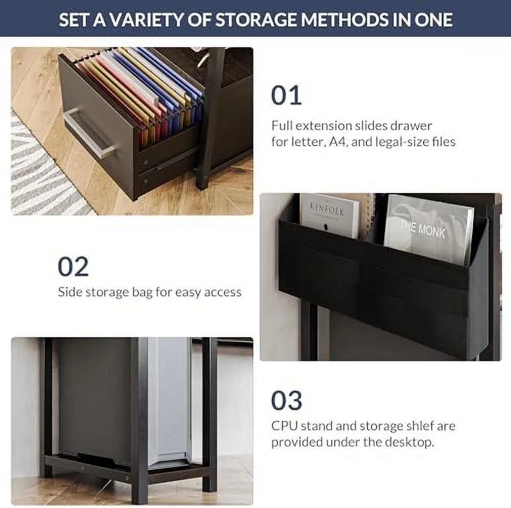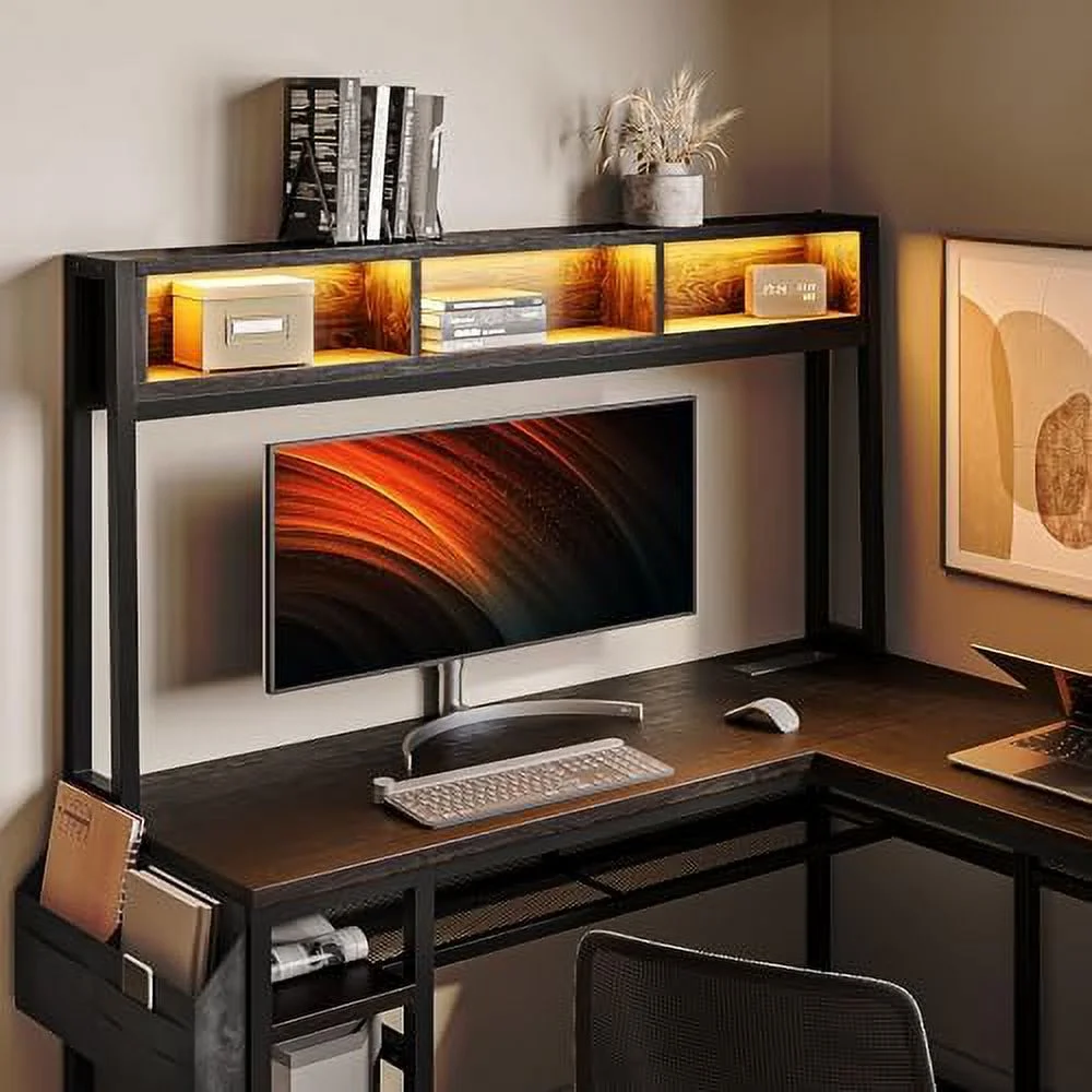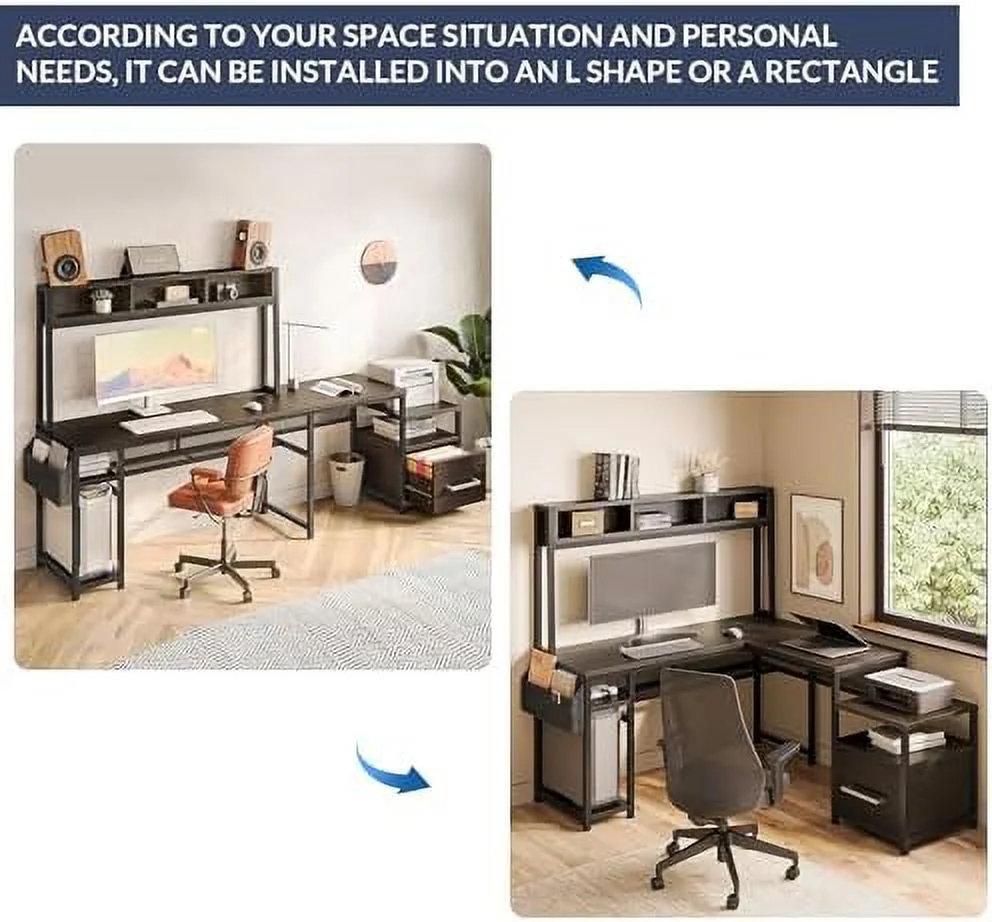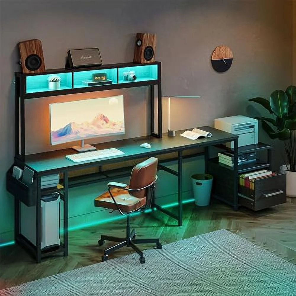 RUNFAYBIU Computer Desk with Monitor Stand and File Cabinet 104" Long Gaming Desk with RGB LED Lights and USB AC Outlet Reversible L-Shaped Desk for Home Office (Eclipse - Brown)