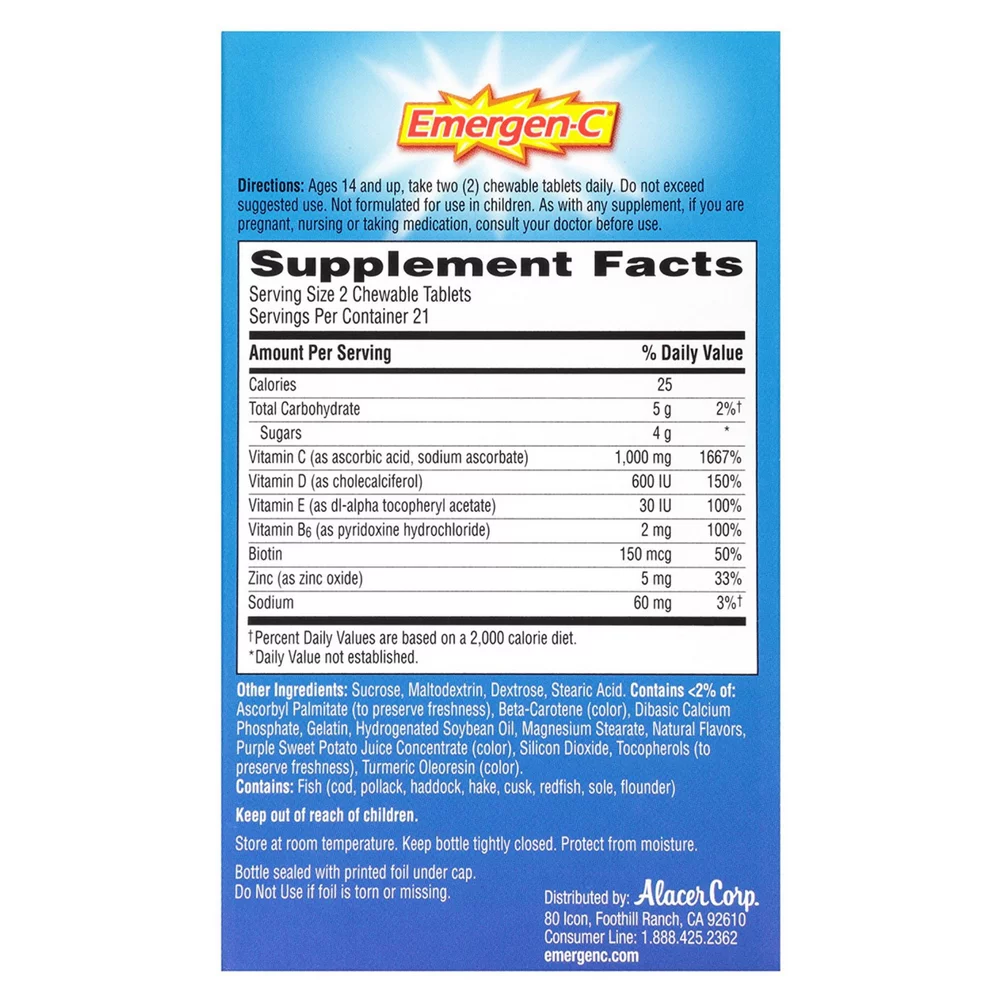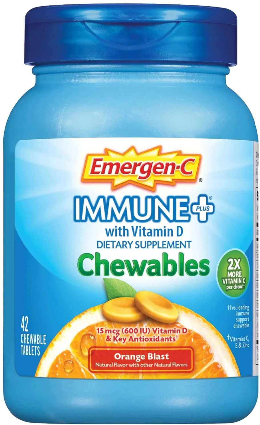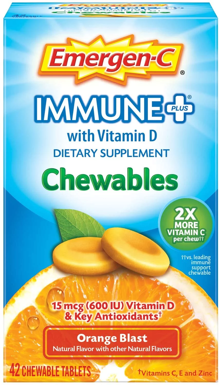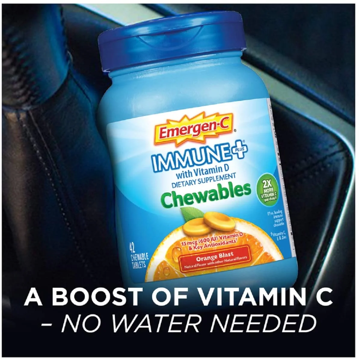 Emergen-C Immune+ Chewables System Support Dietary Supplement Tablet With 600 IU Vitamin D, Orange Blast Flavor 42 ea (Pack of 6)