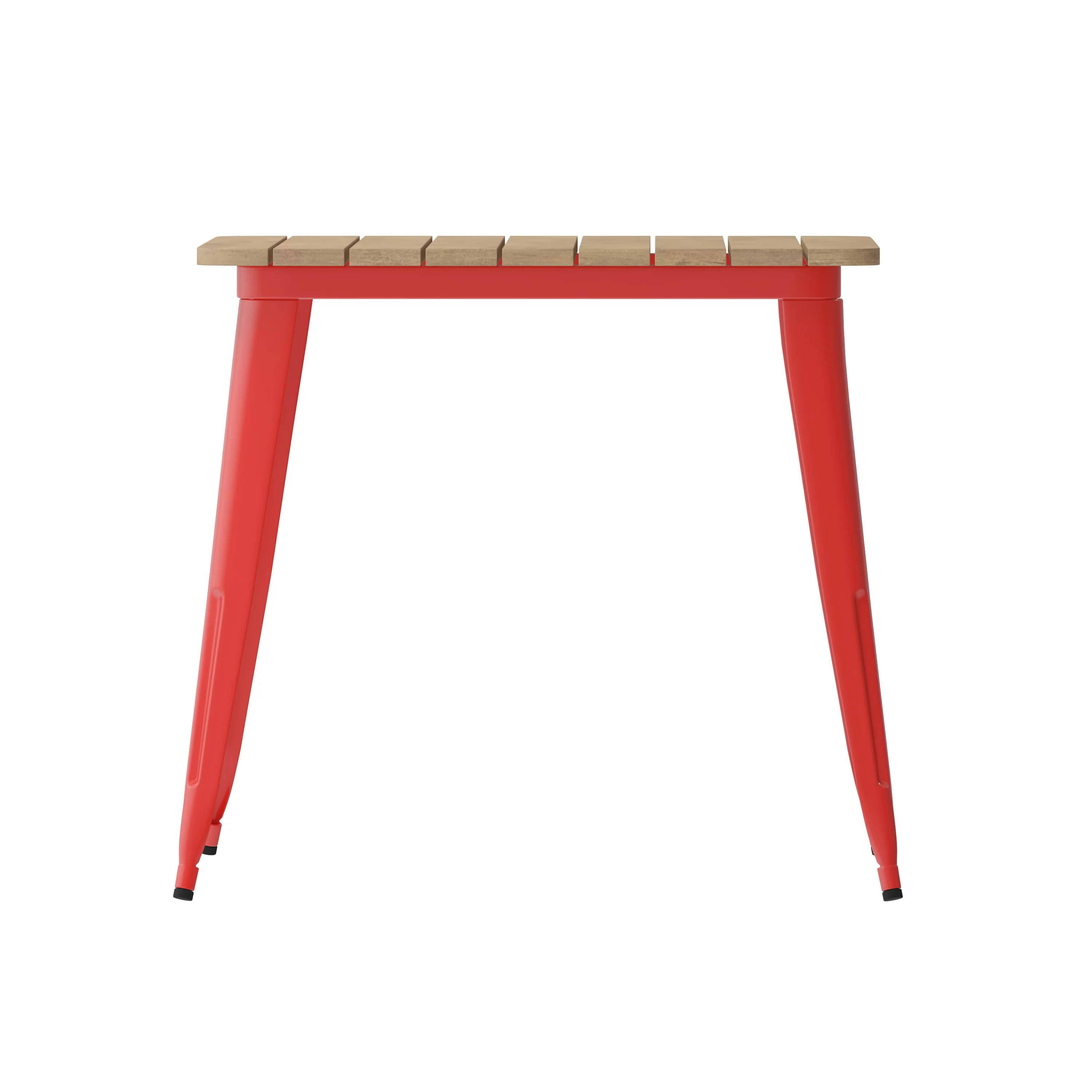 Flash Furniture Declan Commercial Grade Indoor/Outdoor Dining Table, 31.5" Square All Weather Brown Poly Resin Top with Red Steel Base