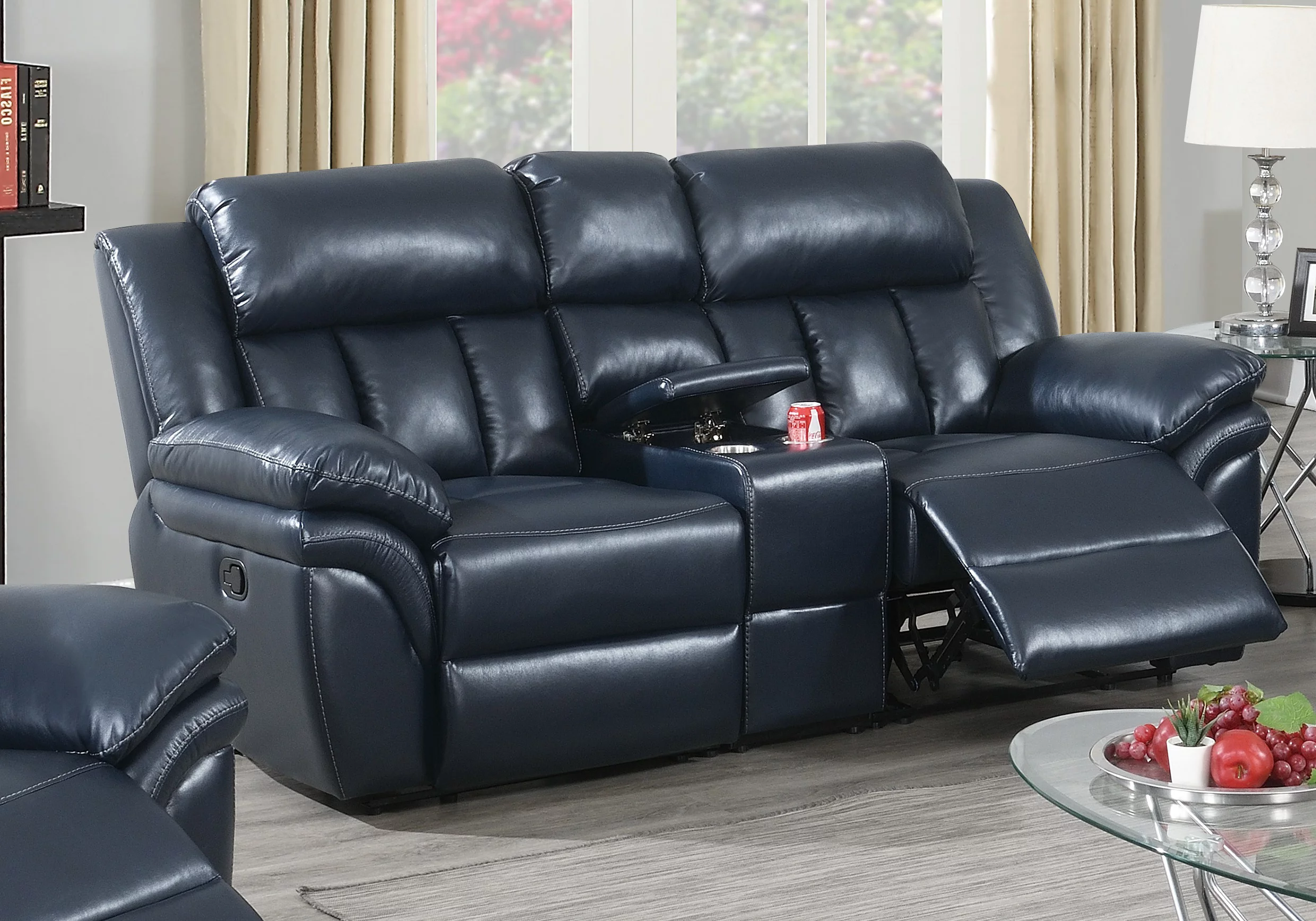 Contemporary Navy Blue Living Room Reclining Sofa set 2pcs Sofa Loveseat w Console Plush Padded Headrest Armrest