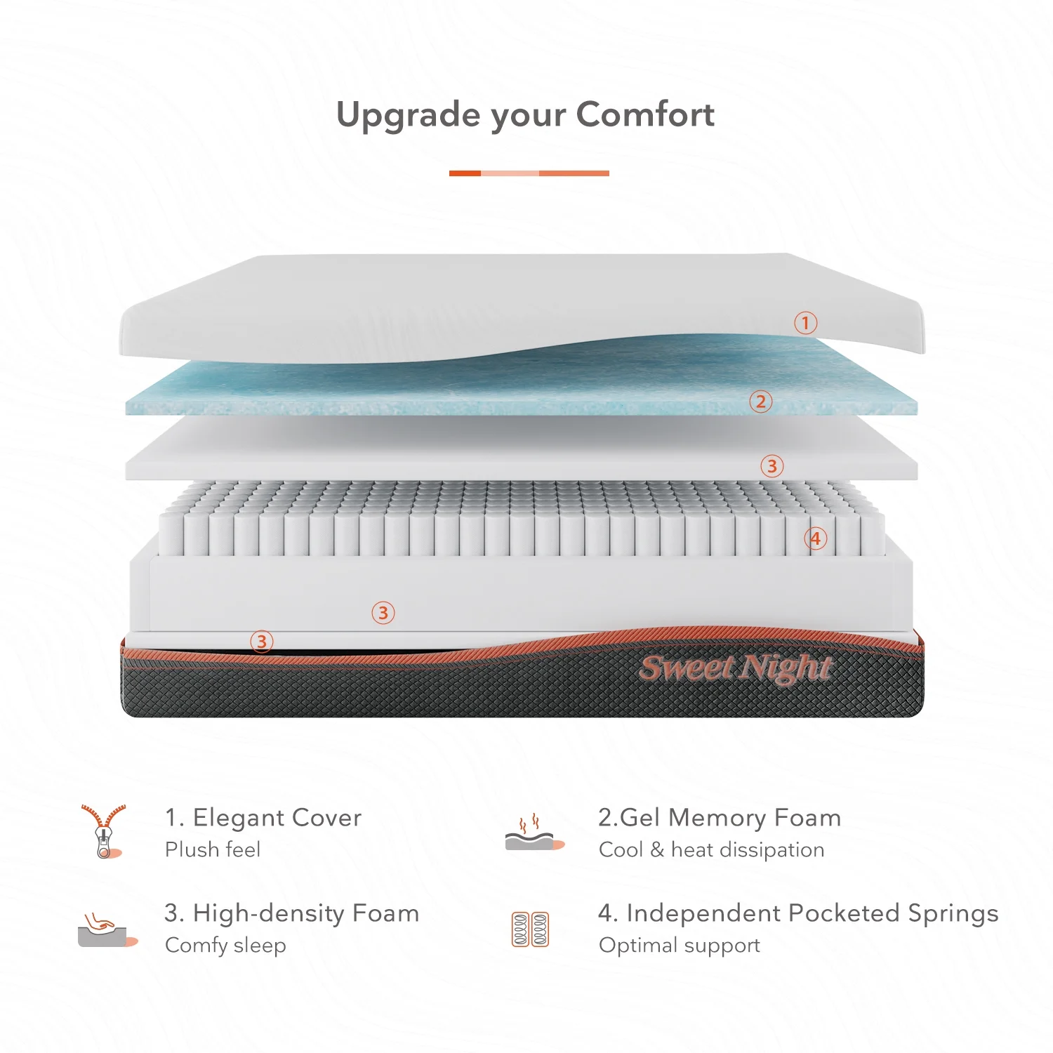Sweetnight 10" Hybrid of Gel Memory Foam Mattress, Pocket Spring Mattresses in a Box, Queen