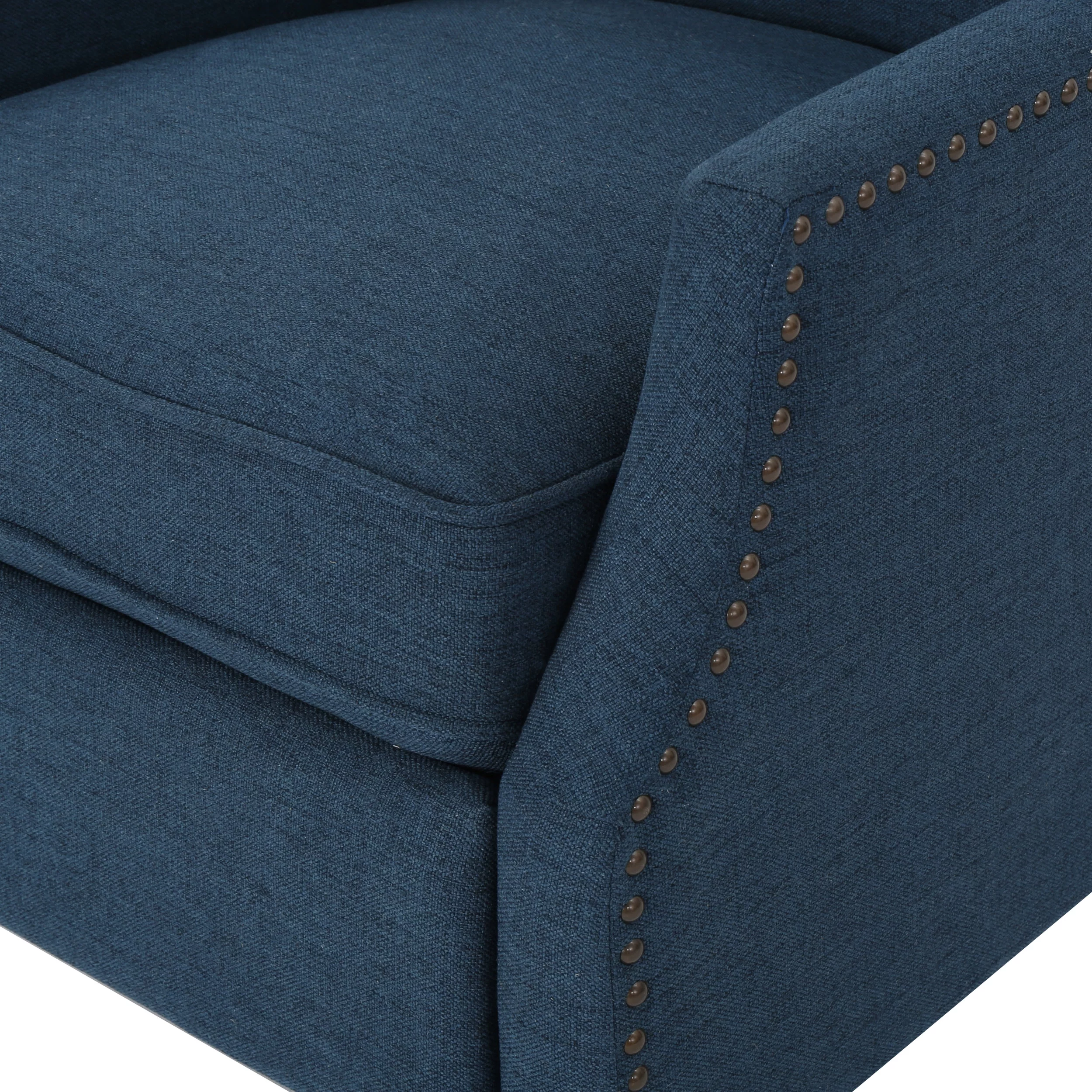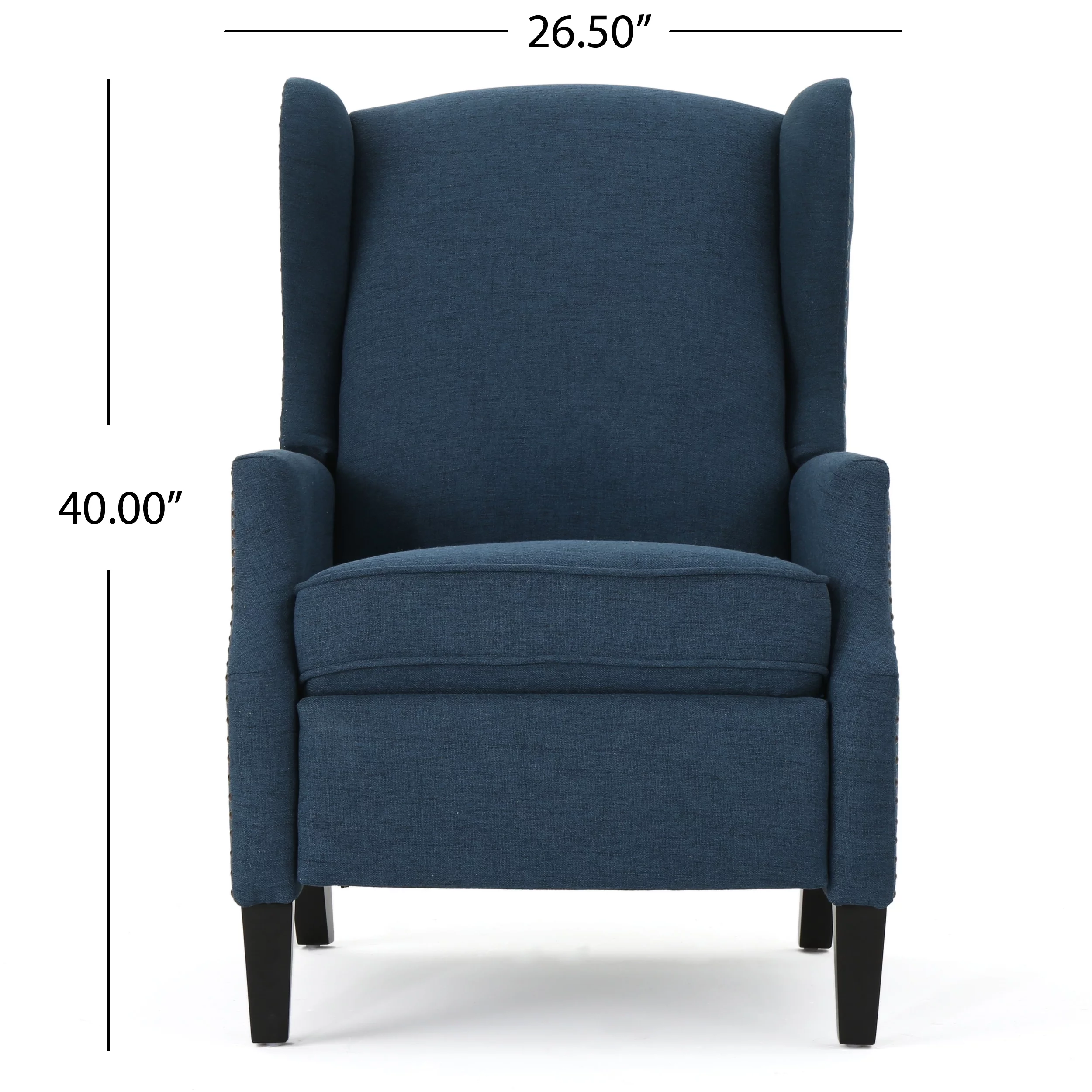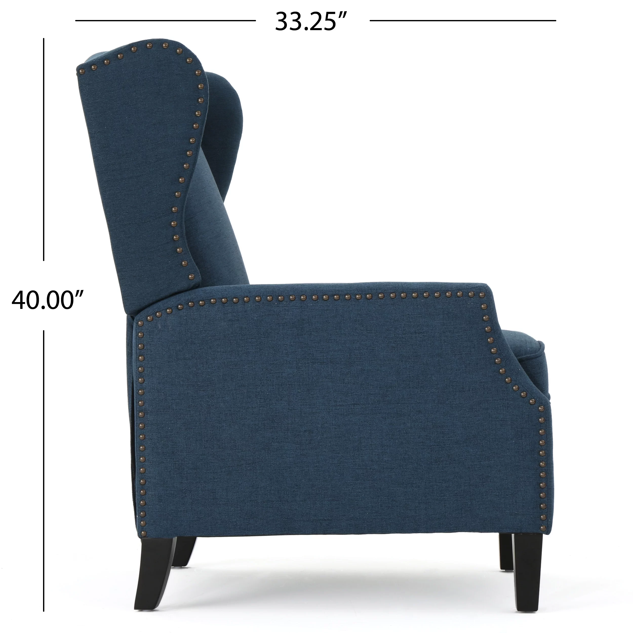 GDF Studio Weyland Contemporary Fabric Pushback Recliner, Set of 2, Navy Blue and Dark Brown
