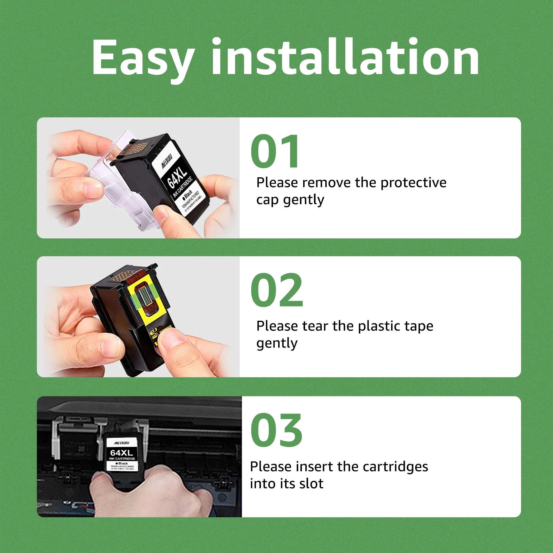 64XL Ink Cartridges Black Compatible for HP 64 XL Work with HP Envy Photo 7855 7858 7155 6255 6252 7100 7800, HP Envy Inspire 7900e 7950e Tango Series Printers