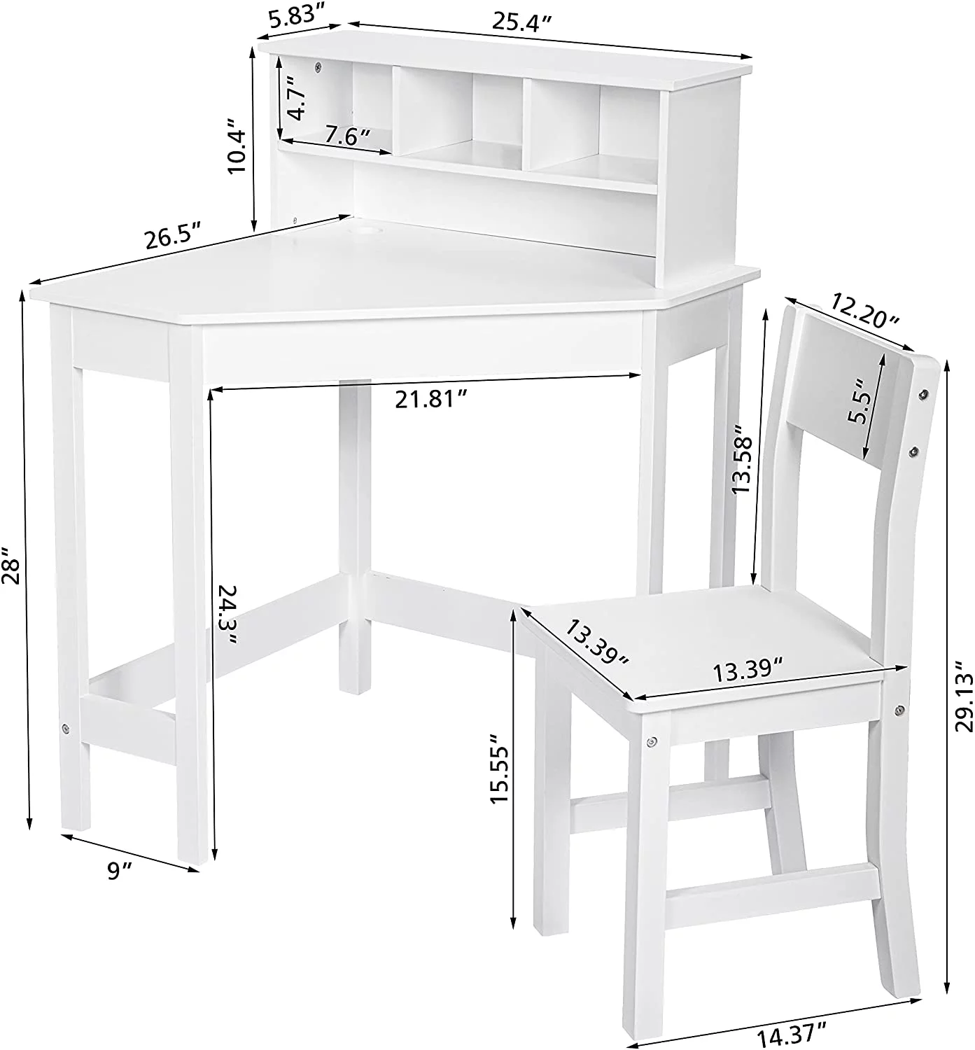 UTEX Kids Desk,Wooden Study Desk with Chair for Children,Writing Desk with Storage and Hutch for Home School Use,White