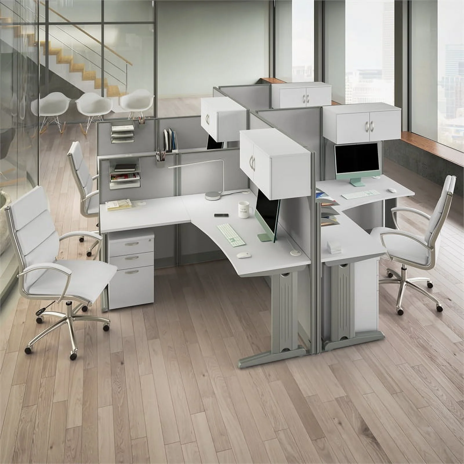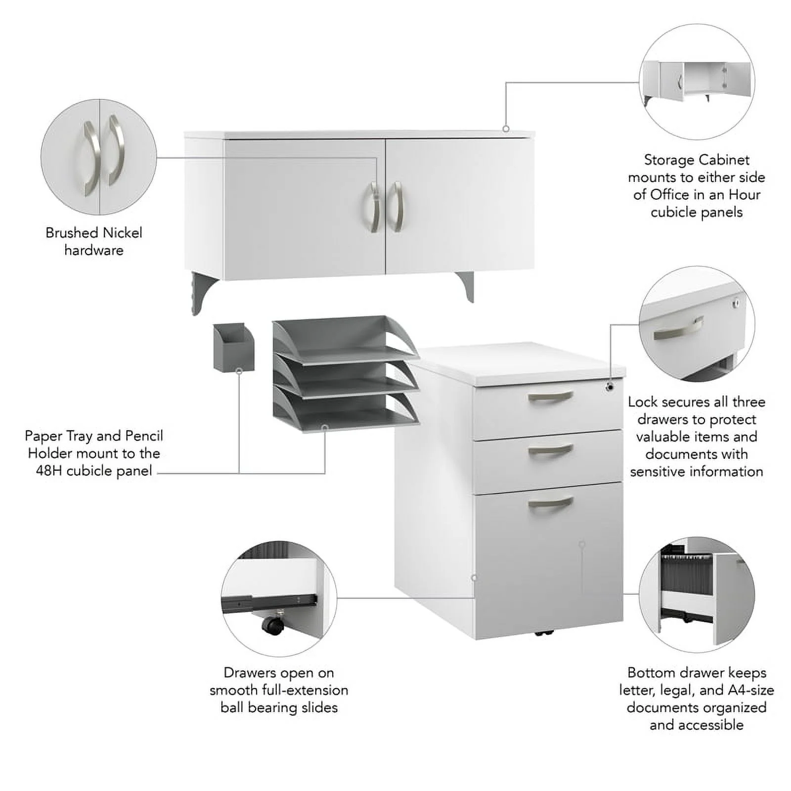 Office in an Hour Cubicle Storage Set in Pure White - Engineered Wood
