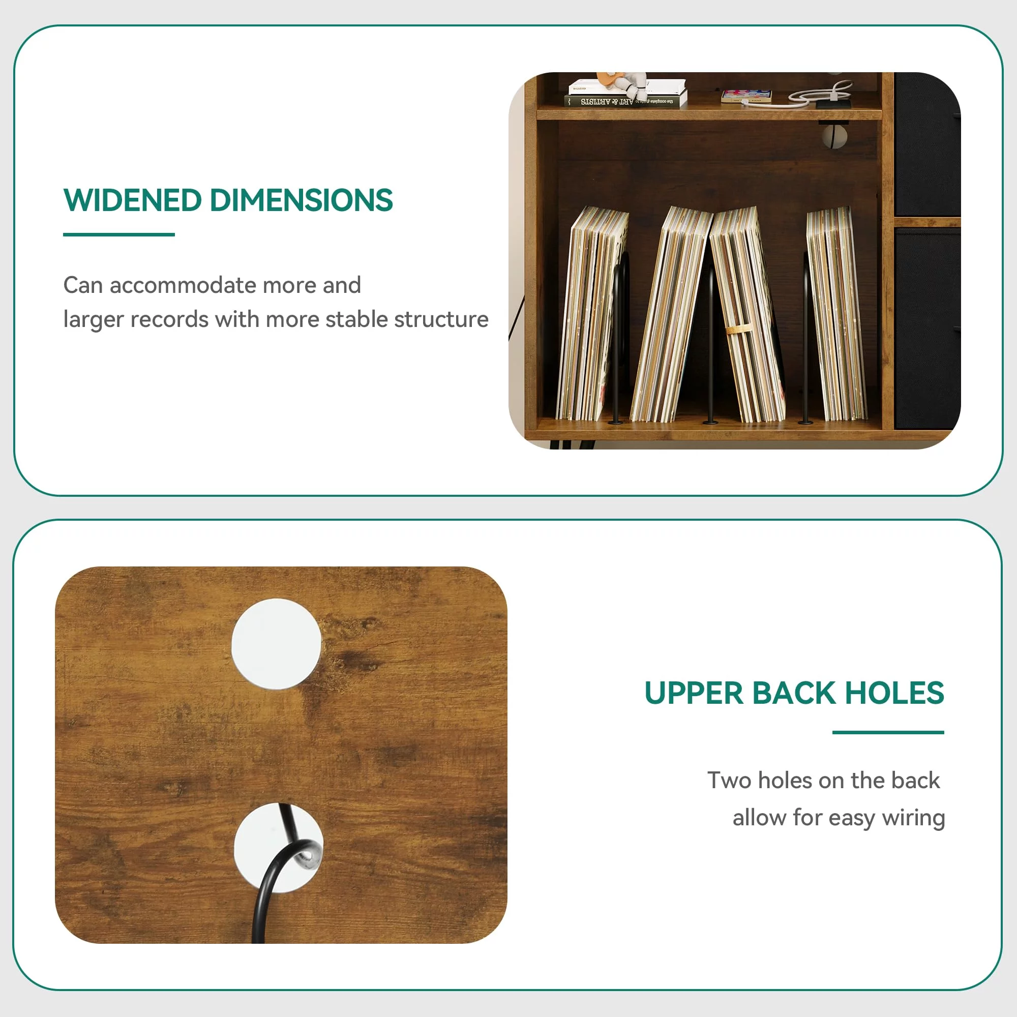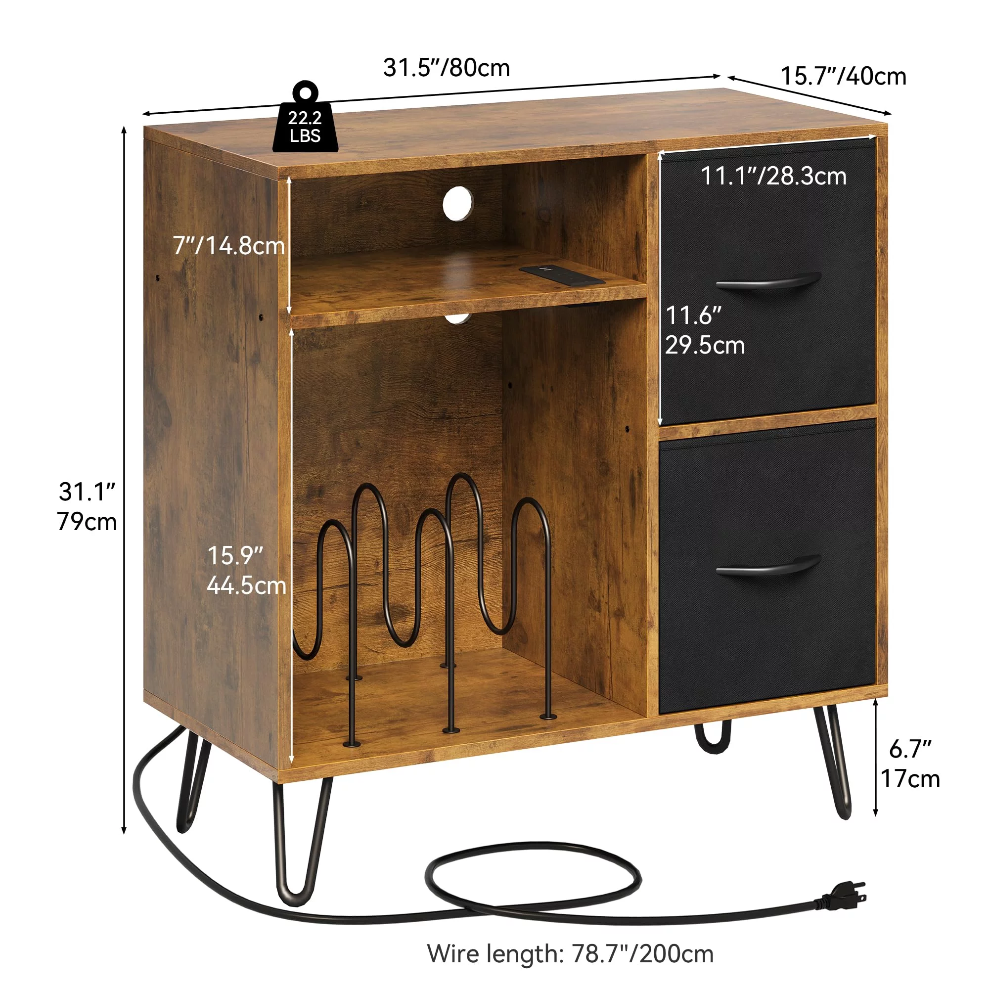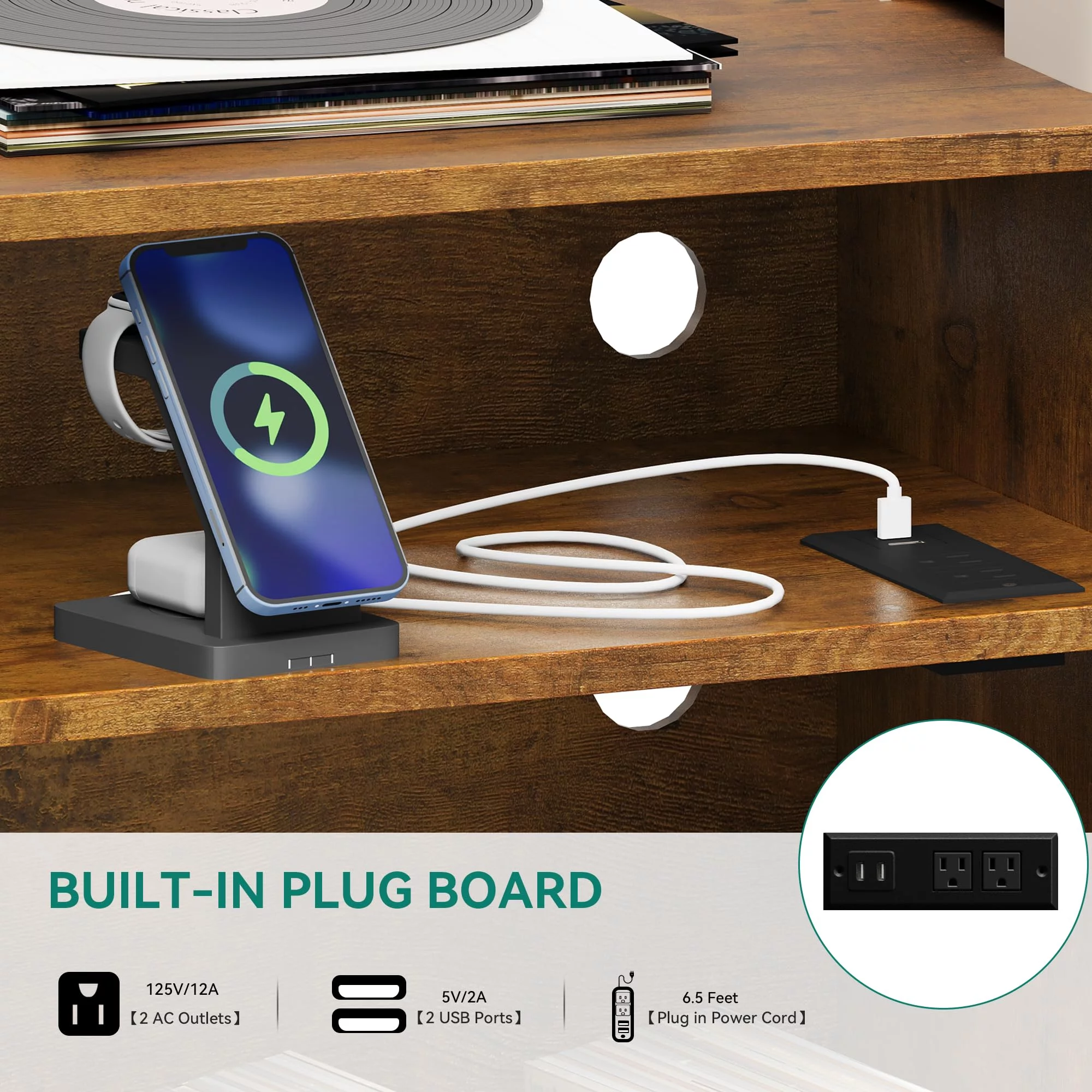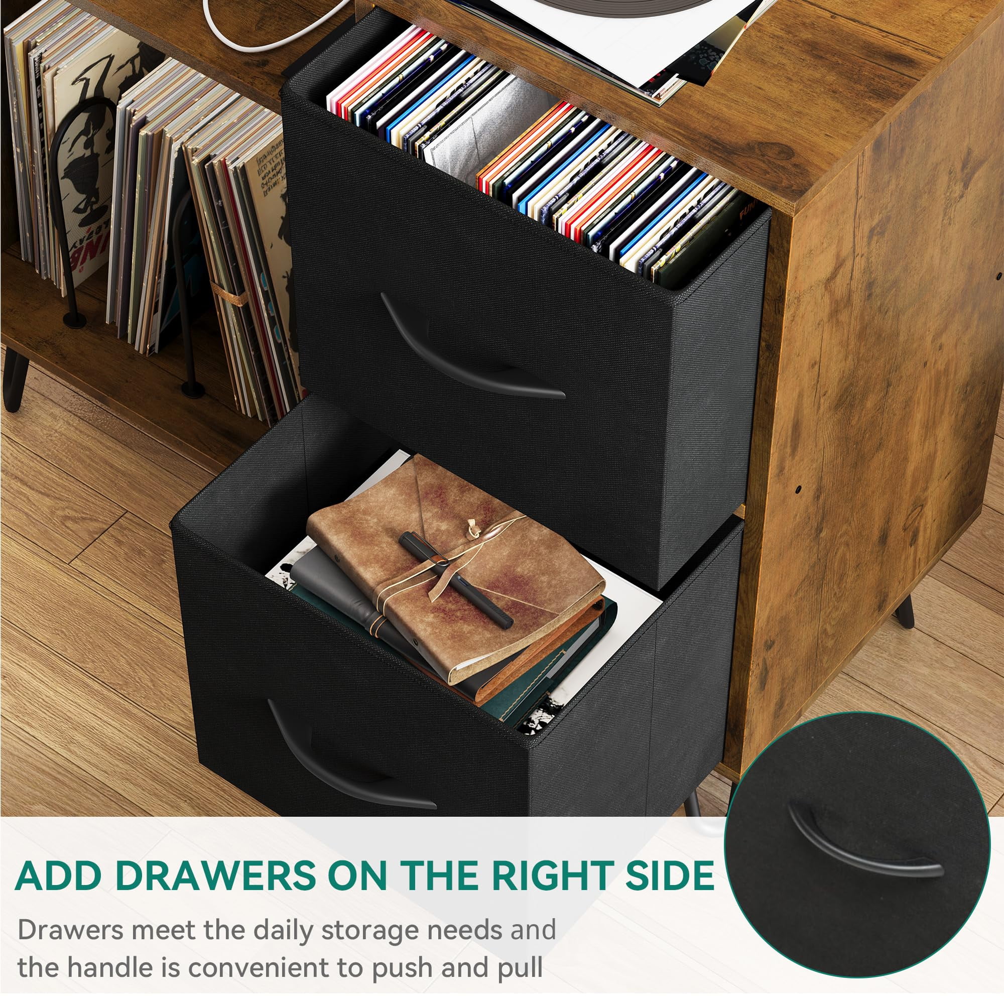 Dextrus Vinyl Record Player End Table Stand with Cloth Drawer, Turntable Stand with Charging Station & USB Ports