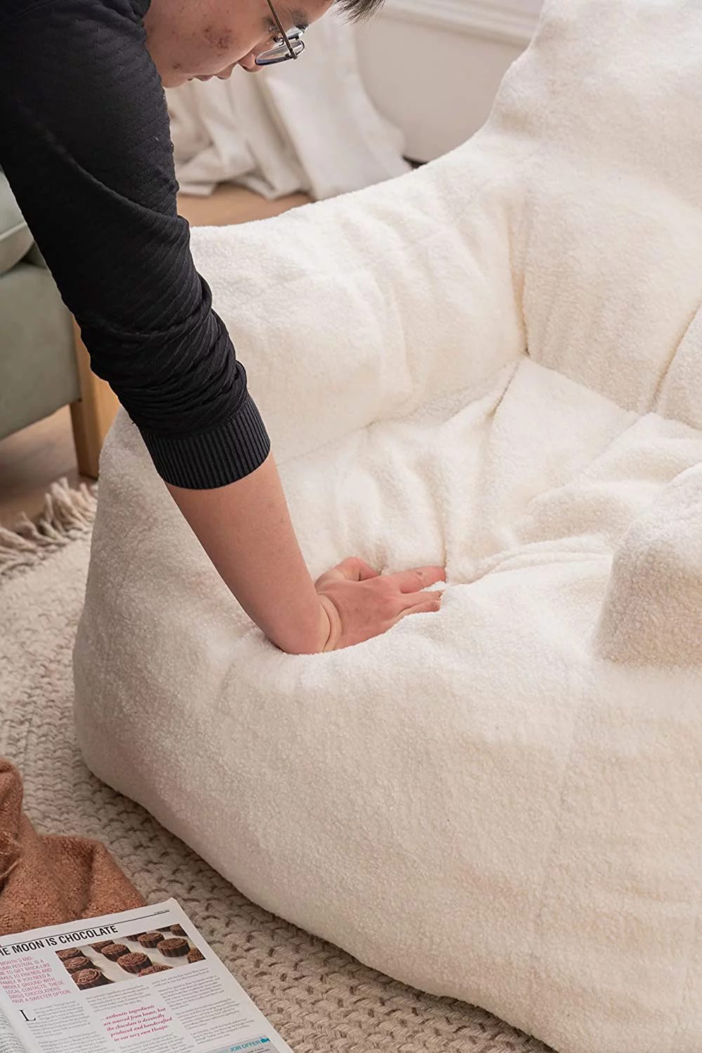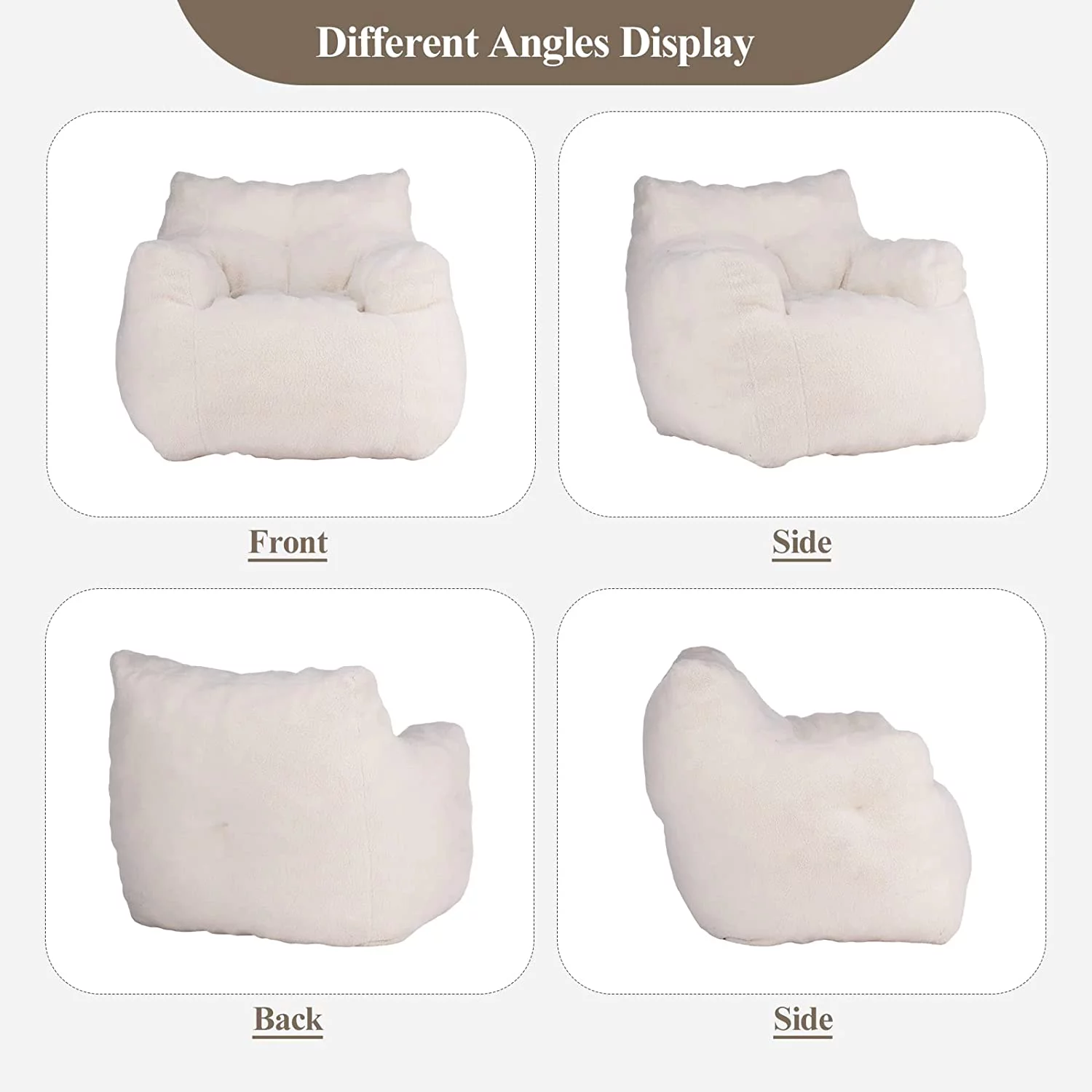 Sumdeal Soft Tufted Foam Bean Bag Chair For Adults, Fluffy Lazy Sofa Teddy Fabric Bean Bags Comfy Couch, Stuffed Bean Bag Sofa Reading Chair Lounge Chair for Bedroom, Living Room, Apartment, Ivory