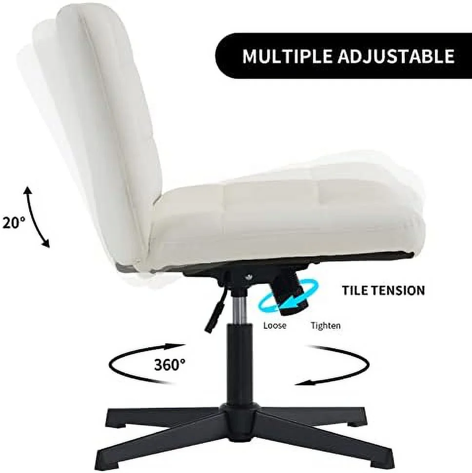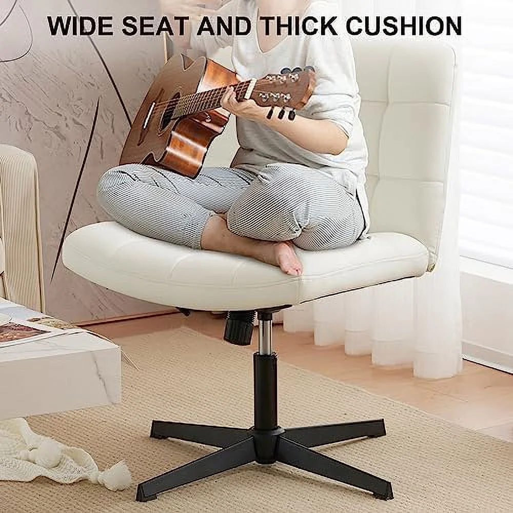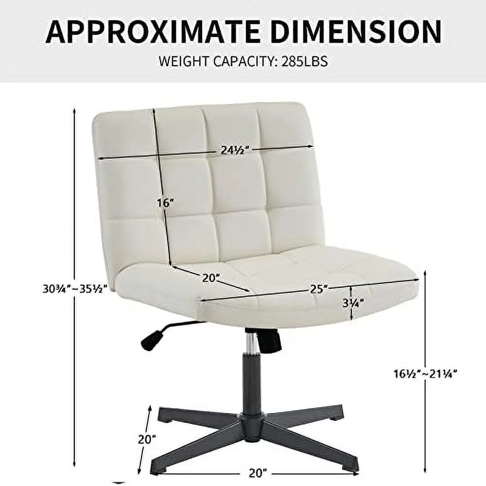 xrboomlife Wide Armless Desk Chair No Wheels Mid Back Swivel Criss Cross Chair for Home Office Height Adjustable Wide Seat Home Office Task Chairs (Beige)