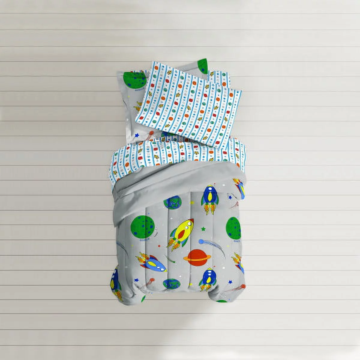 Dream Factory Space Rocket Twin 5 Piece Comforter Set, Bed-in-a-Bag Polyester, Grey, Multi, Male, Child