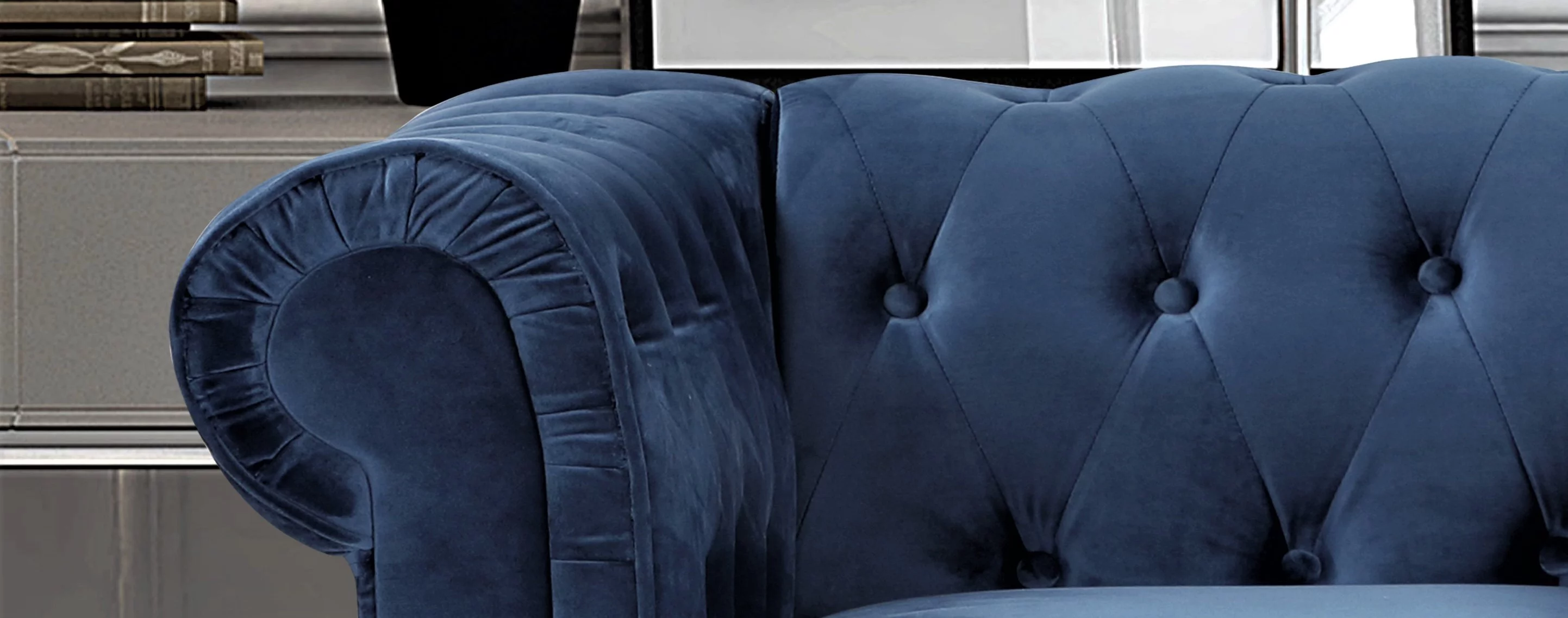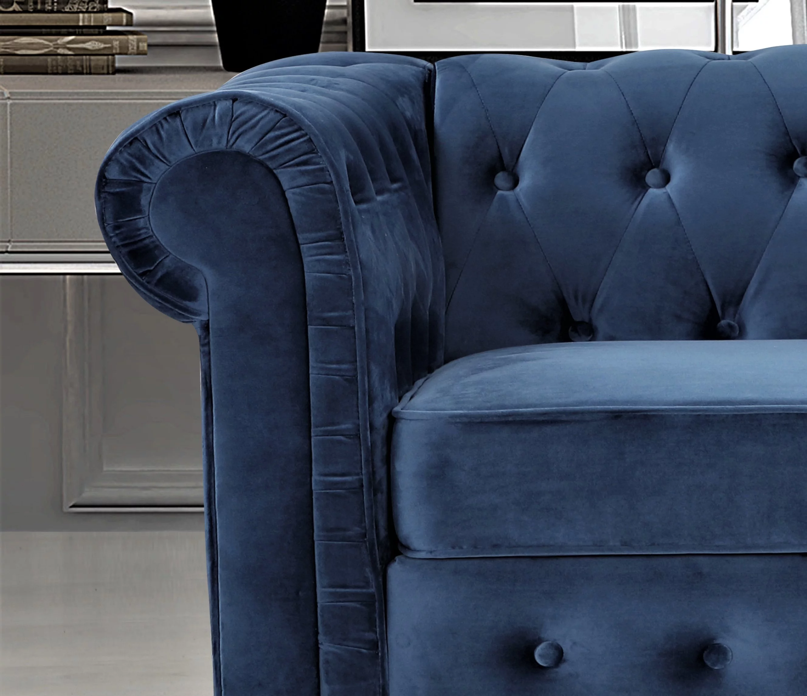 Uspridefurniture Shamblin 61'' Rolled Arm Chesterfield Velvet Loveseat -Blue