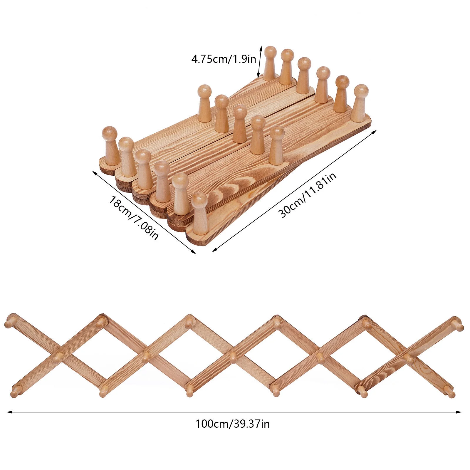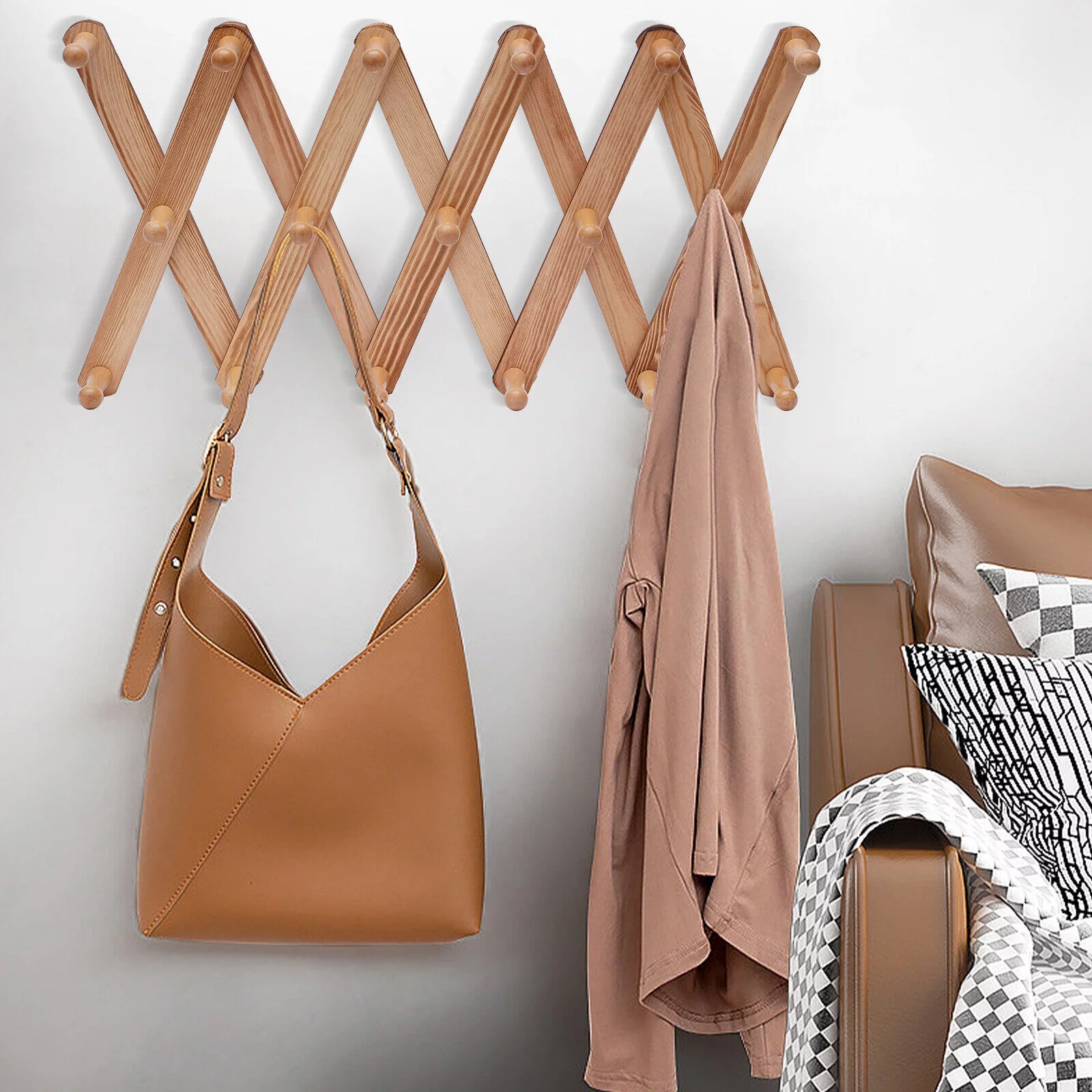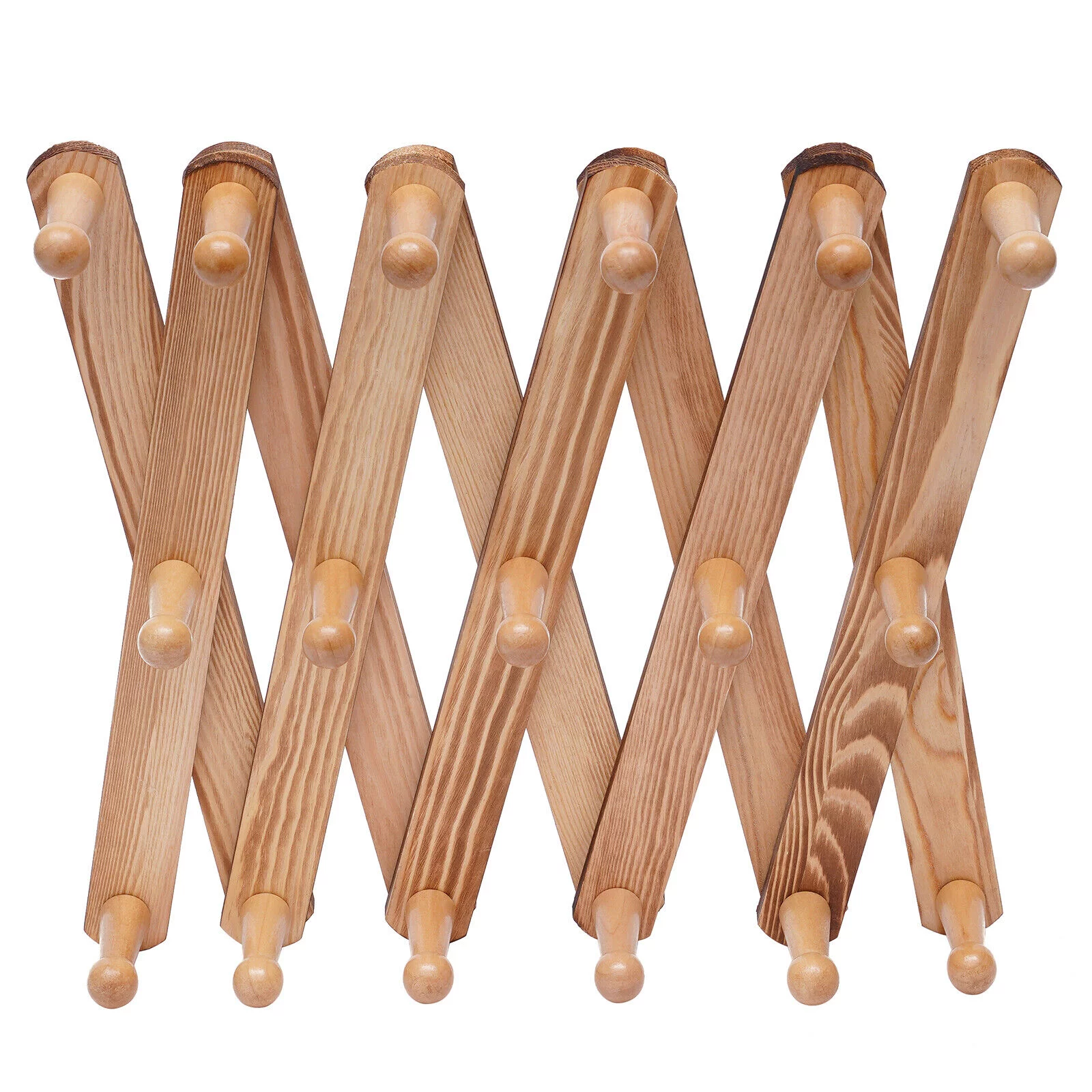 Expandable Coat Rack Accordian Wall Hanger 17 Hooks Wooden X Shape Hat Rack