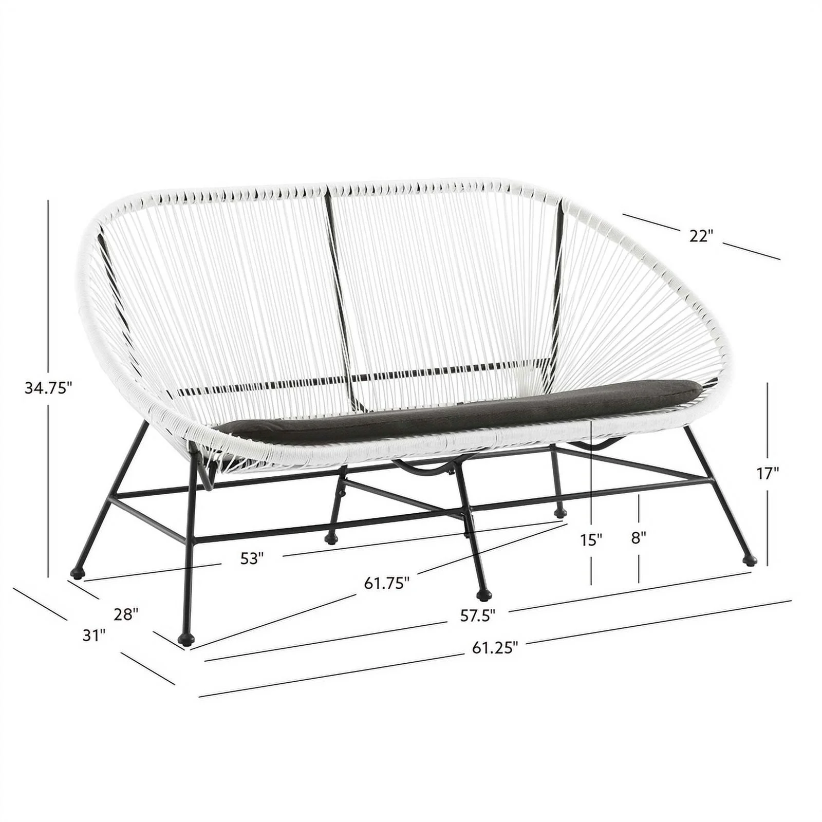 Home Square 3-Piece Set with 2 Single Chairs and Loveseat in White