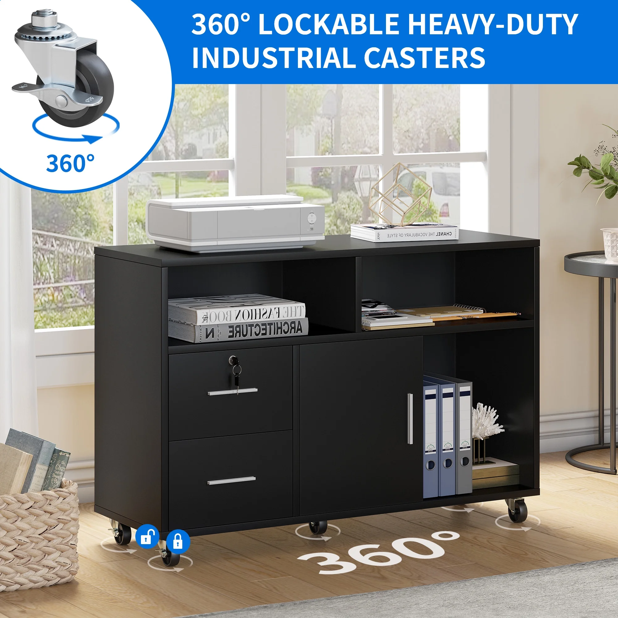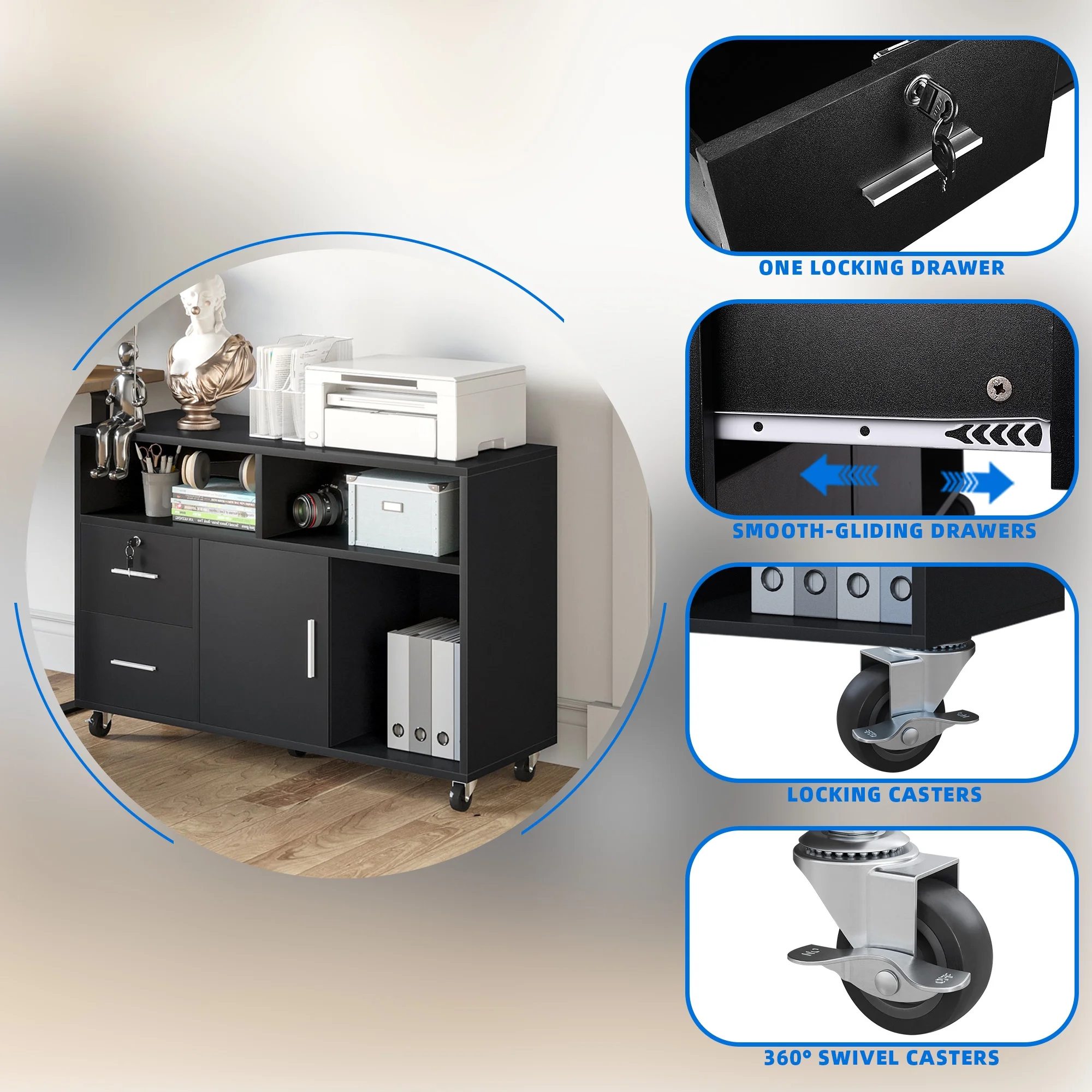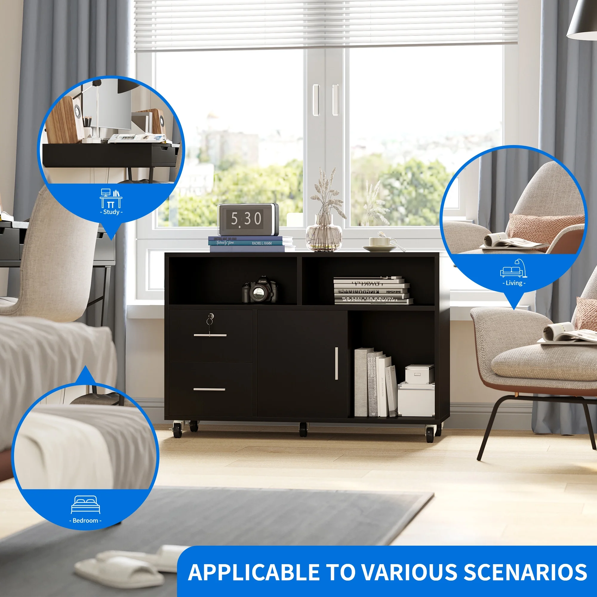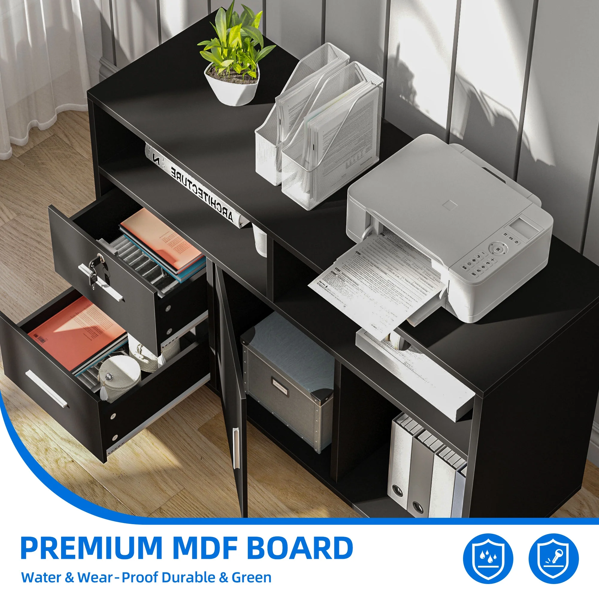DWVO Office Lateral File Cabinet 2 Drawer with Lock Storage Wood Shelf A4 Size Filing Organizer Black
