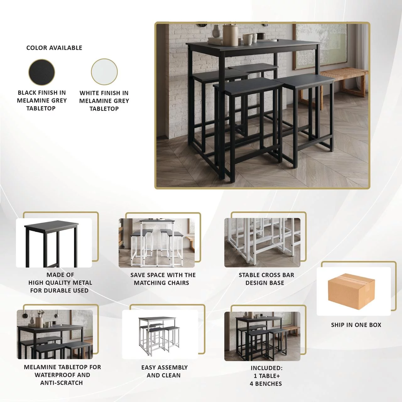 Castle Place Modern 5-Piece Counter Height Metal Dining Set, White