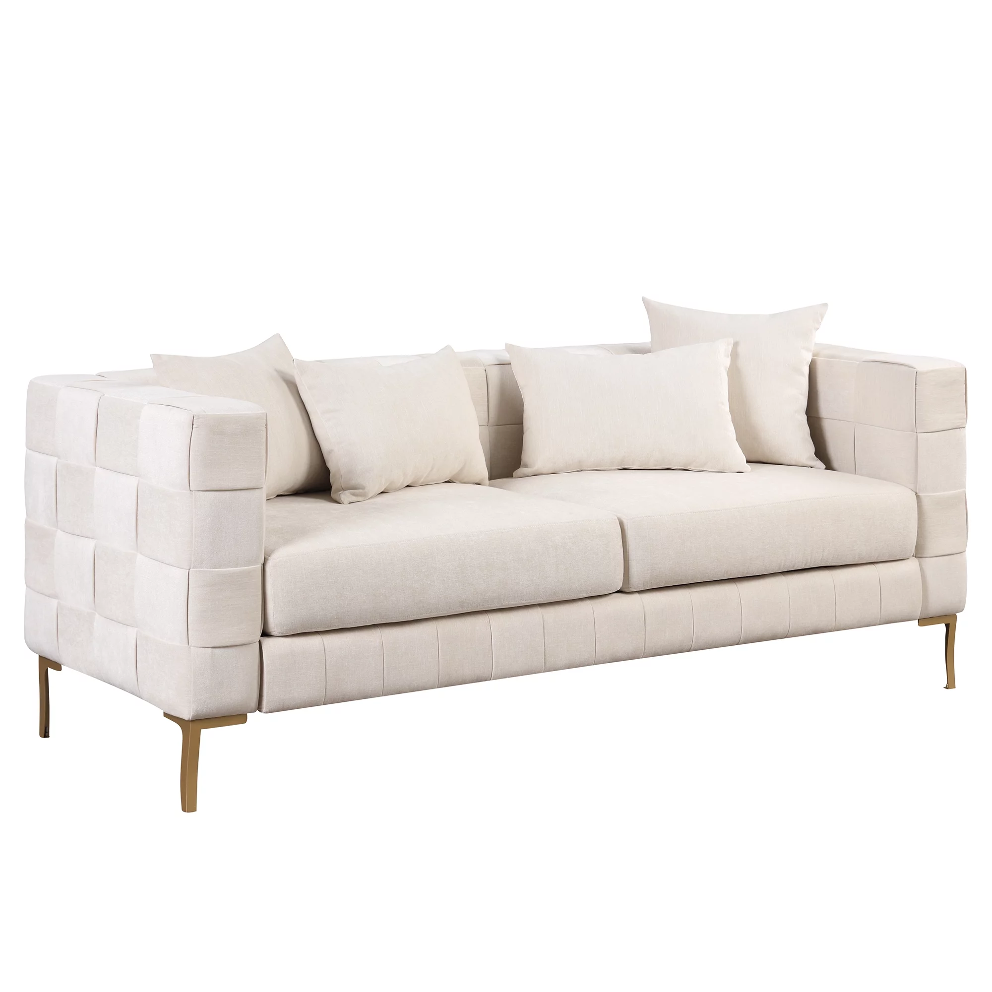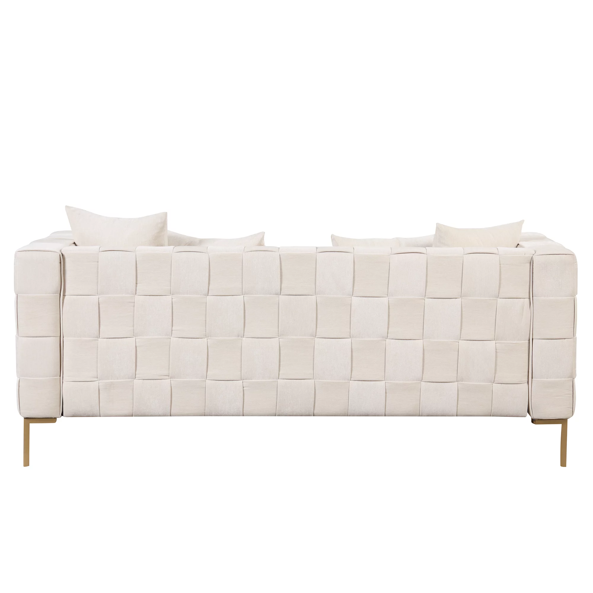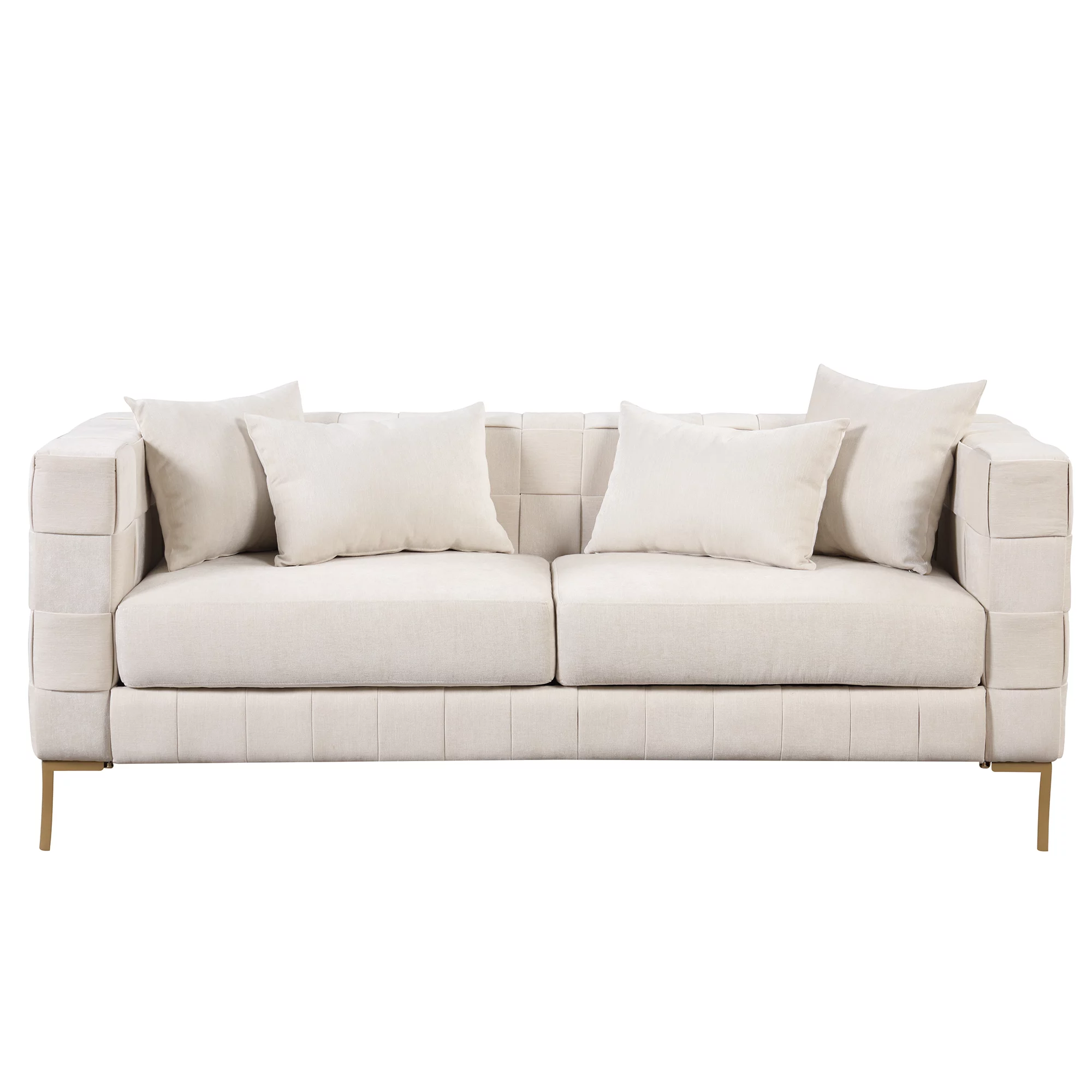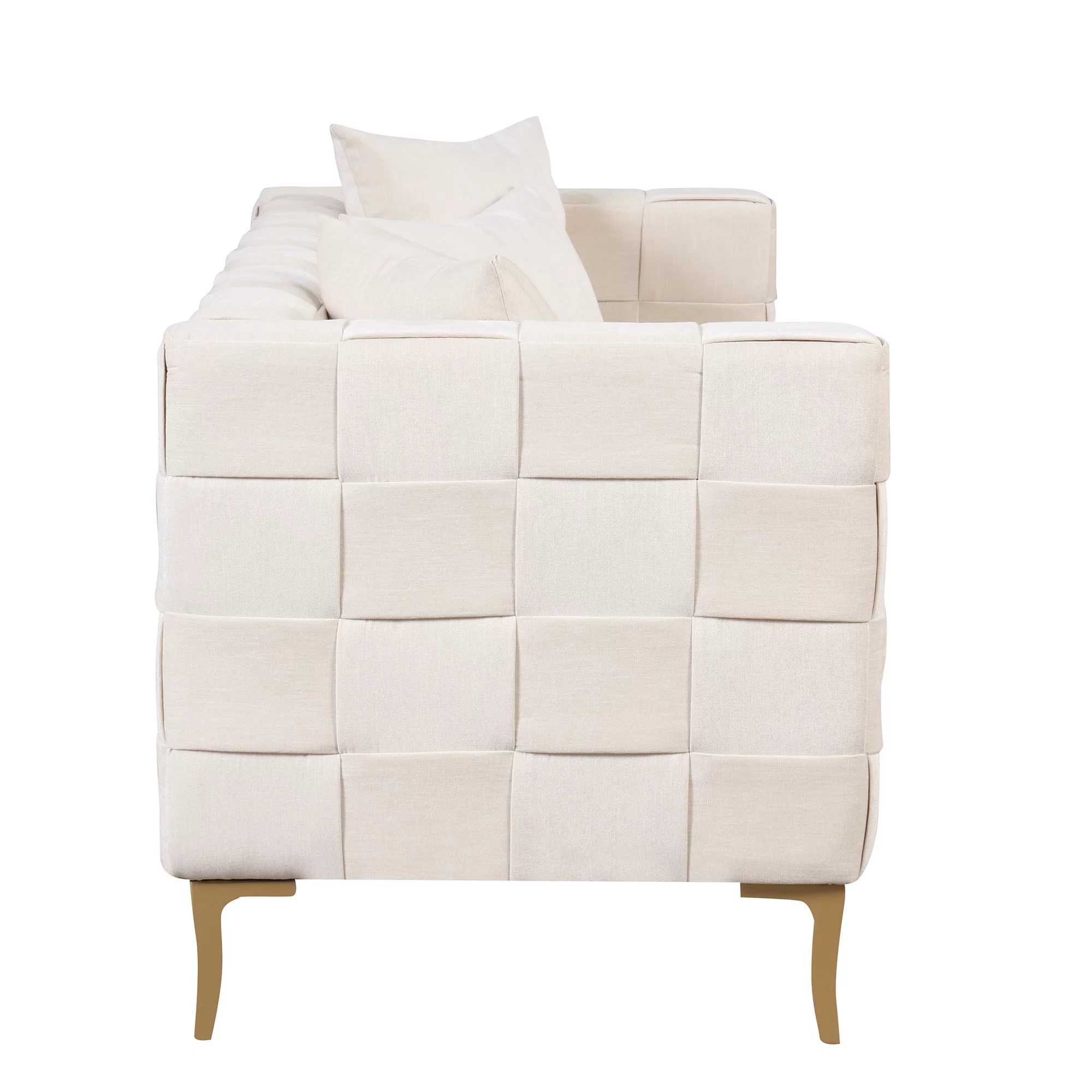 Beige 80.5"L Sofa Couch, Mid-Century 3-Seat Couches and Sofas, Chenille Upholstered Sofa with Thicked Cushions and 4 Pillows, Modern Sofa with Metal Legs, Sofa Couch Furniture for Home Living Room