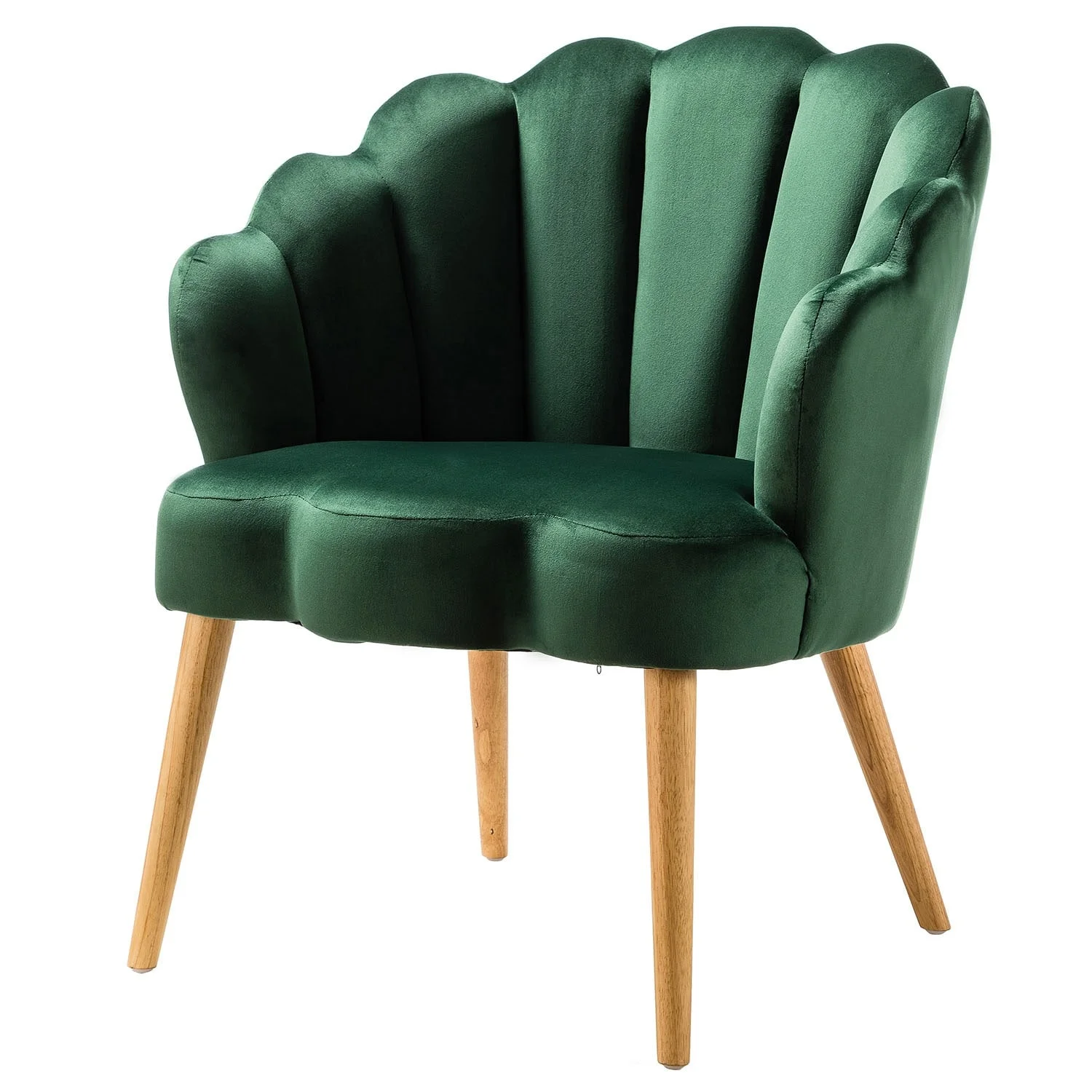 HULALA HOME Eleanora Morden Scalloped Velvet Arm Chair with Tufted Back by GREEN
