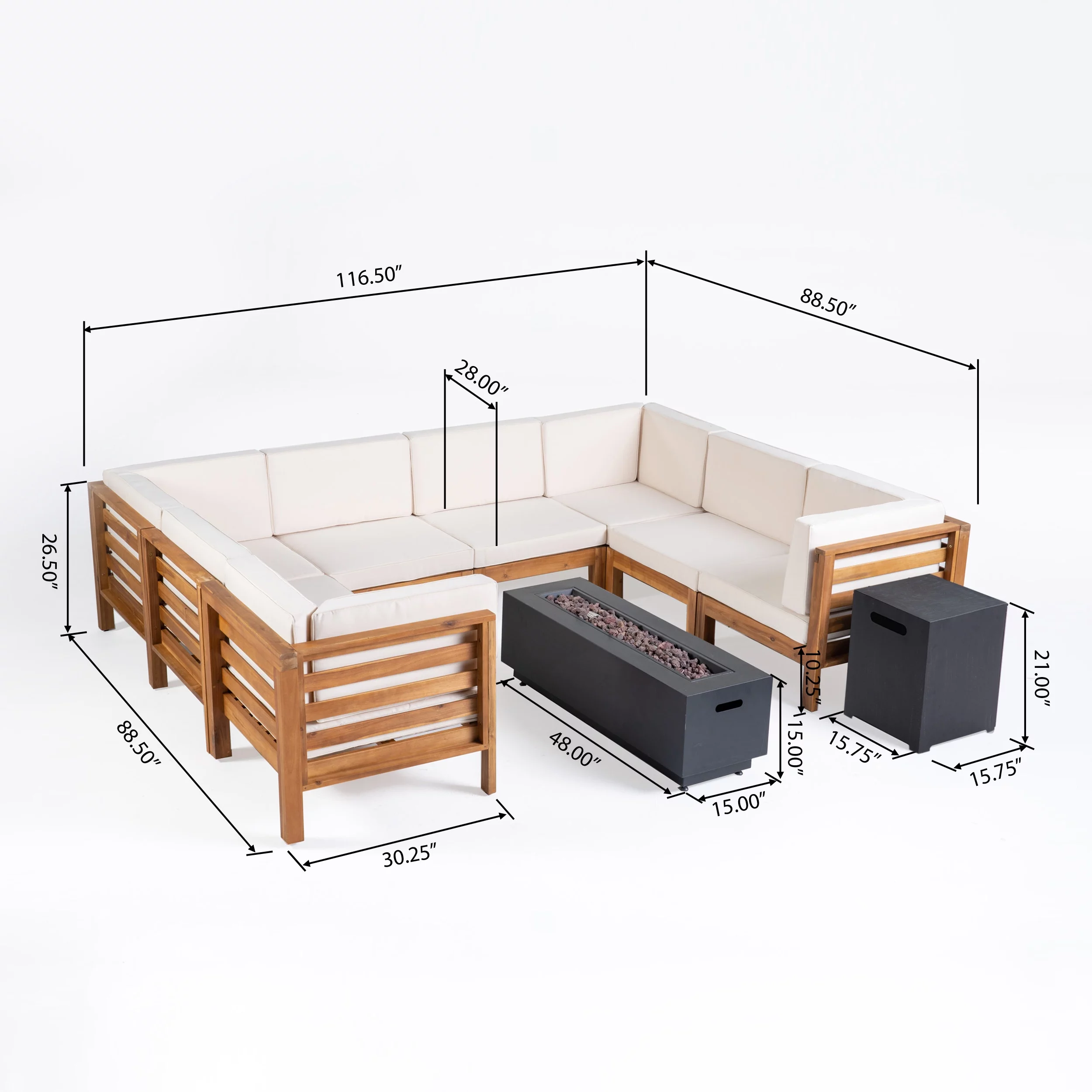 GDF Studio Krystin Outdoor U-Shaped Sectional Sofa Set with Fire Pit, Brown