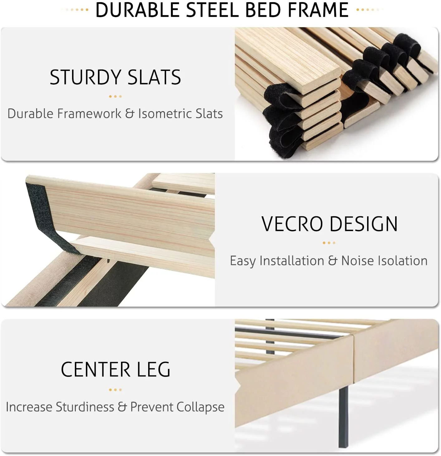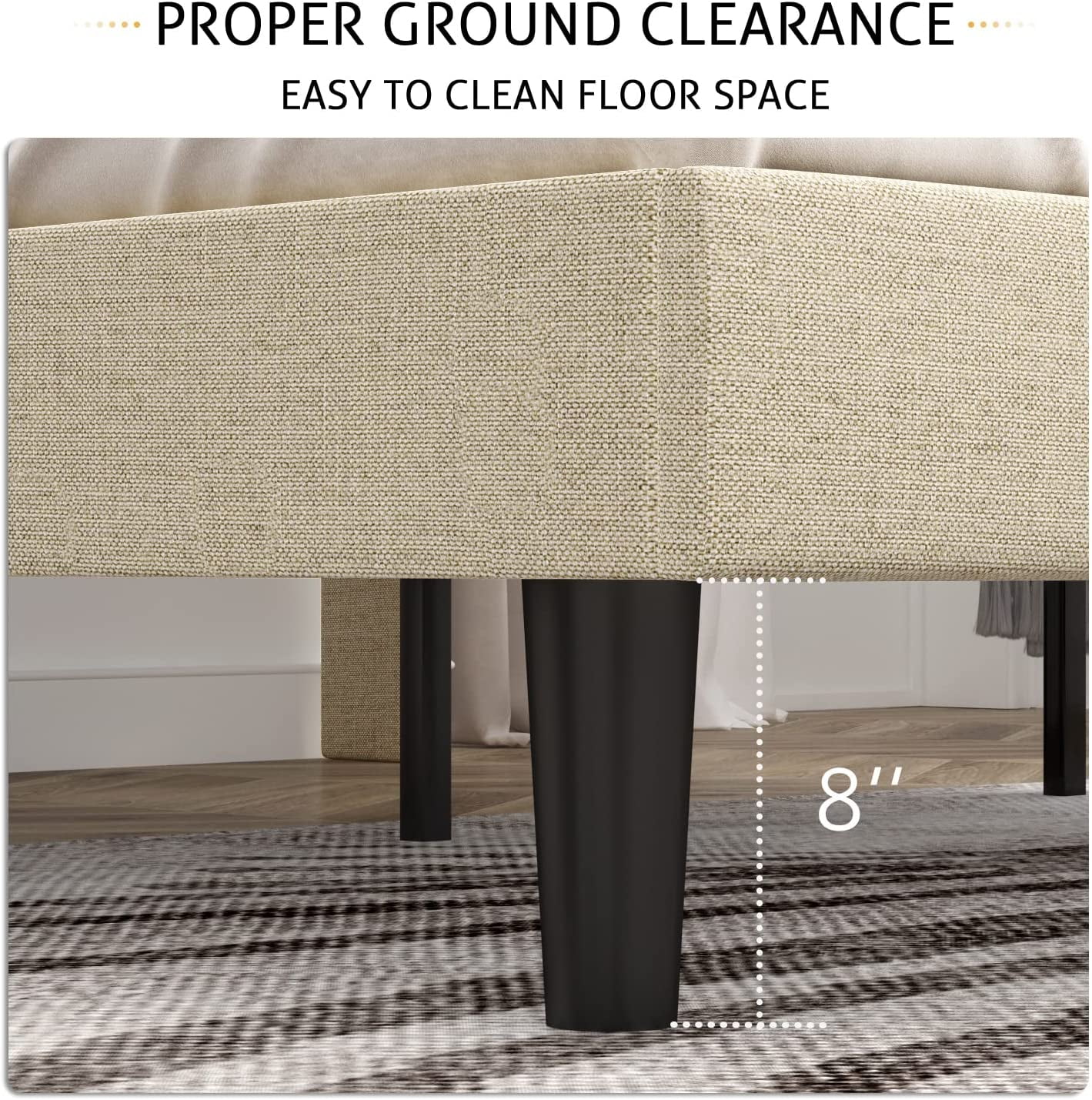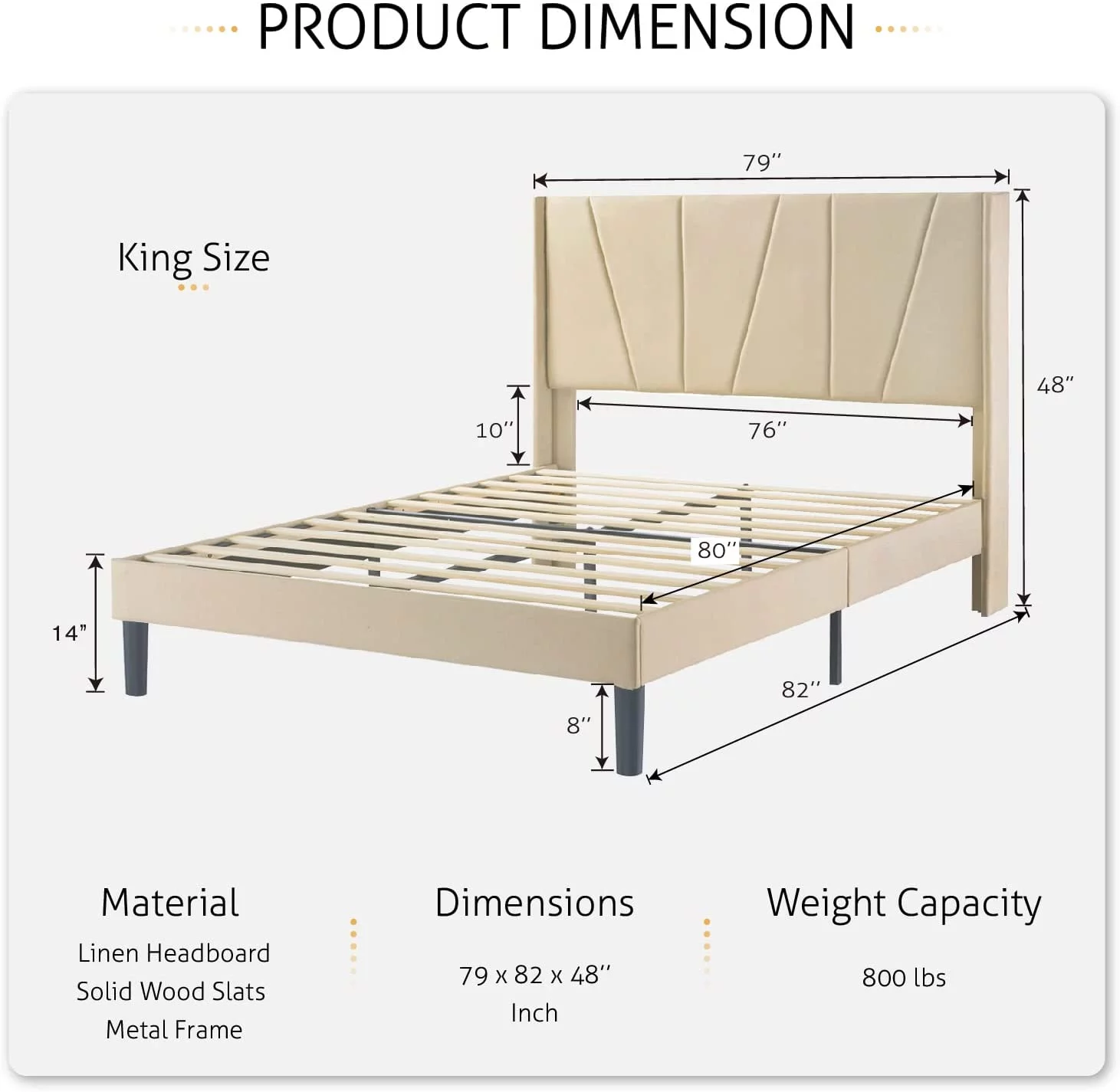 Sha Cerlin King Size Upholstered Platform Bed frame with Geometric Headboard and Wingback, Wood Slat Support, Beige
