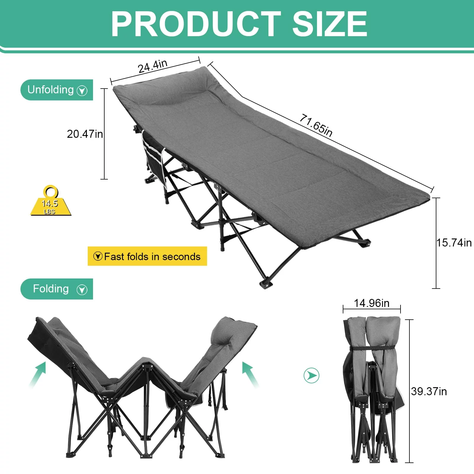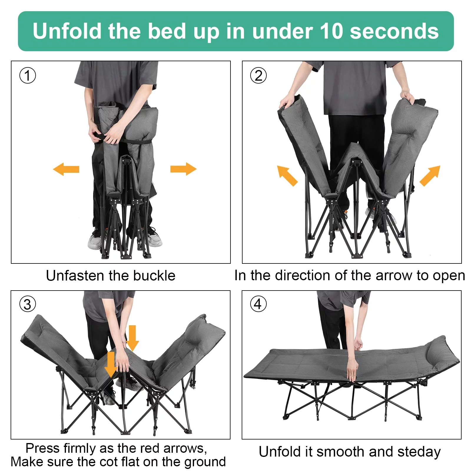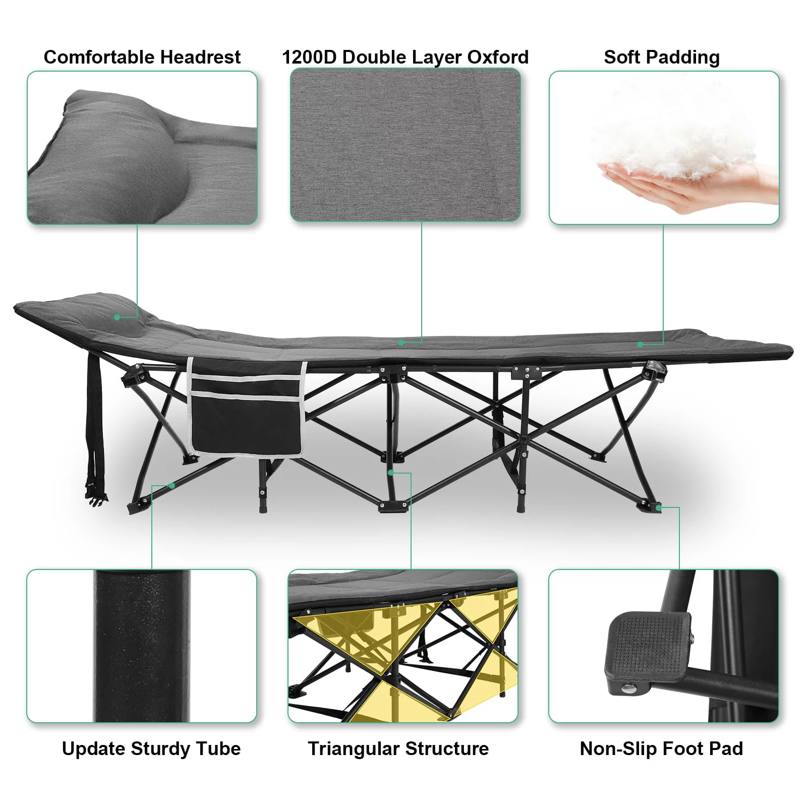 Folding Camping Cot – Deluxe Collapsible Single Person Bed in a Bag w/Pillow for Indoor & Outdoor Use – Ultra Lightweight, Comfortable, Heavy Duty Design Holds Adults & Kids