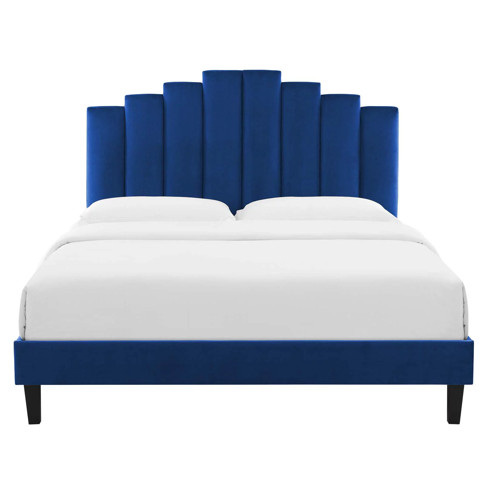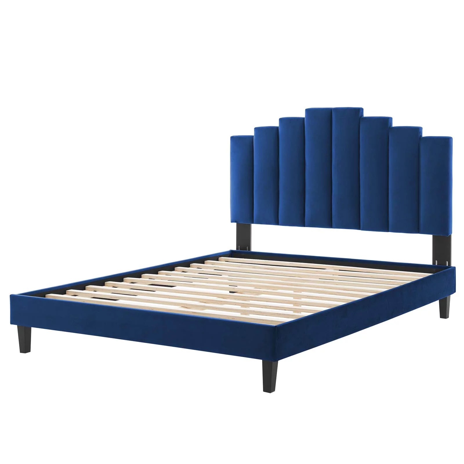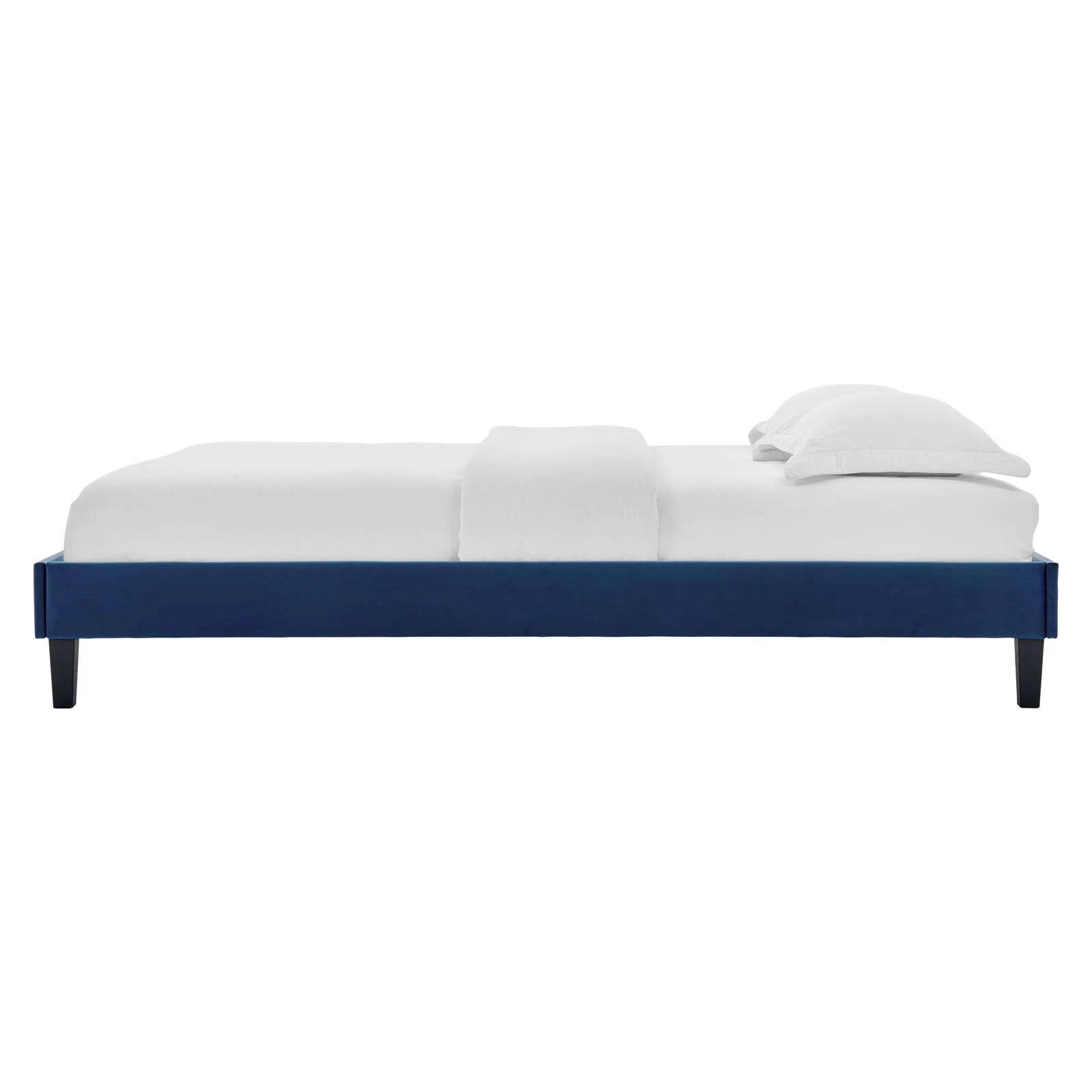 Platform Bed Frame, King Size, Velvet, Blue Navy, Modern Contemporary Urban Design, Bedroom Master Guest Suite
