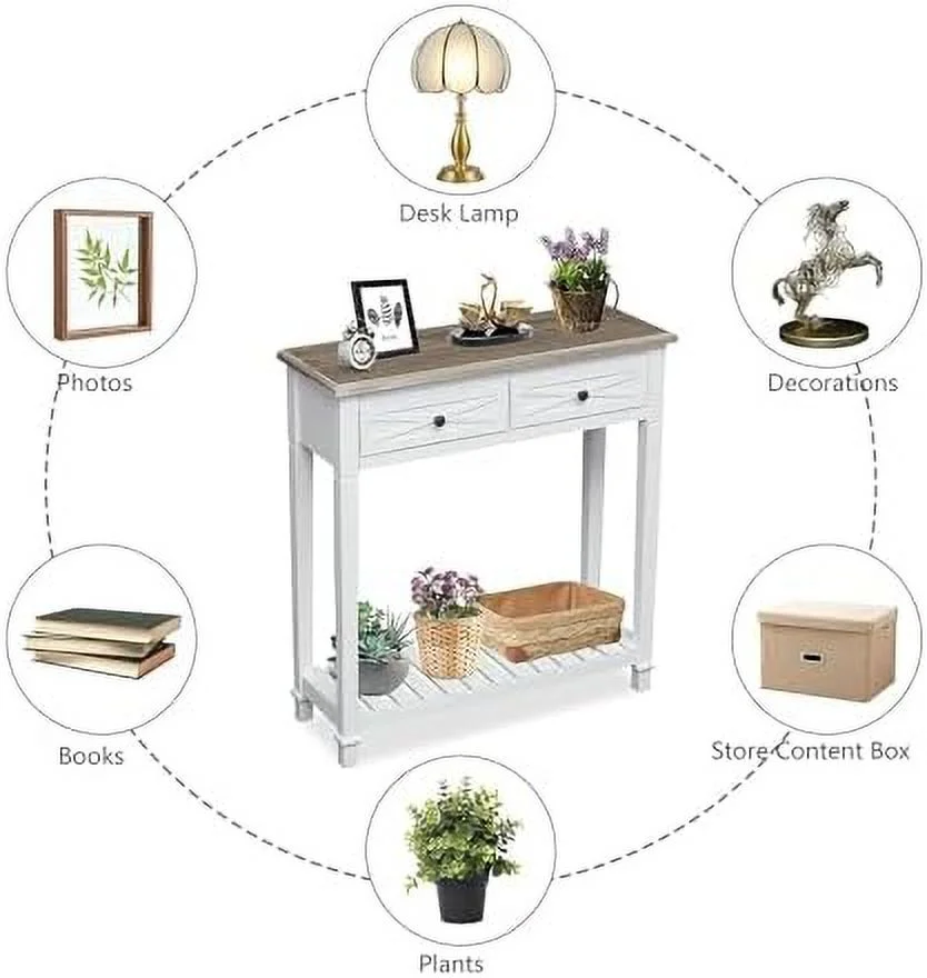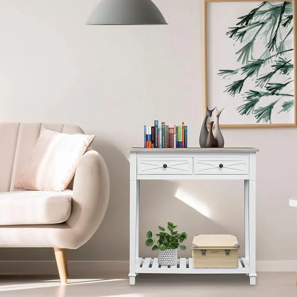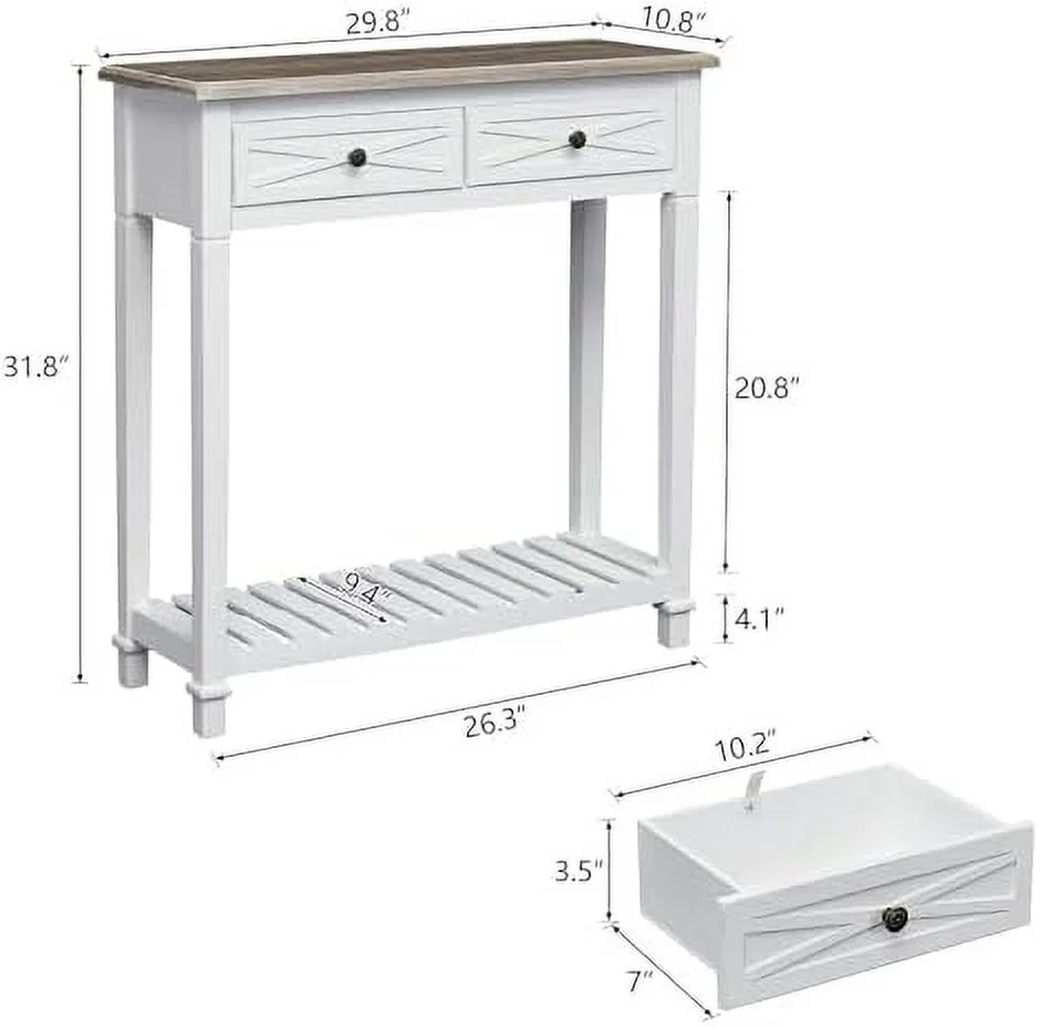 Console Tables for Entryway with 2 Drawers and Shelf Small Narrow Sofa Table Living Room Hallway French Country Rustic White