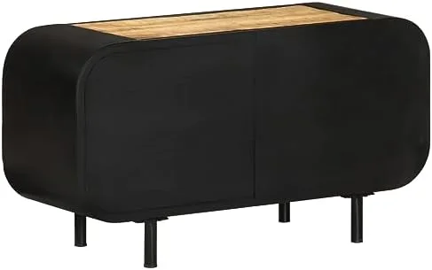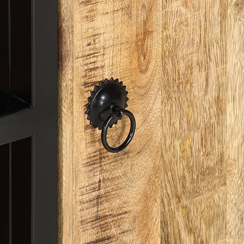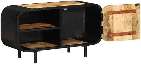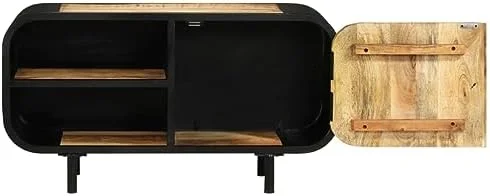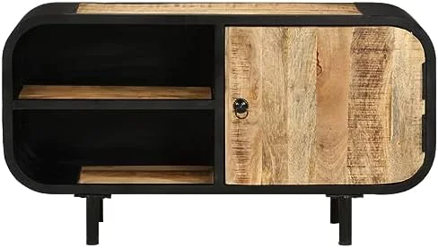RUNFAYBIU Industrial-Style TV Stand Cabinet - Vintage Rough Mango Wood Brown Ample Compartment with Shelves 35.4"x11.8"x18.9" - DIY Assembly