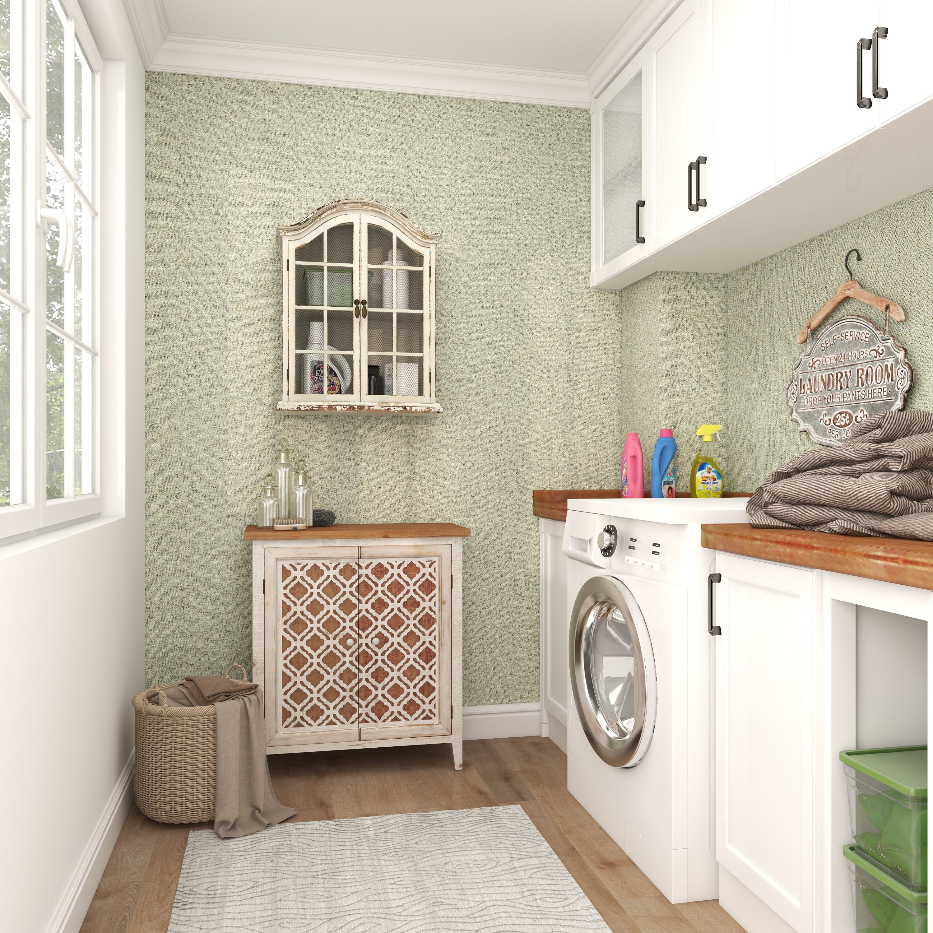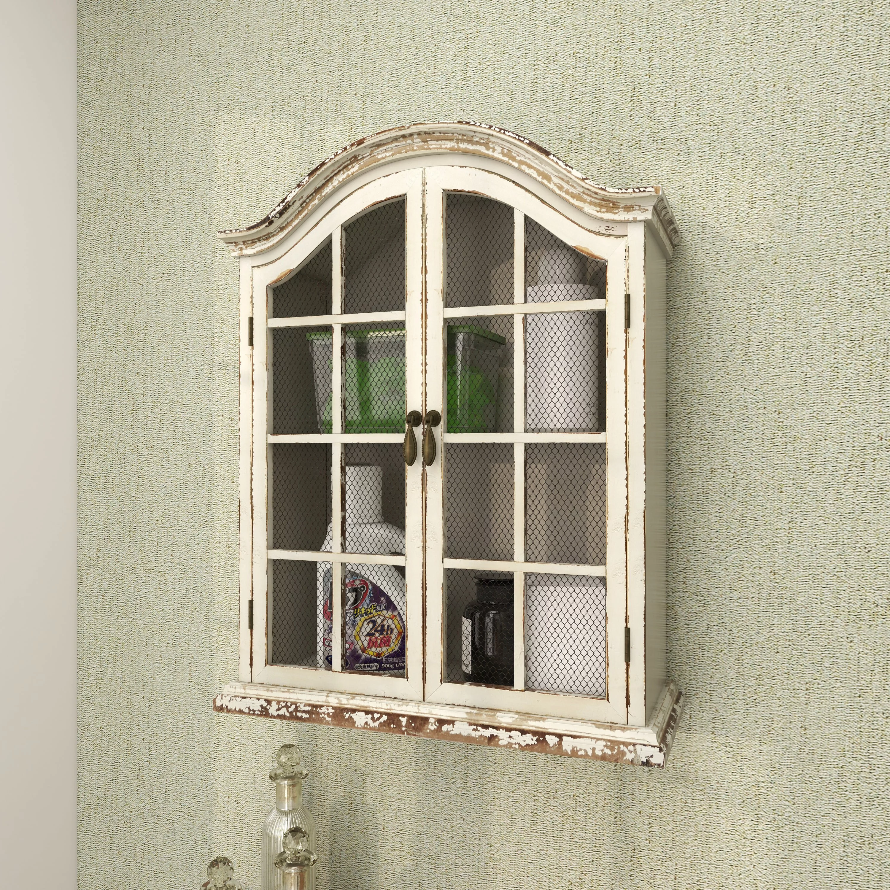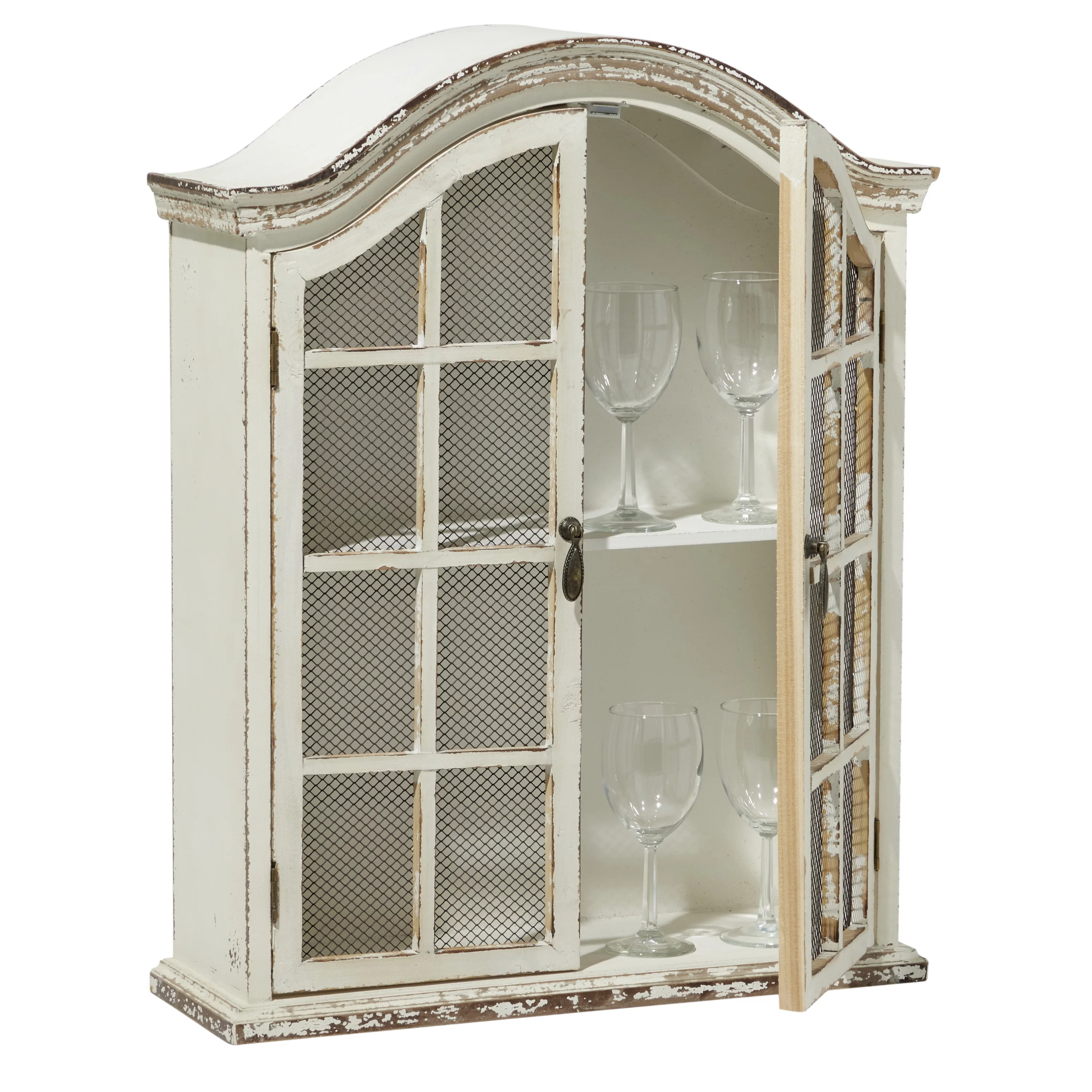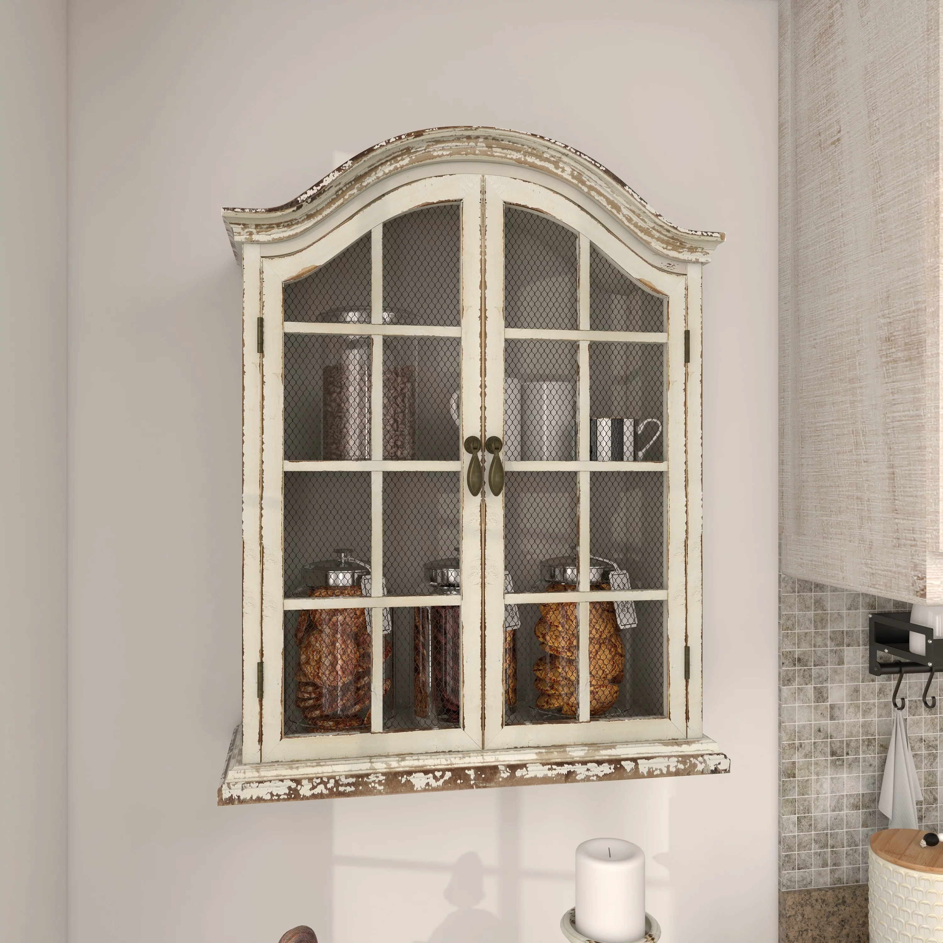 DecMode Vintage White Wood Wall Décor with Glass Doors and Shelving, 22"L x 8"W x 28"H