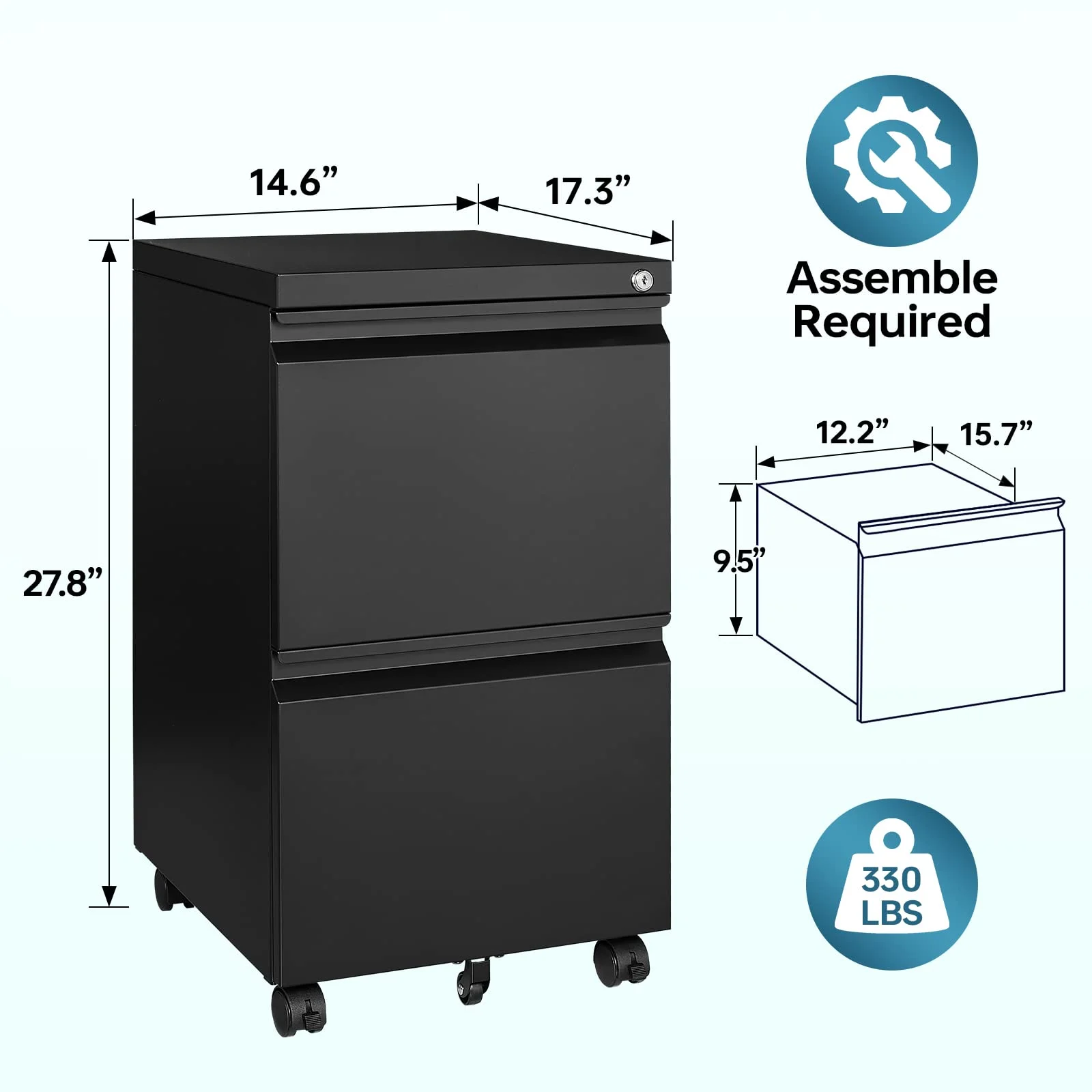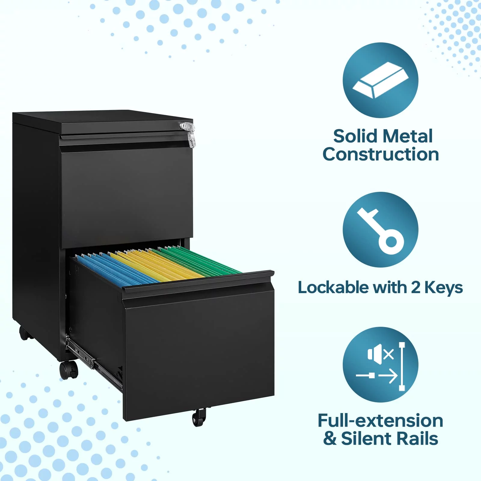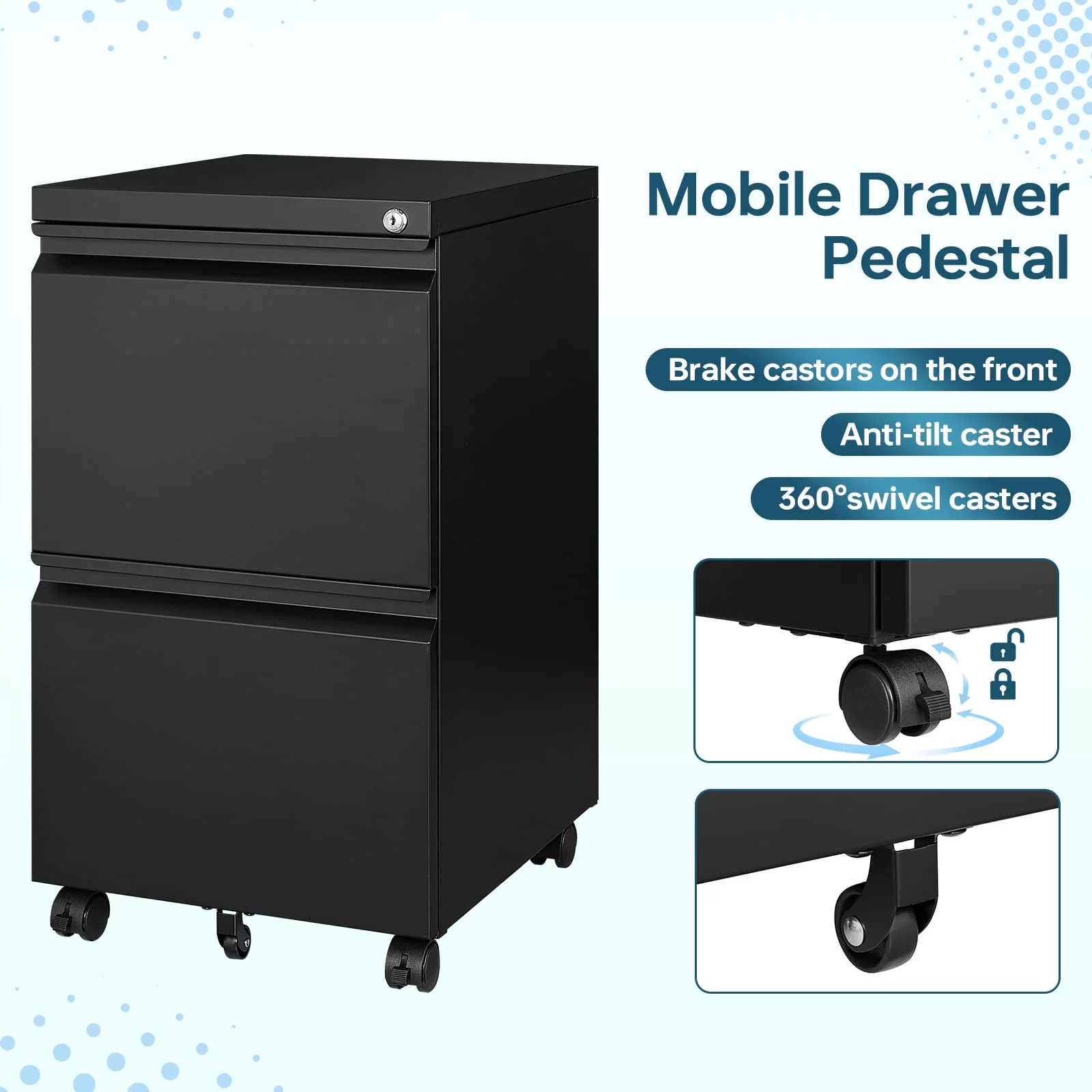 STANI 2 Drawer File Cabinet on Wheels, Home Office Mobile File Cabinet Under Desk with Lock, Vertical Files with 2 Drawers for Legal/Letter/A4 Files