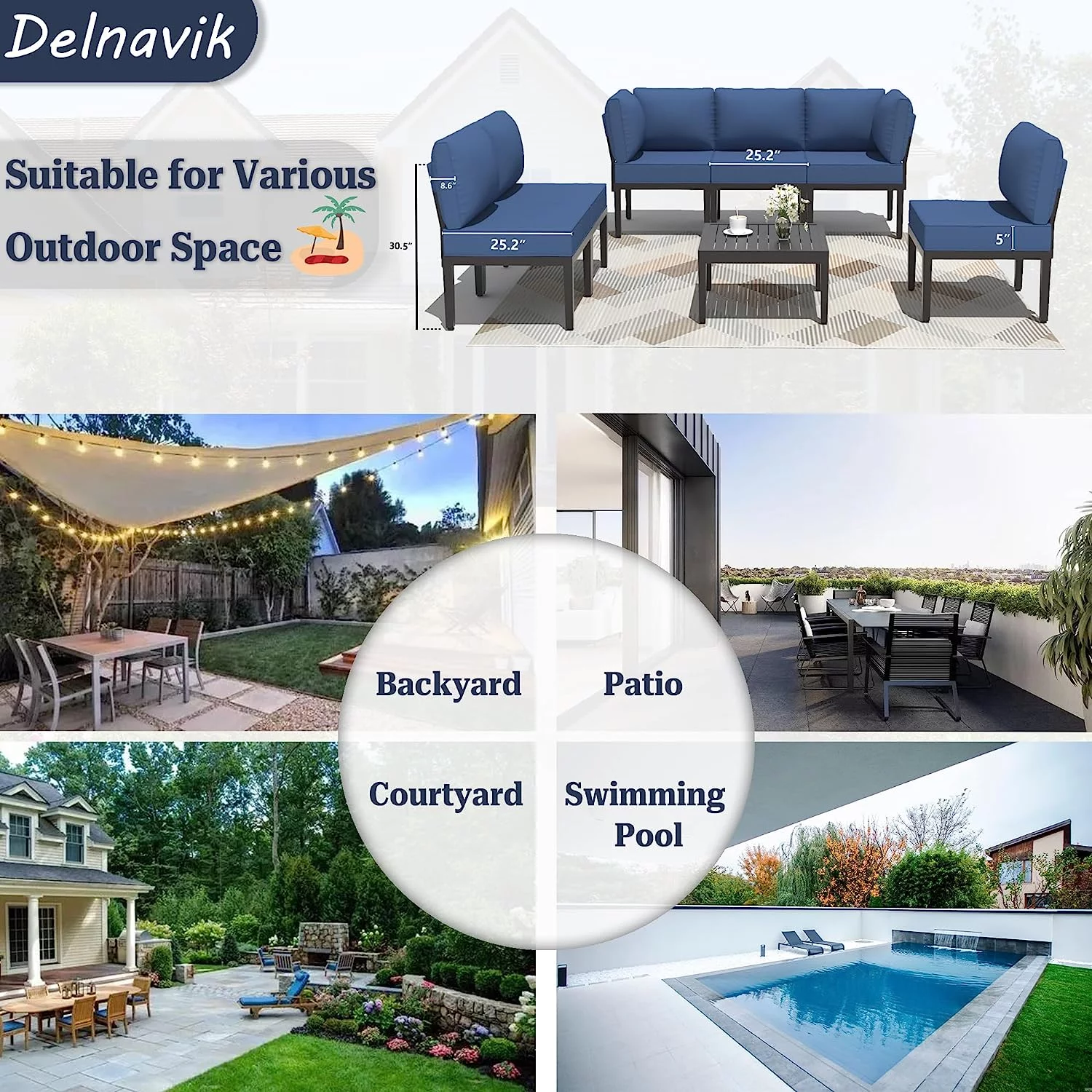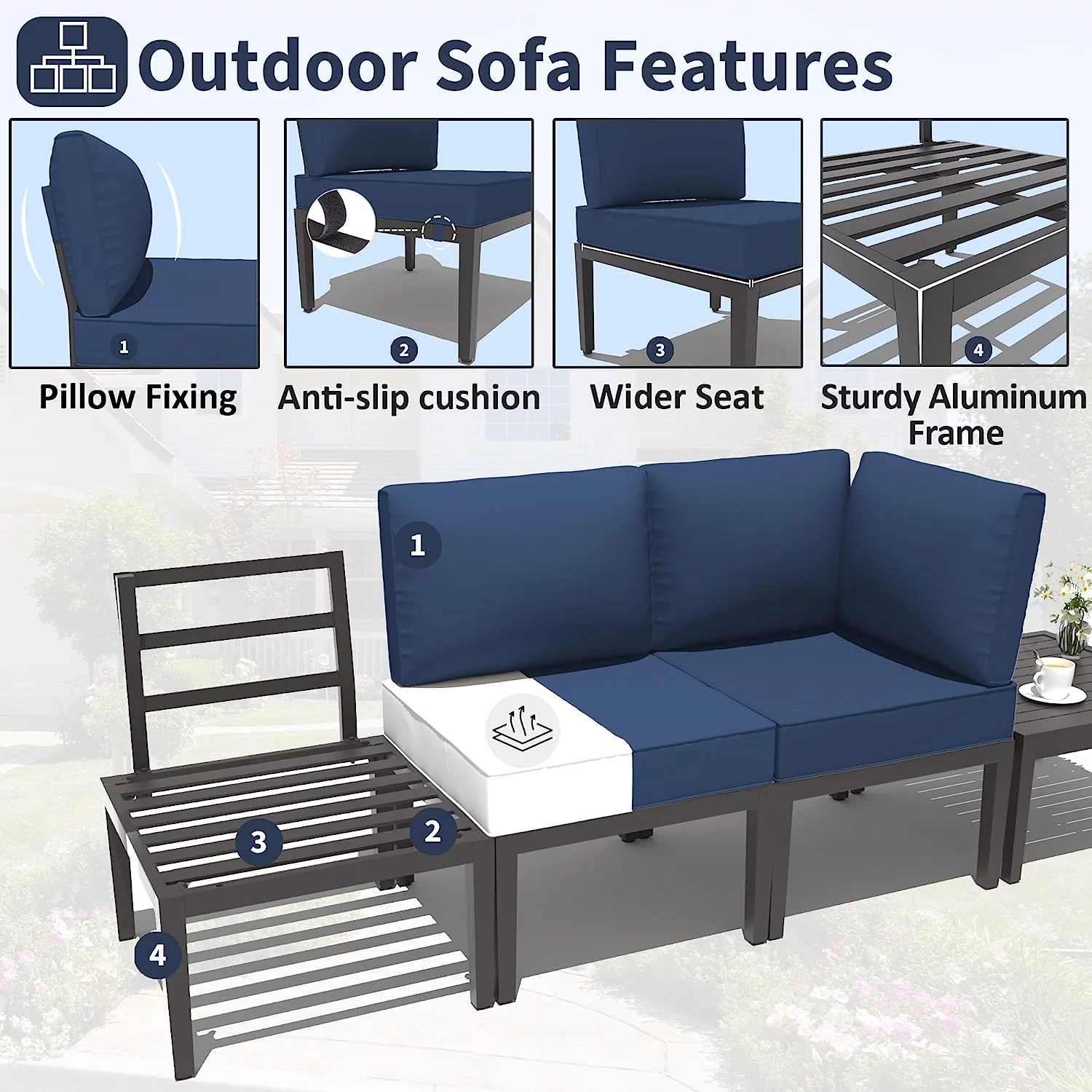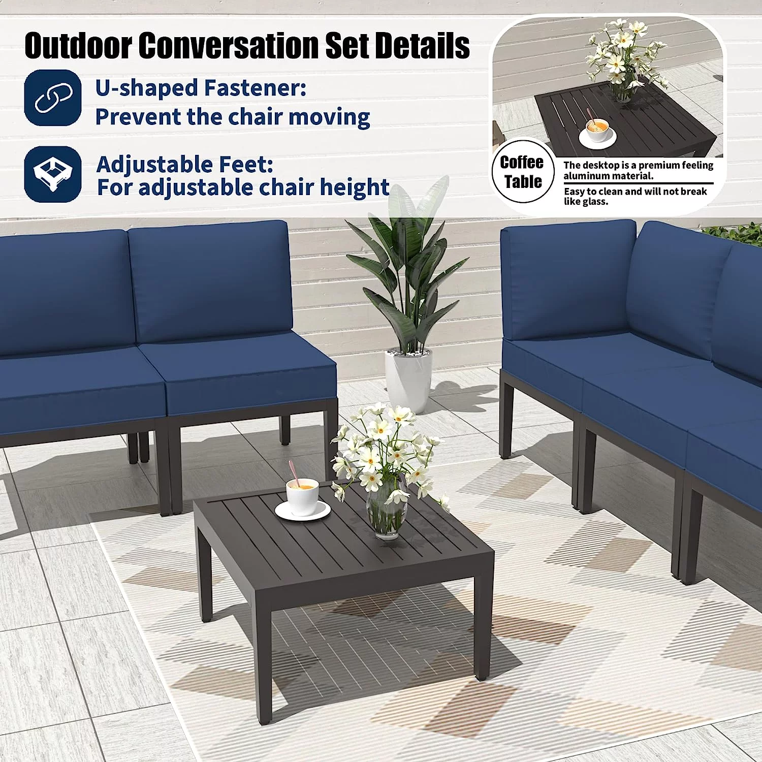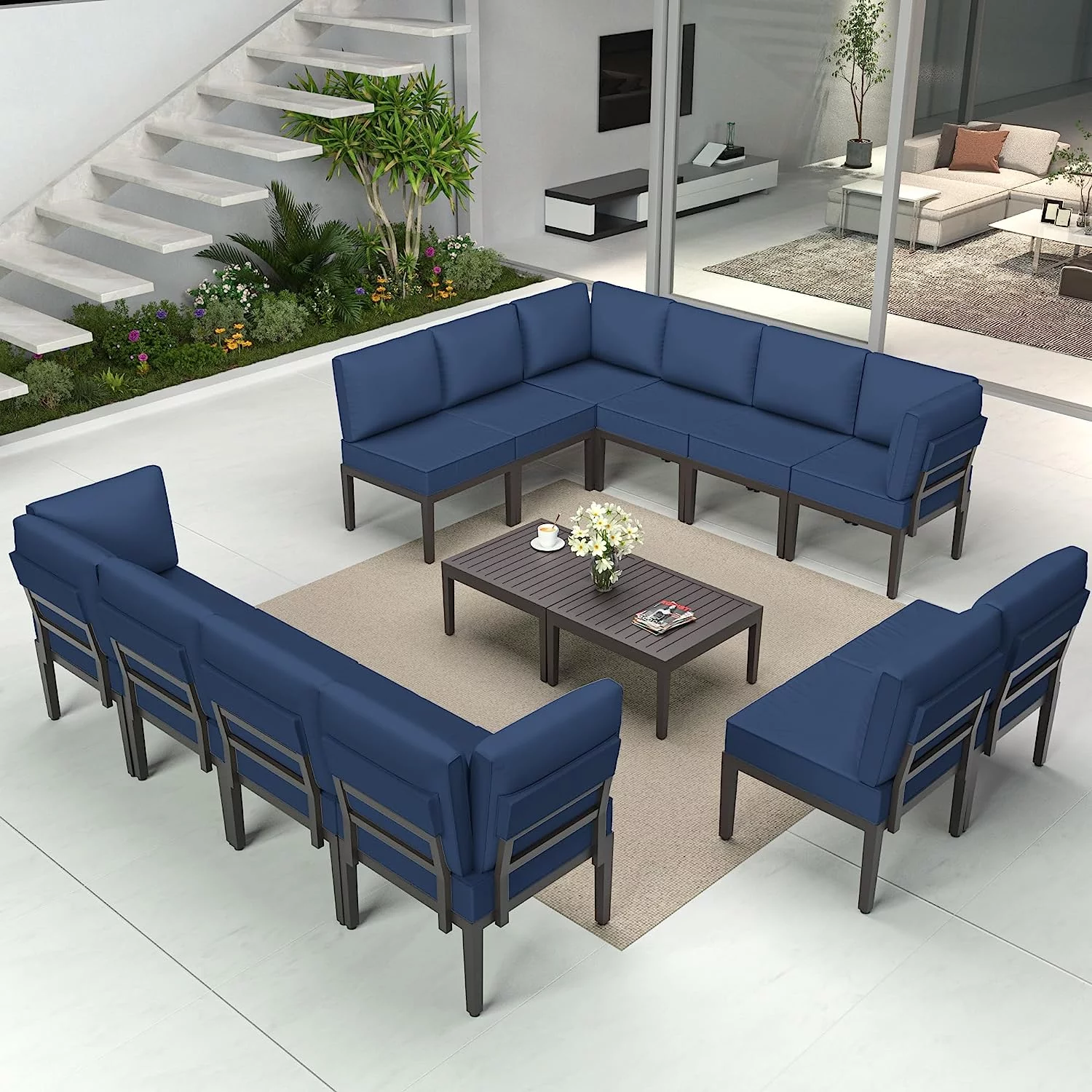 Kullavik Aluminum Patio Furniture Set,14 Pieces Modern Outdoor Conversation Set, Outdoor Metal Sectional Sofa with Thick Cushion and Coffee Table,Navy Blue