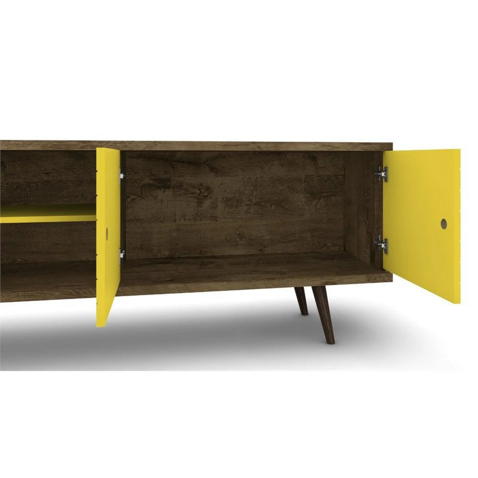 Pemberly Row Solid Wood TV Stand for TVs up to 60" in Rustic Brown/Yellow