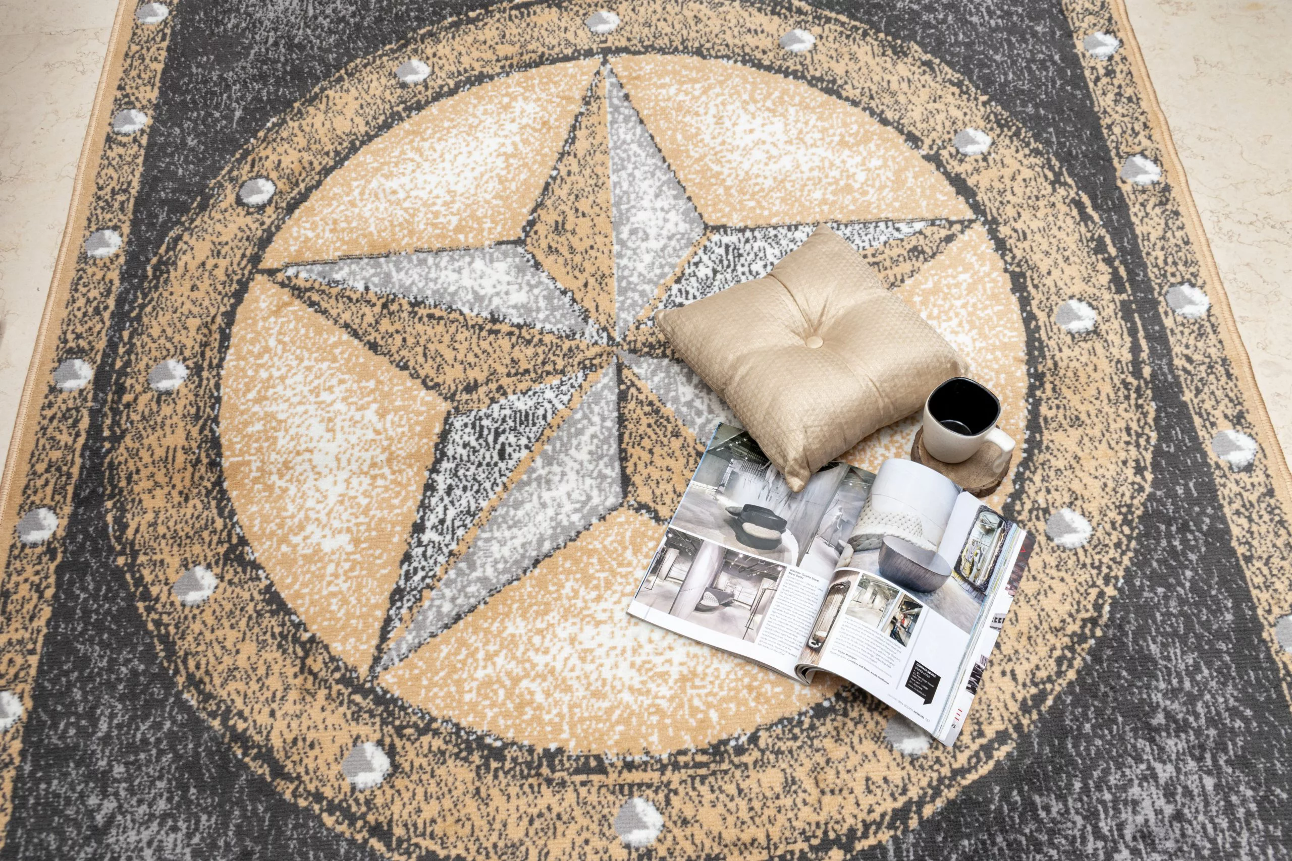 Furnish My Place Indoor Texas Star Rug with Jute Backing - 5 ft. x 8 ft., Multicolor, Novelty Western, Area Rug for Living Room, Bedroom, Hallway