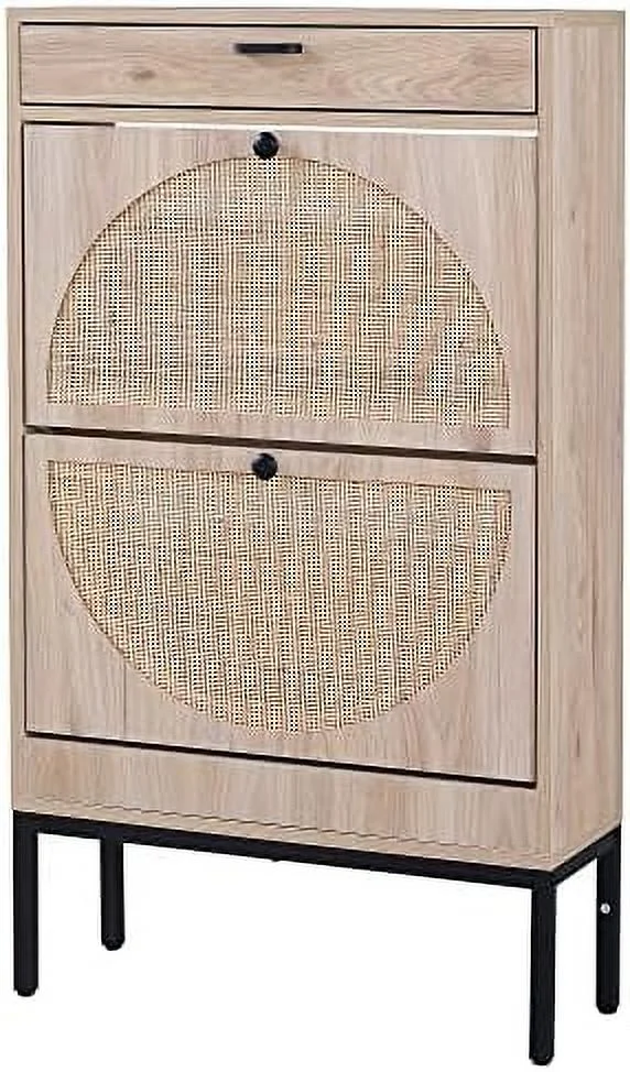 HOOMHIBIU Shoe Cabinet with 2 Flip Drawers&1 Small Drawer Slim Entryway Shoe Organizer with with Adjustable Shelve Rectangular Woven Rattan Doors for Entryway Hallway(1 Pieces)