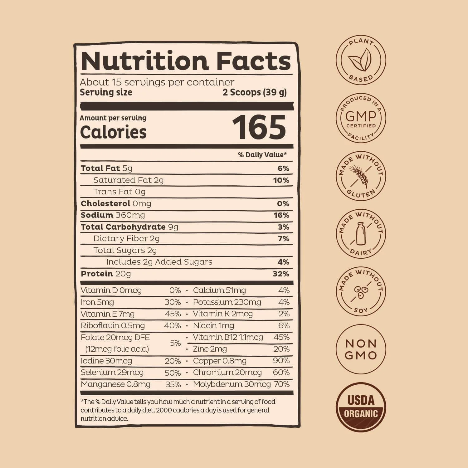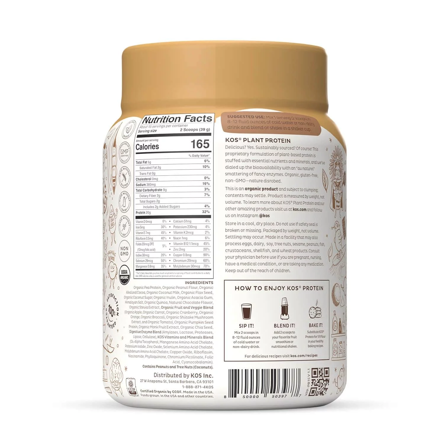 KOS Plant Based Protein Powder, Chocolate Peanut Butter - Low Carb Pea Protein Blend, Superfood with Vitamins & Minerals - USDA, Keto, Soy, Dairy Free - Meal Replacement for Women & Men - 15 Servings