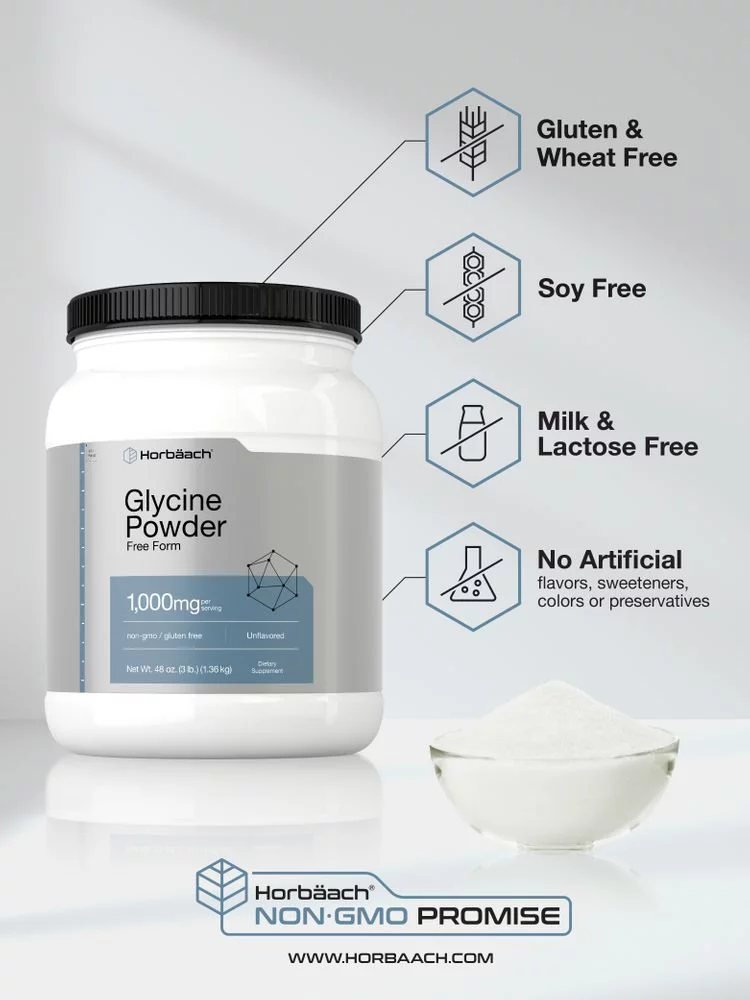Glycine Powder 3 lbs | Vegetarian Unflavored Formula | by Horbaach