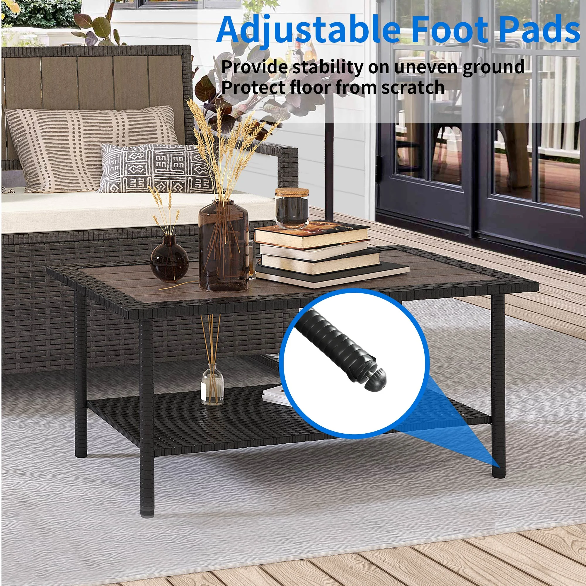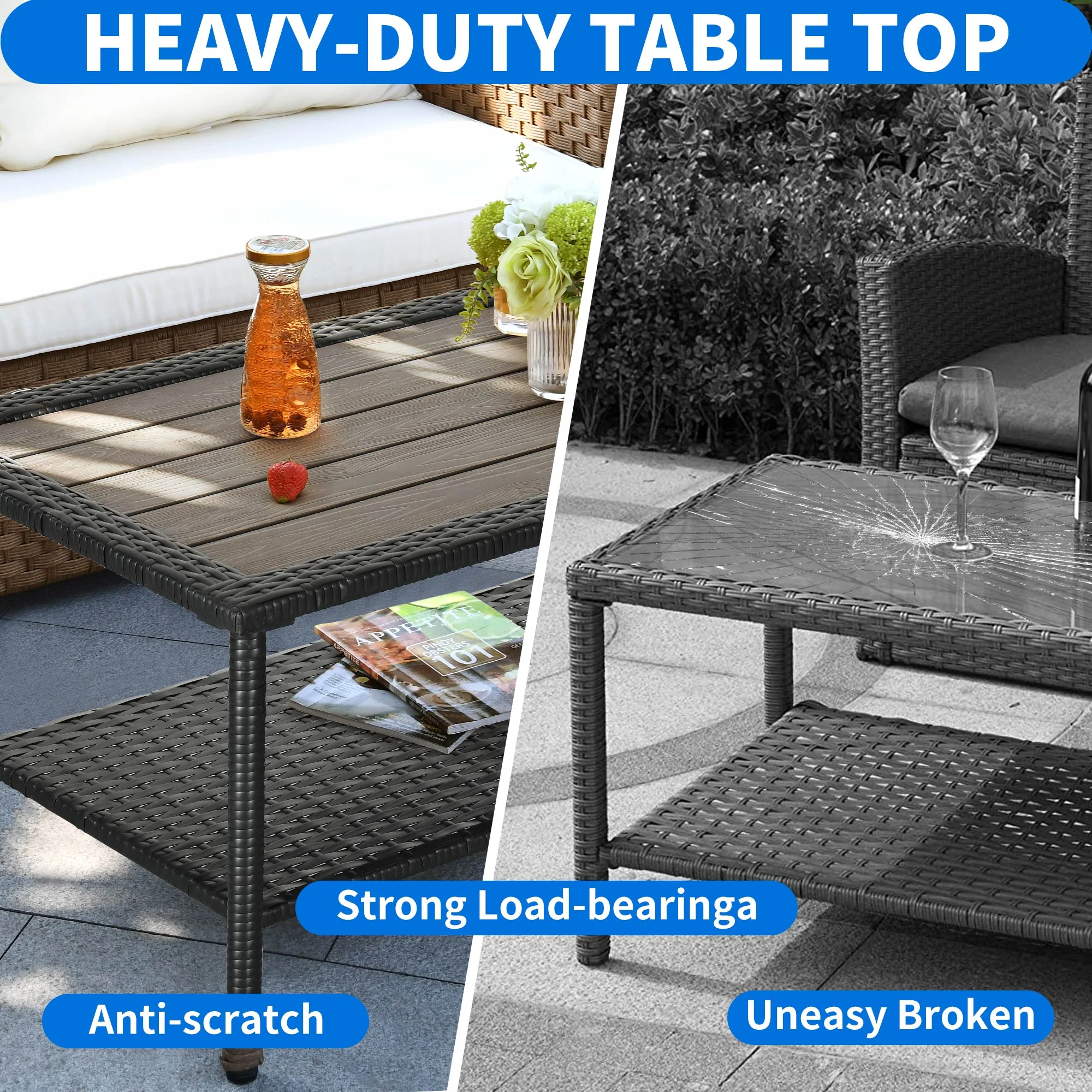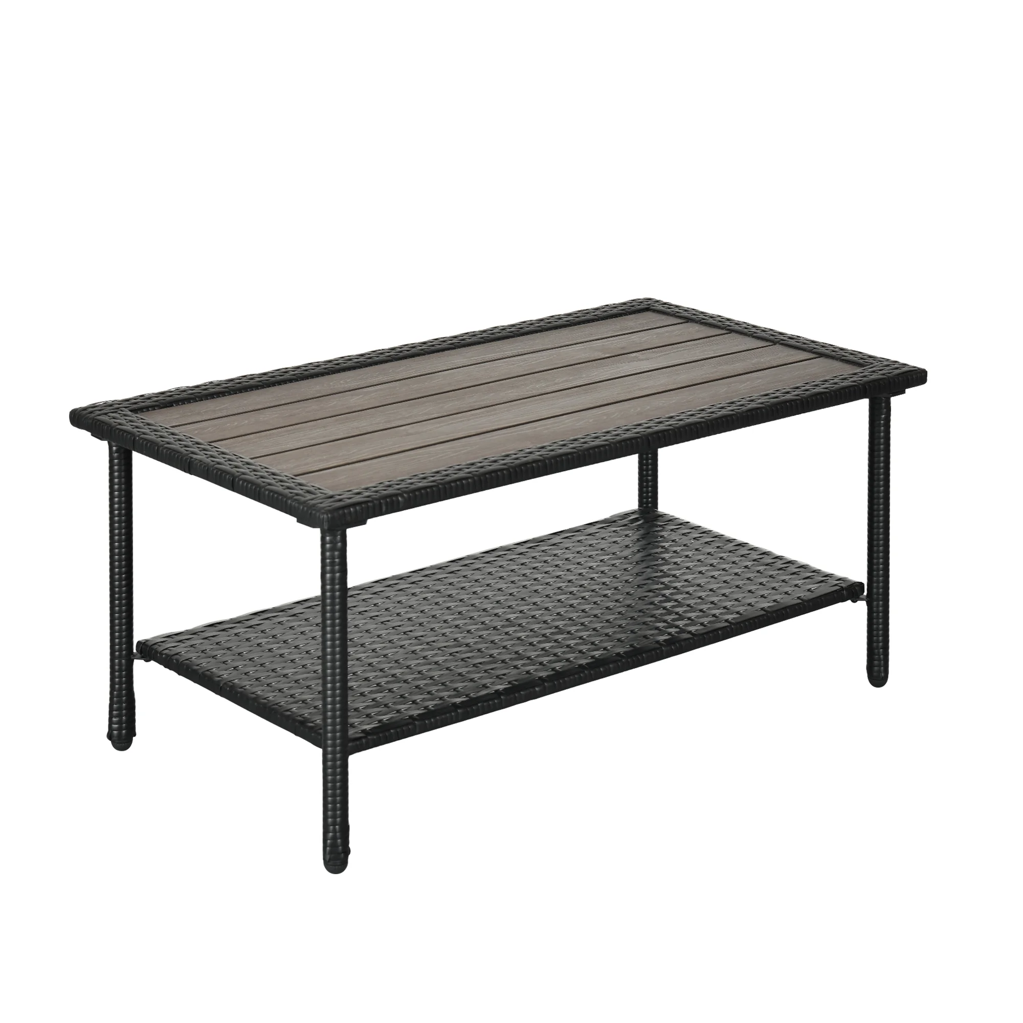 Dextrus Indoor Outdoor Wicker Coffee Table,Patio Furniture Rectangle Outside Side Table-Black