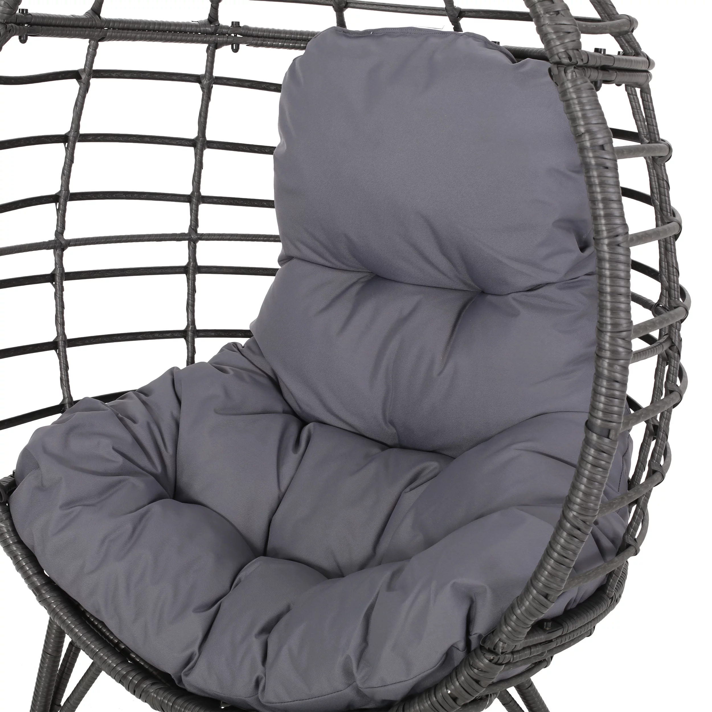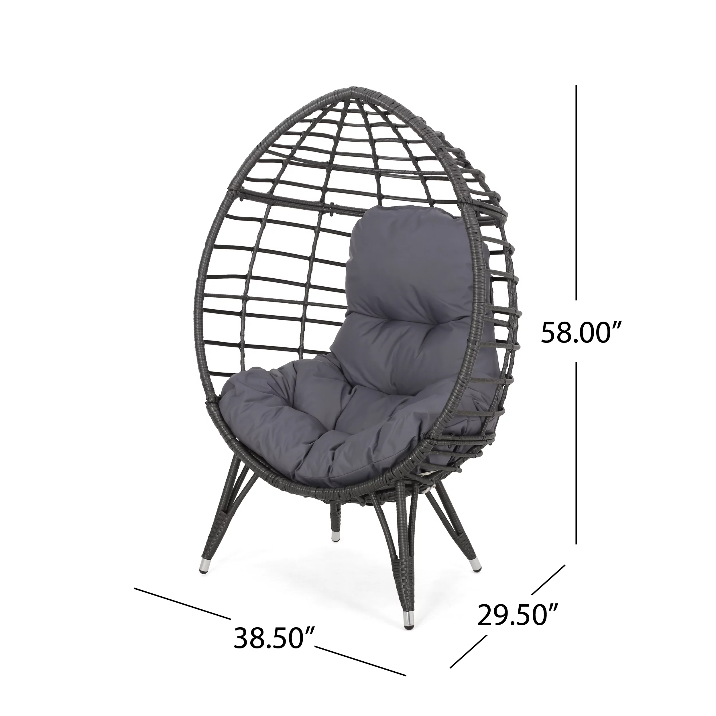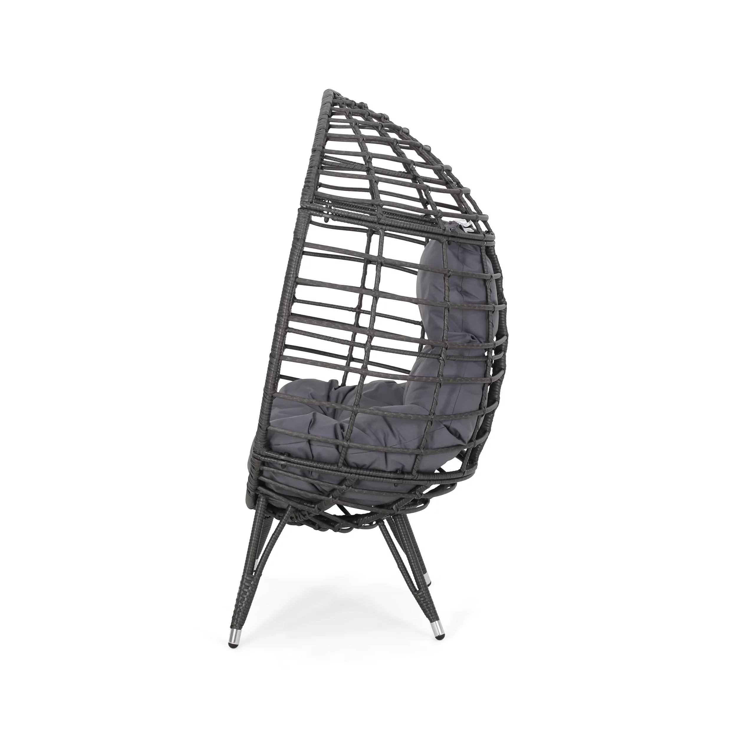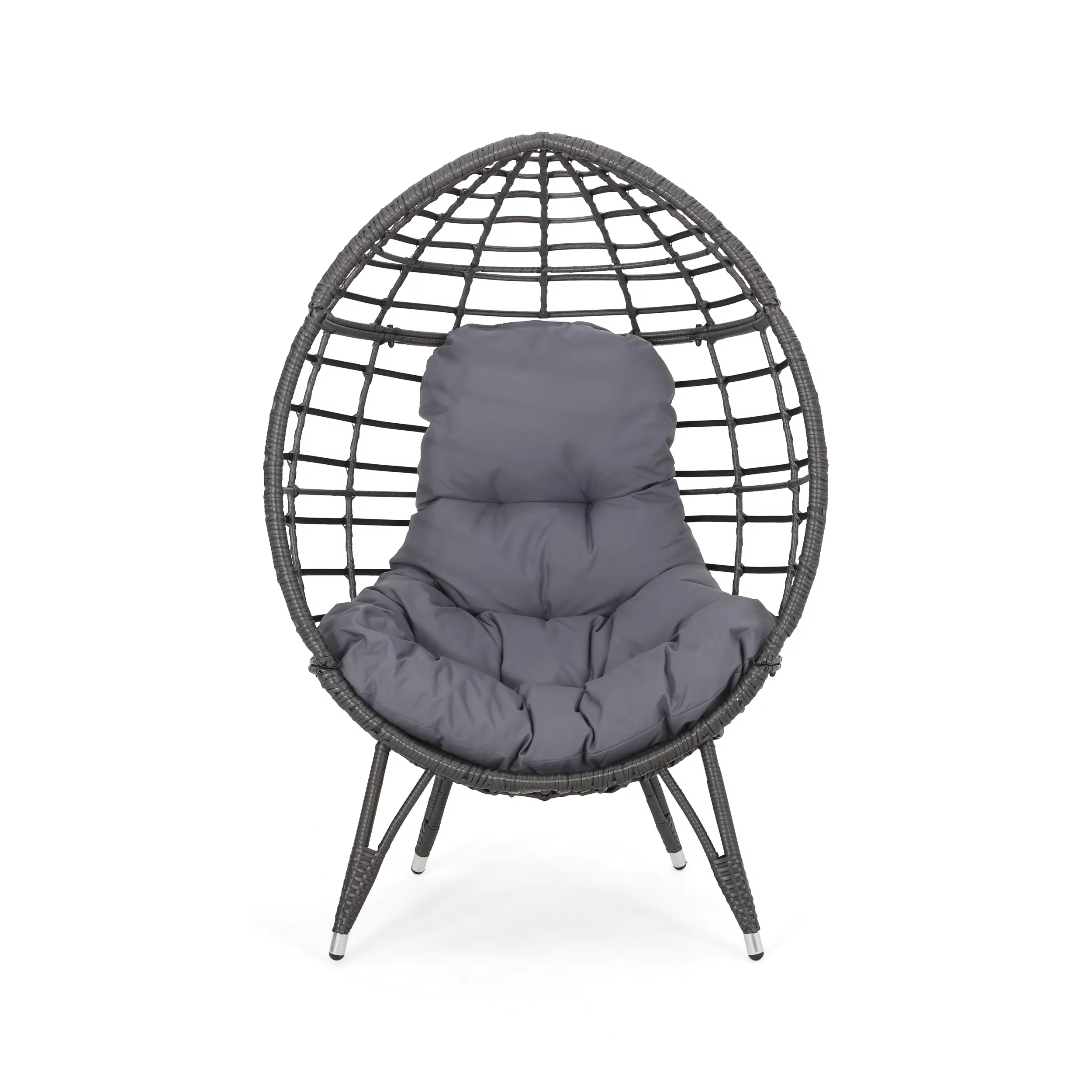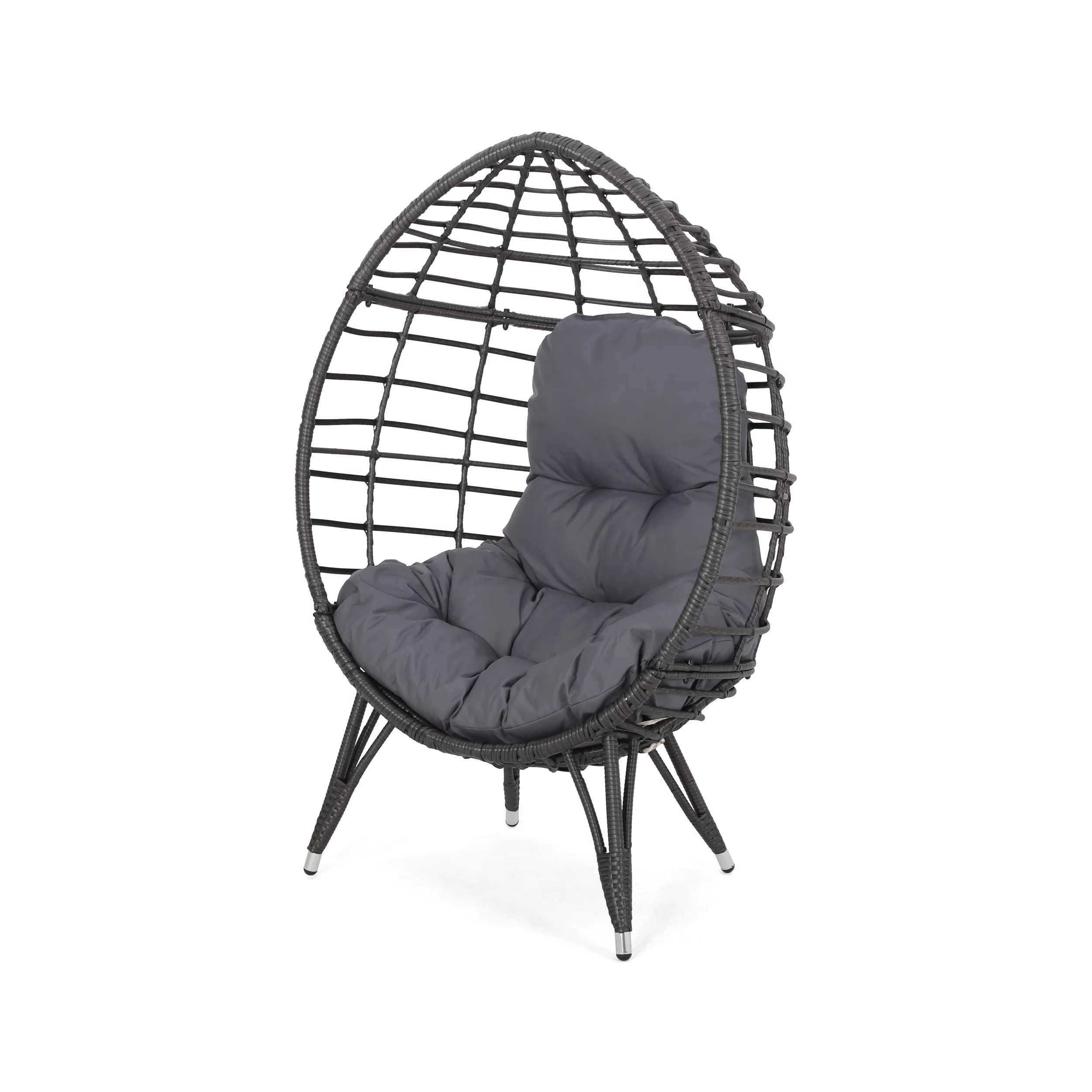 Noble House Santino Outdoor Wicker Teardrop Chair in Gray and Dark Gray
