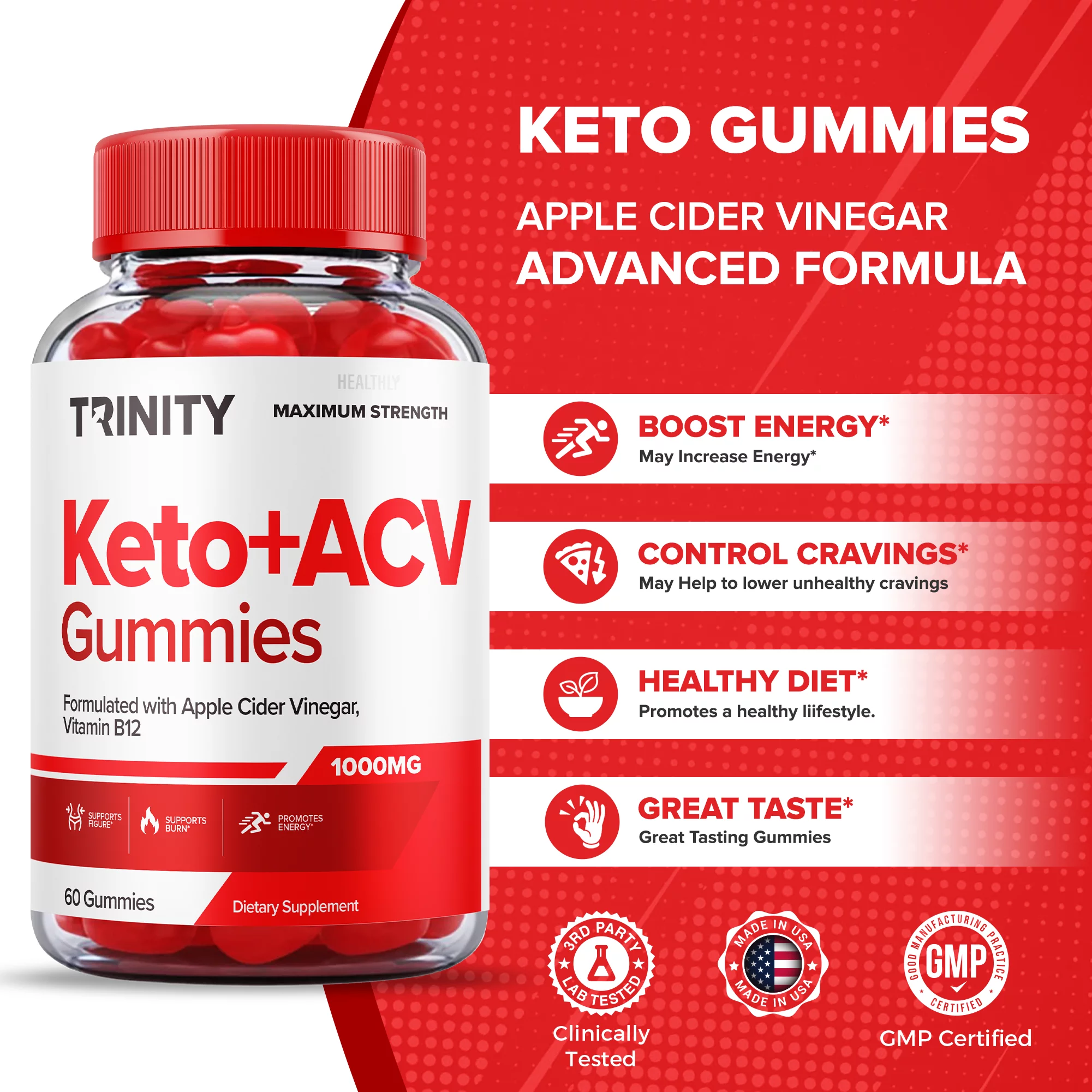 (5 Pack) Trinity Keto Gummies Advance Weight Loss ACV Apple Cider Vinegar Vegan Formula 300 Gummies