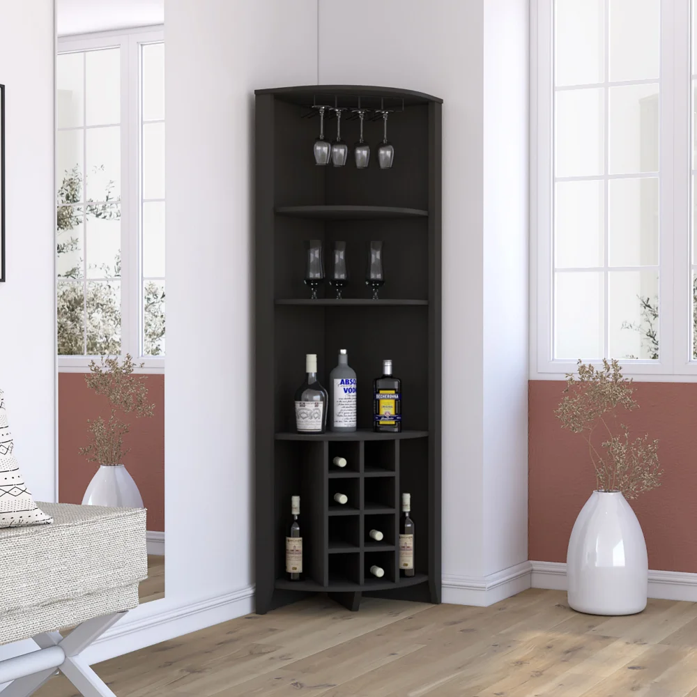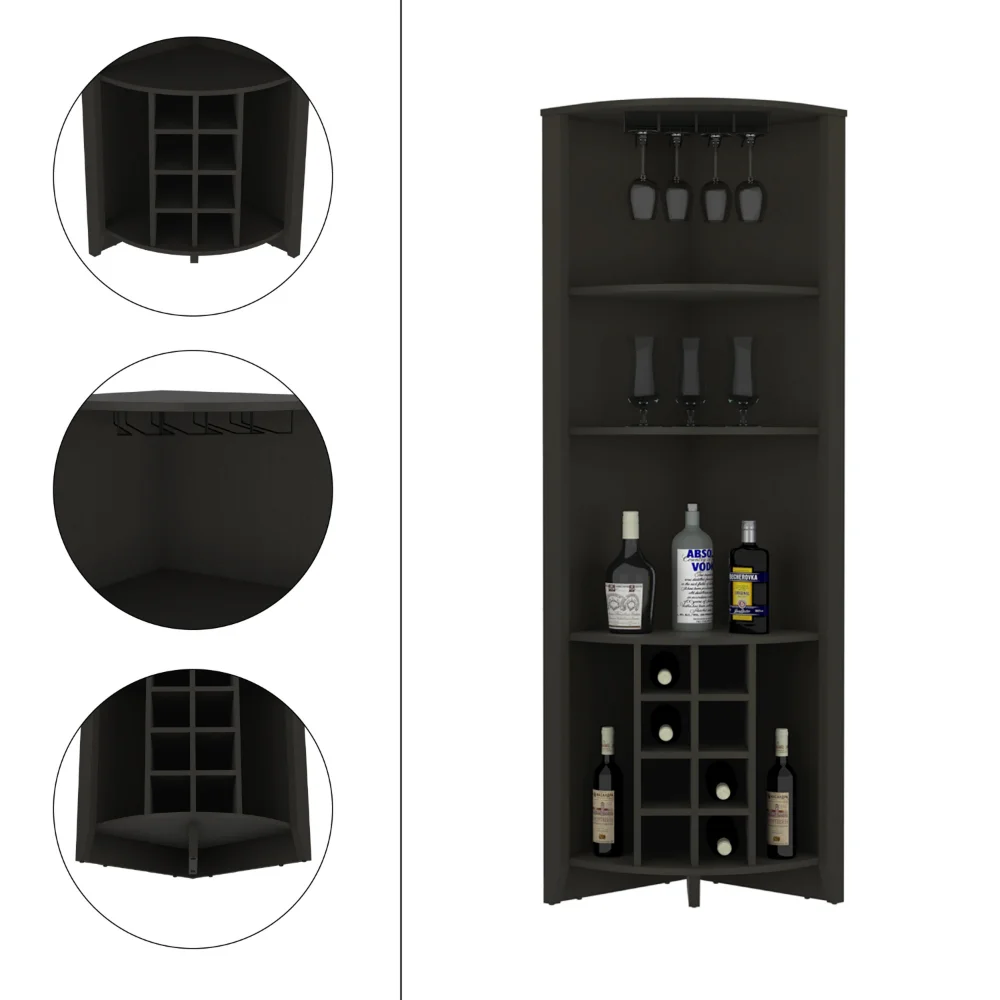 Depot E-Shop DE-BLB7786 Giza Corner Bar Cabinet, Dark Brown