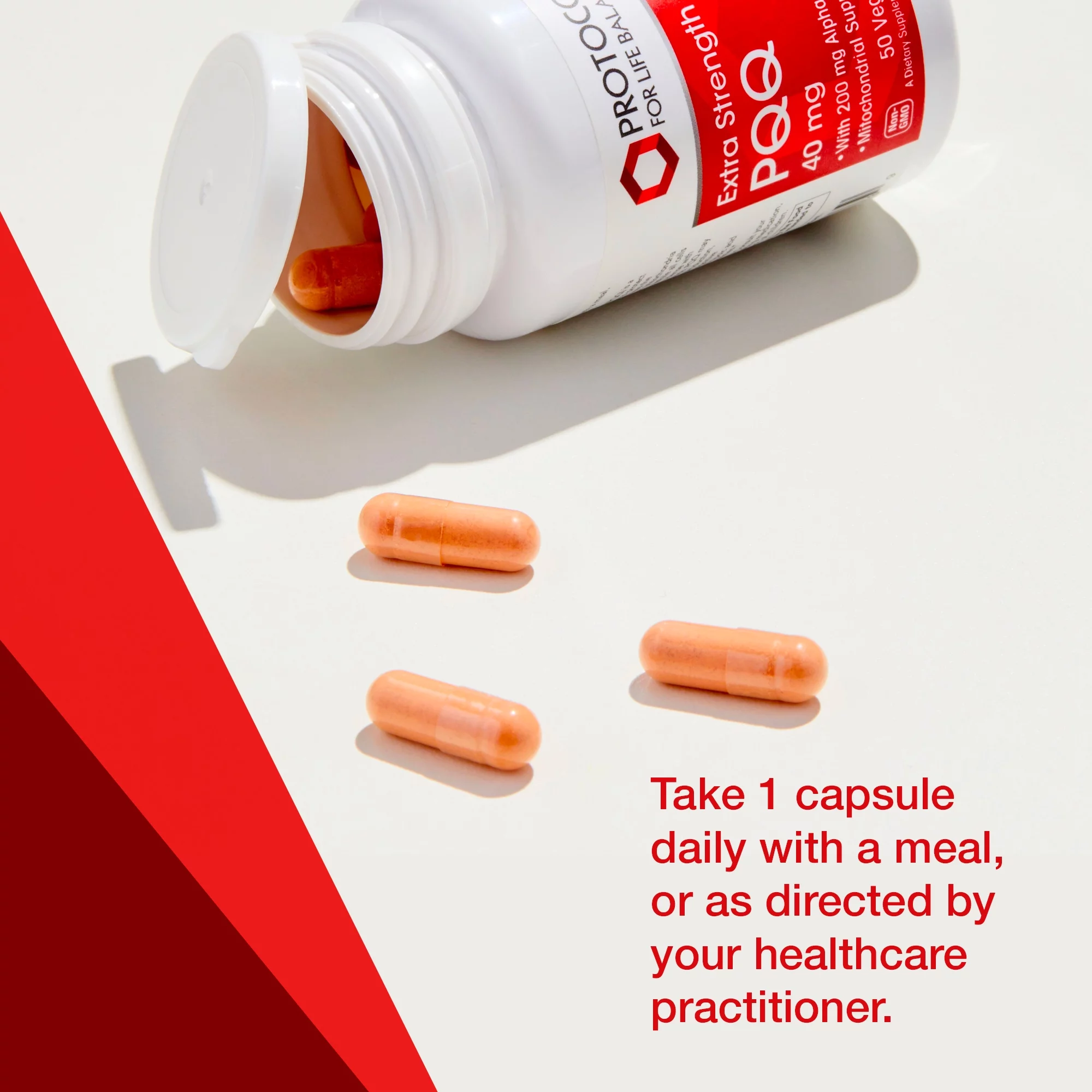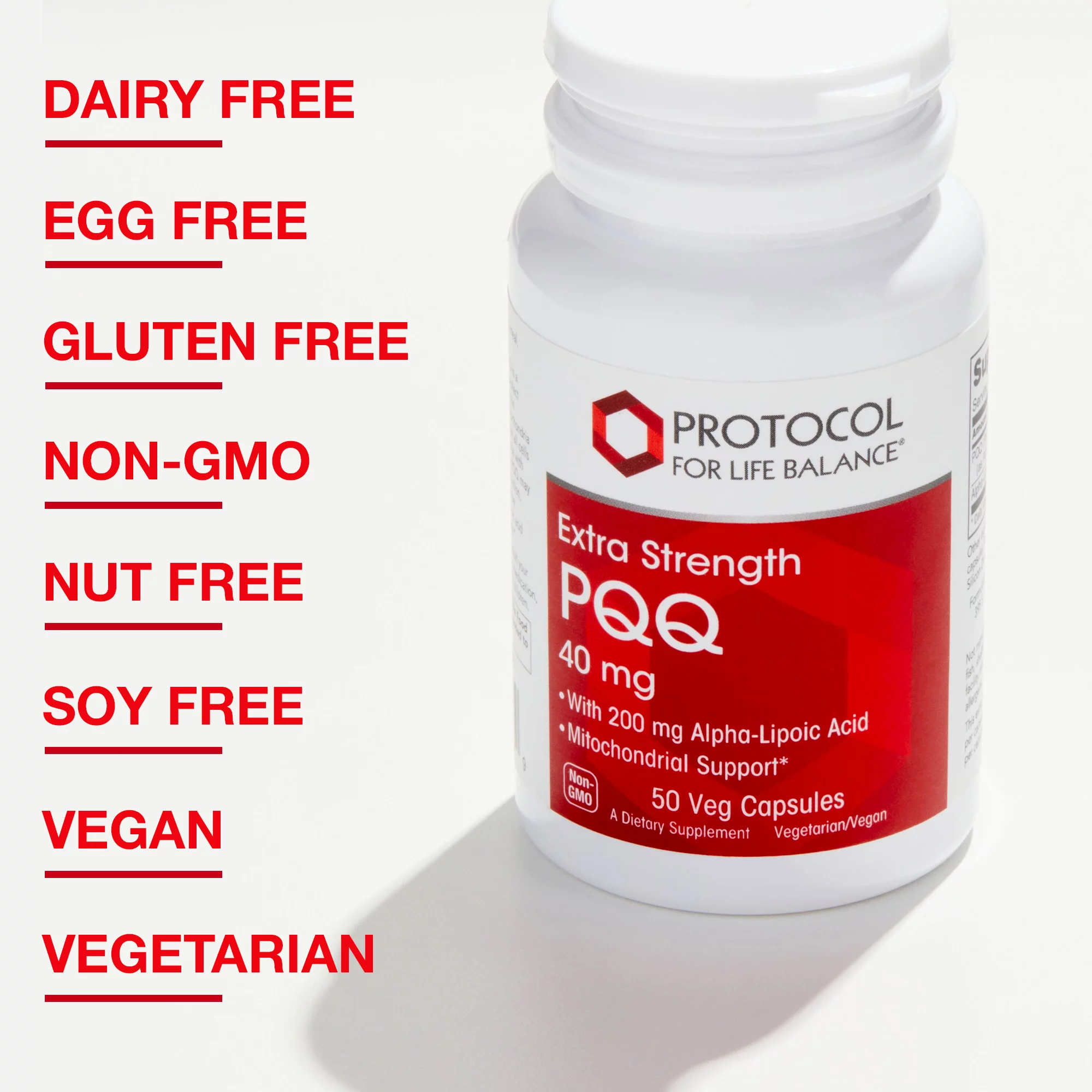 Protocol For Life Balance - PQQ 40mg (Extra Strength) - with Alpha Lipoic Acid, Mitochondrial Support, Helps Energy Boost, Supports Heart Health, Cognitive Function - 50 Veg Capsules