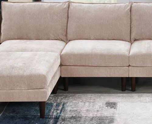 Living Room Classic 6pc Modular Sectional Sofa set 4x Armless Chair 2x Ottoman Blush Morgan Fabric Cushion Couch Furniture