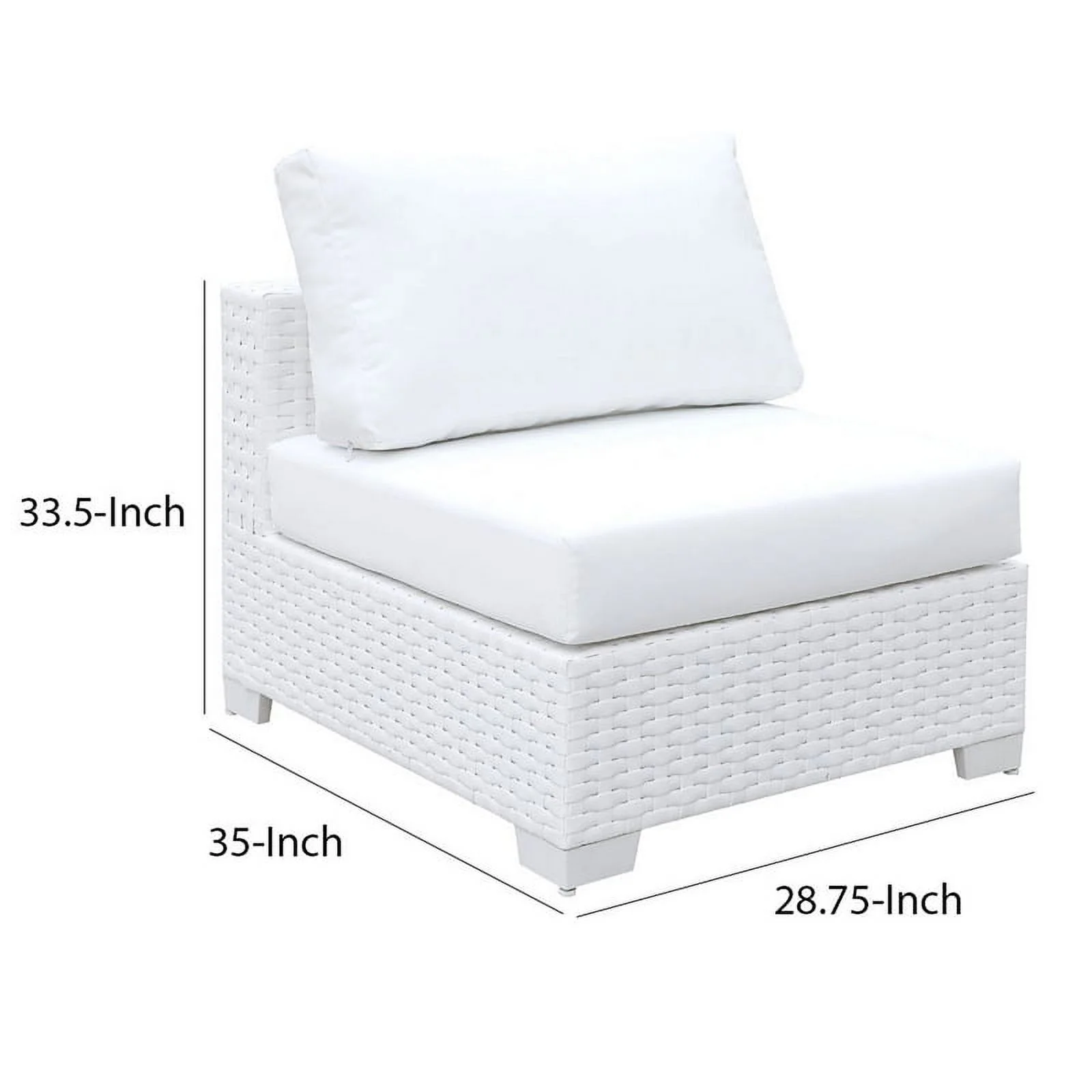 Benzara Aluminum Framed Wicker Armless Chair with Fabric Upholstered Padded Seat, White