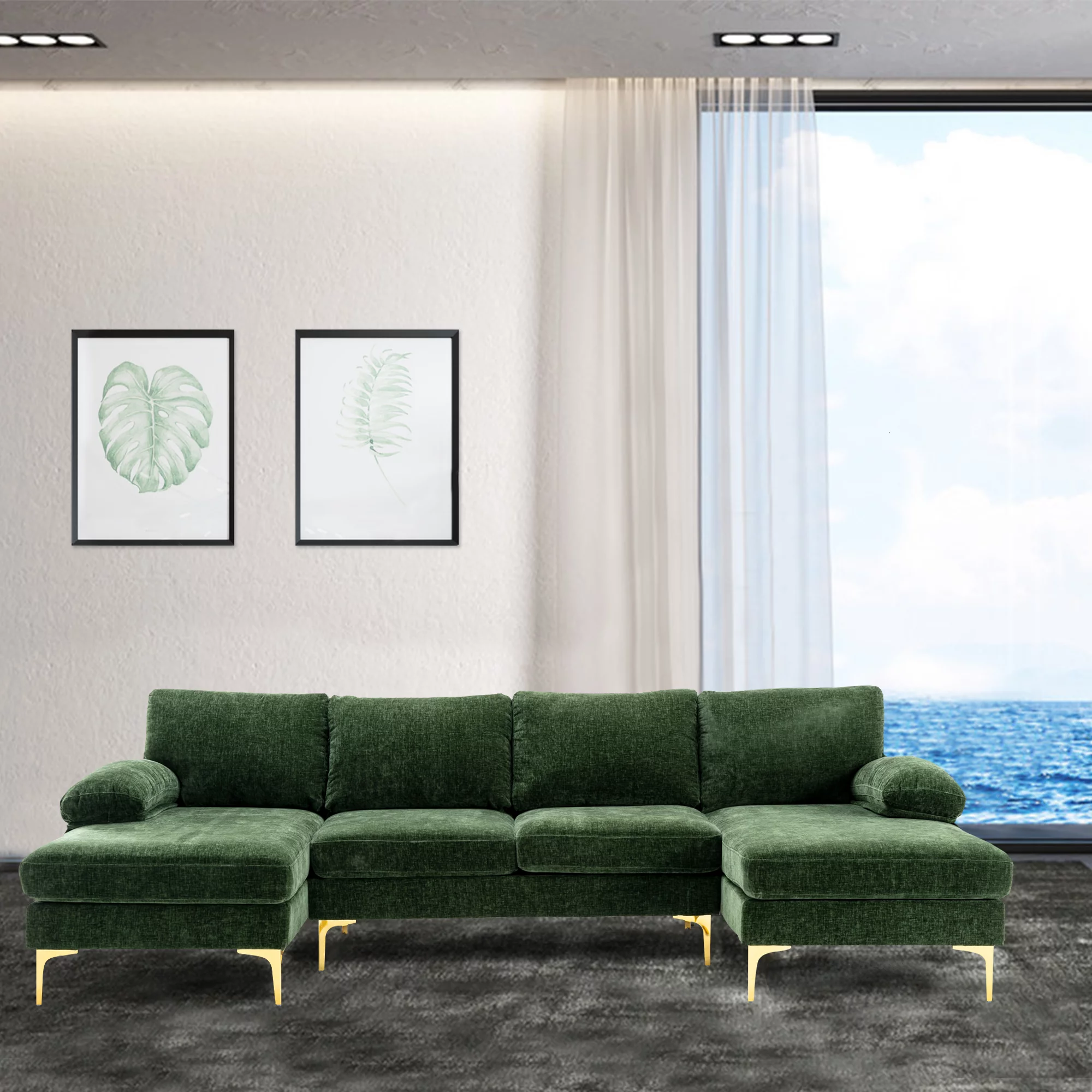 Luccalily Sectional Sofa U-Shaped Sectional Couch , Accent Sofa Recliner,with Golden Metal Legs,Mid-Century Modern Velvet loveseat Sofa,Double Extra Wide Chaise Lounge Couch for Living Room Bedroom