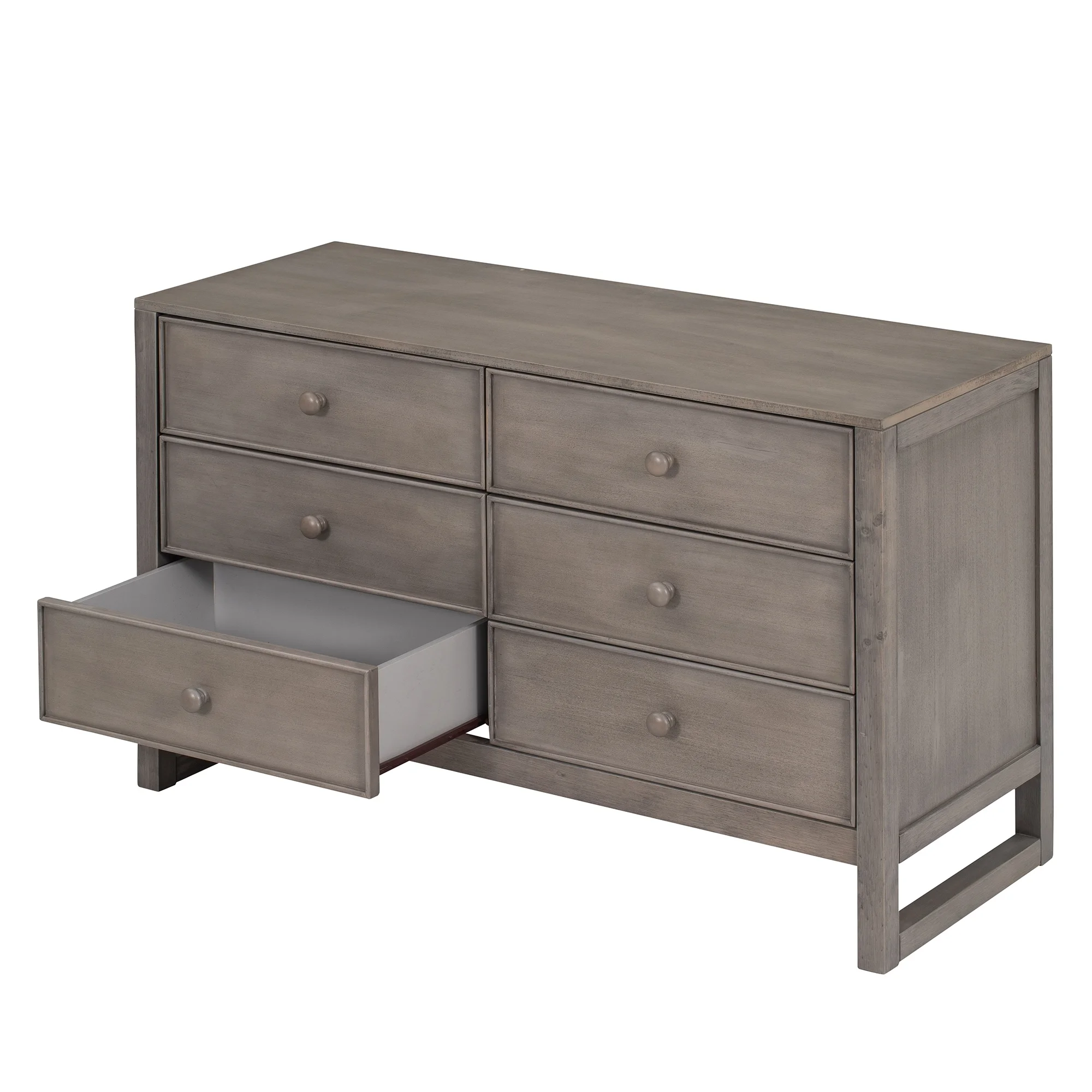 Antique Gray 6 Drawers Rustic Wooden Dresser, Storage Cabinet for Bedroom, Sturdy Frame, Space-Saving Design, Retro Style