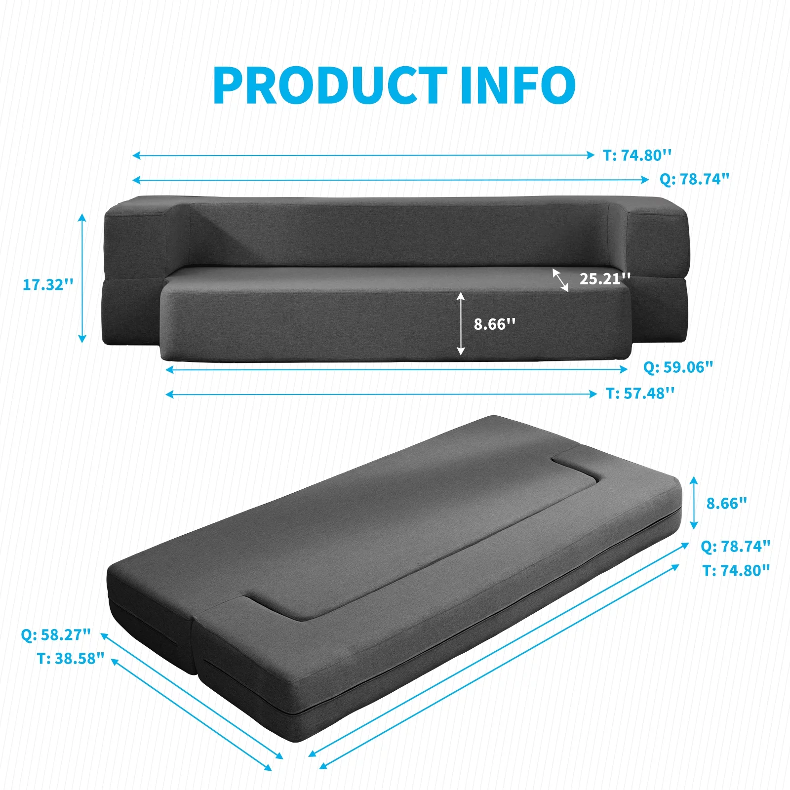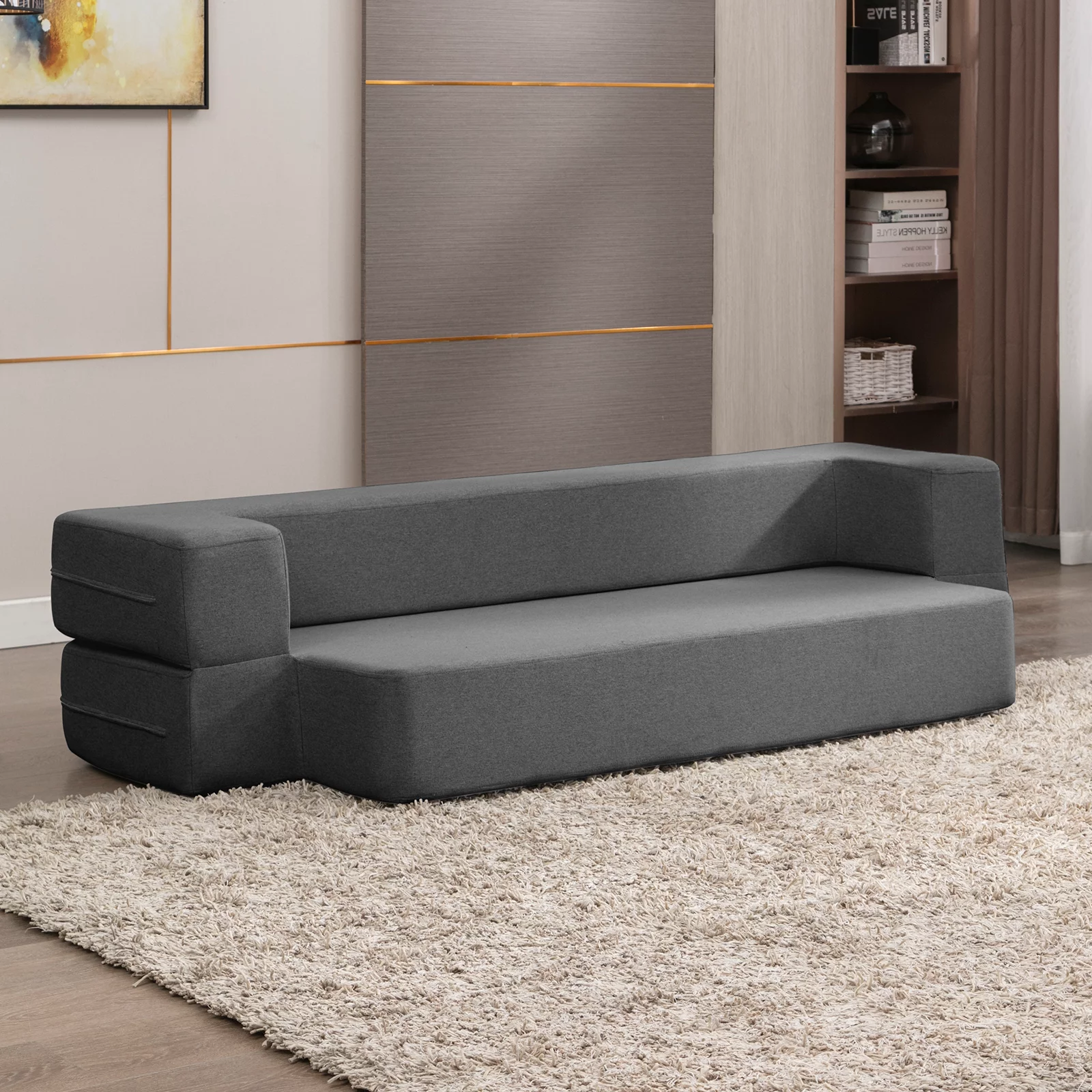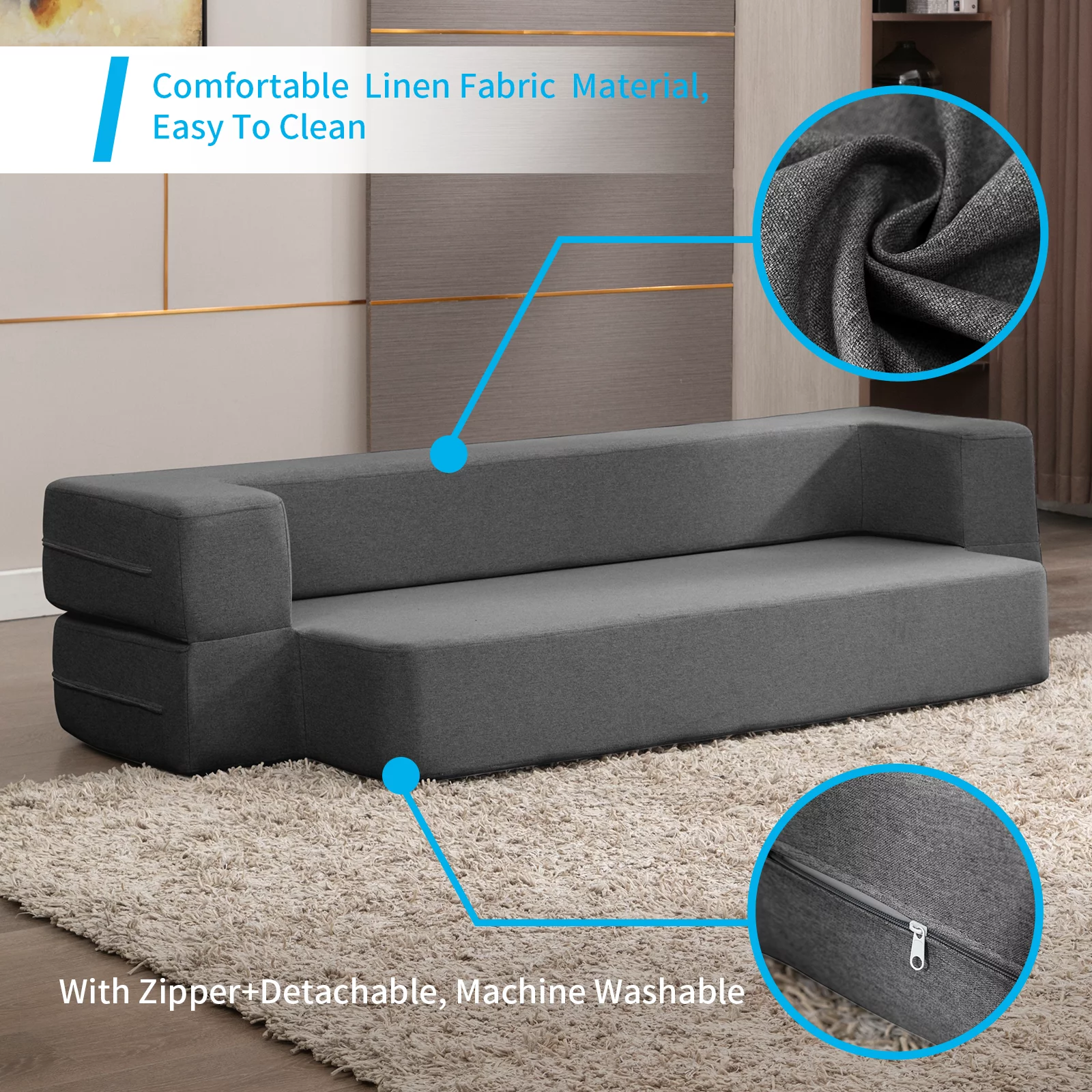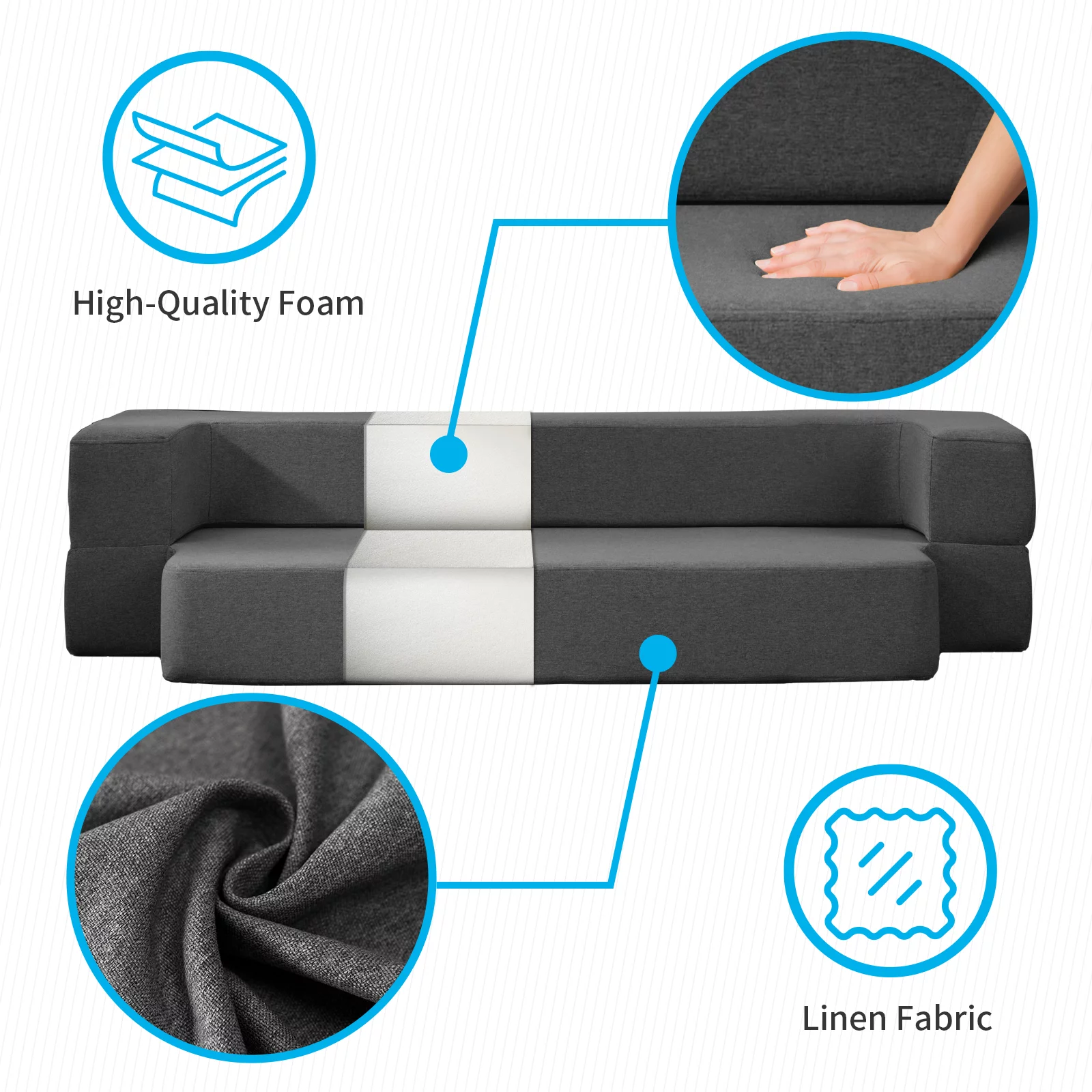 Mjkone Folding Queen Size Sleeper Sofa Bed,Convertible Couch Bed,Floor Foam Mattress, Linen Fabric,Memory Foam Futon Couches for Living Room/Bedroom/Office,Dark Gray